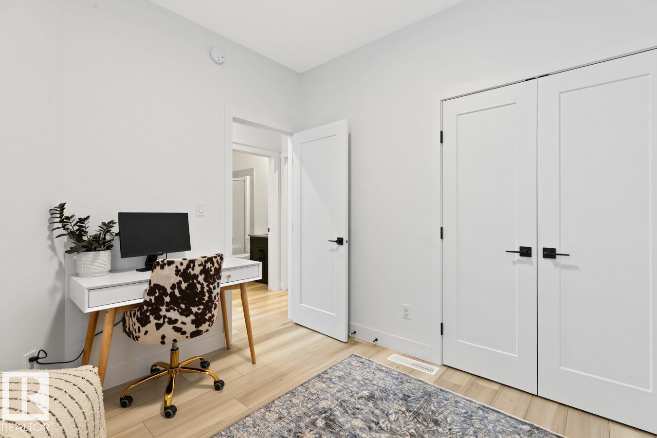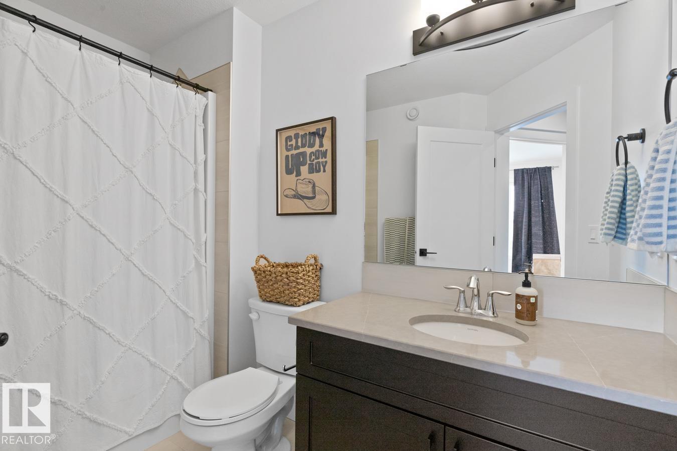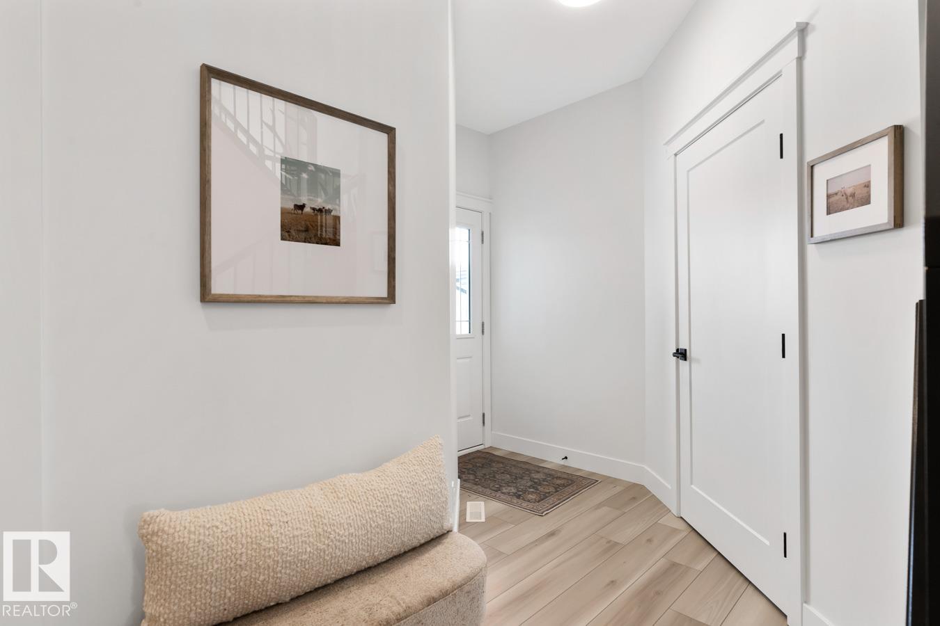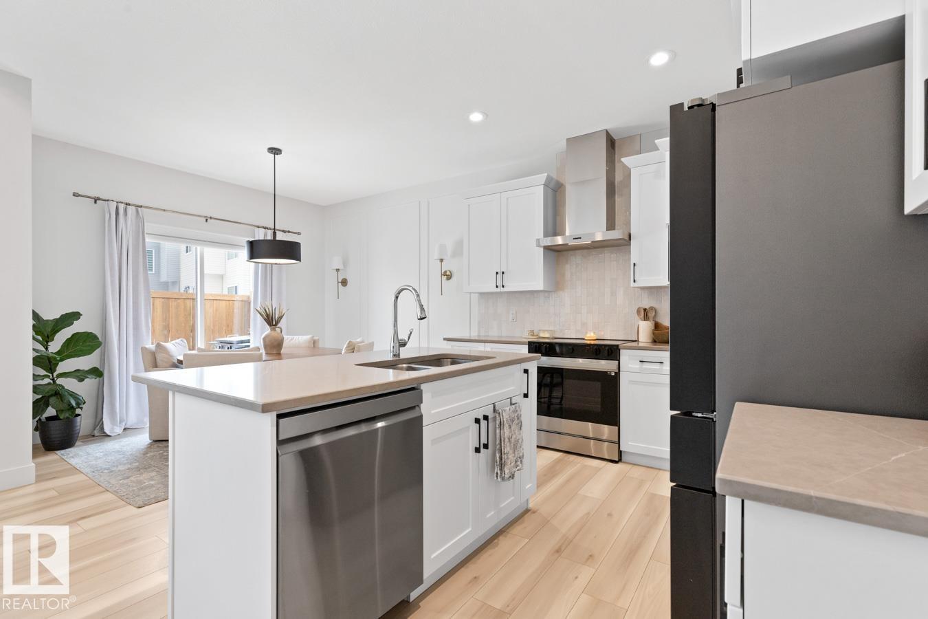 This IMMACULATE, SHOWSTOPPING home offers A/C, 4 bedrooms (including one on the main floor) & 3 full baths, the perfect blend of style and function. Step inside this Salerno model by Montorio Homes to discover vinyl plank flooring throughout a bright, open-concept layout. The stunning kitchen showcases white cabinetry, S/S appliances, walk-through pantry & quartz island overlooking the dining area and living room, where soaring two-storey windows and a cozy fireplace create an unforgettable focal point. A main floor bedroom & 3-piece bath add exceptional flexibility for guests or multigenerational living. Upstairs, enjoy a spacious bonus room, a king-sized primary retreat with walk-in closet & luxurious ensuite, plus two generous bedrooms, full bath & convenient laundry room. As you go to the basement their is a side entrance, basement is unspoiled. Pet and smoke free. Fenced with an entertaining-sized deck. Located close to parks, trails, schools & shopping. This BETTER-THAN-NEW home truly shines! (id:63190)