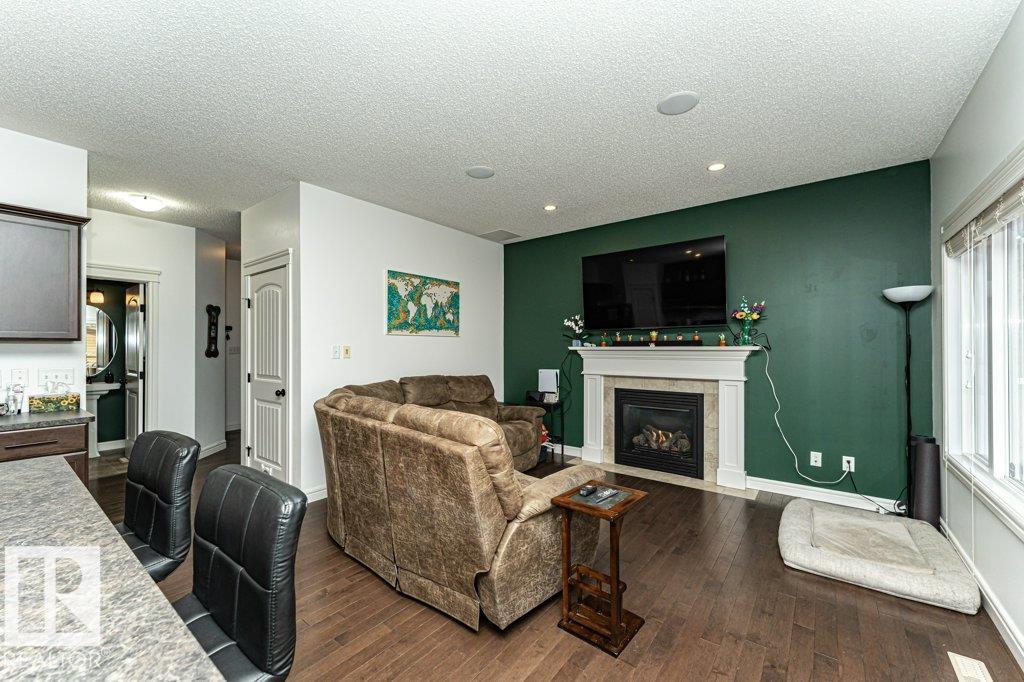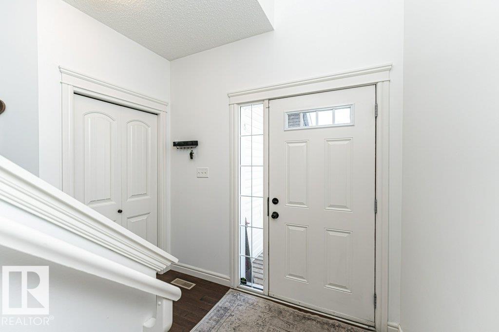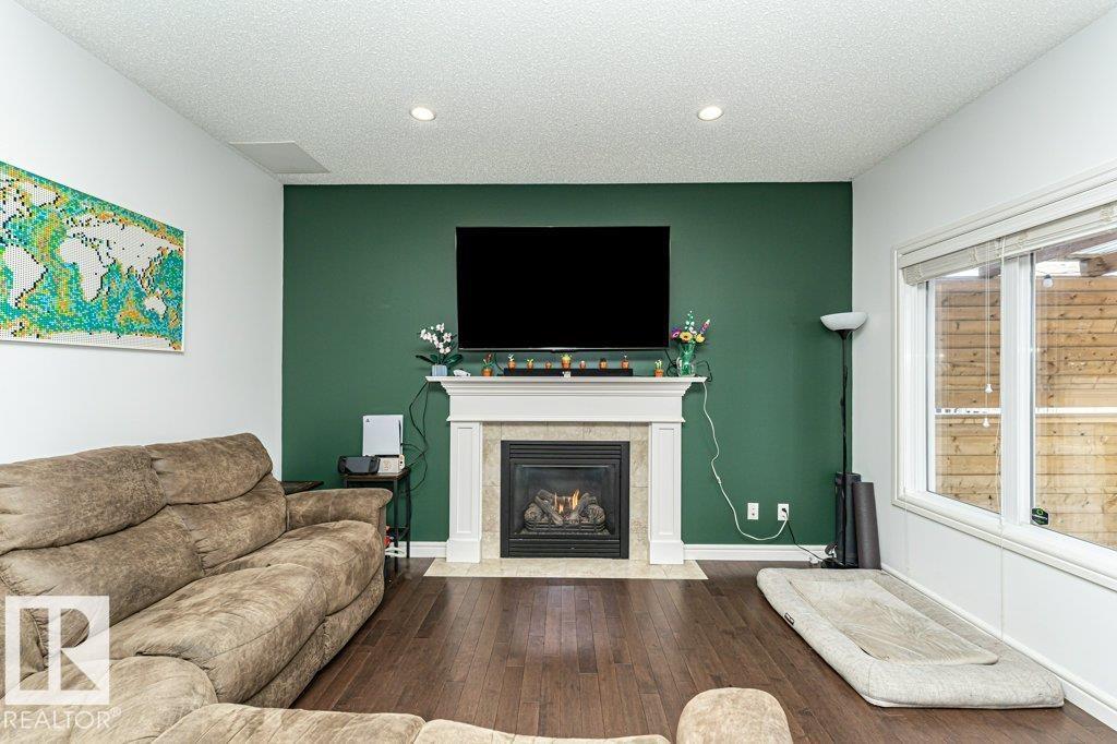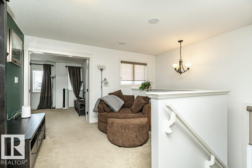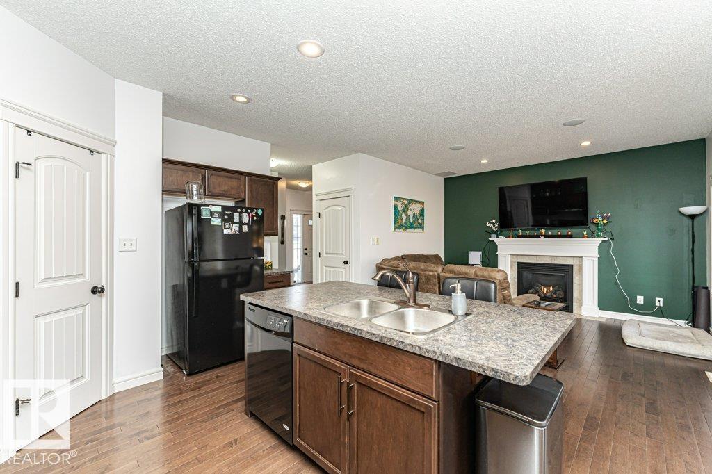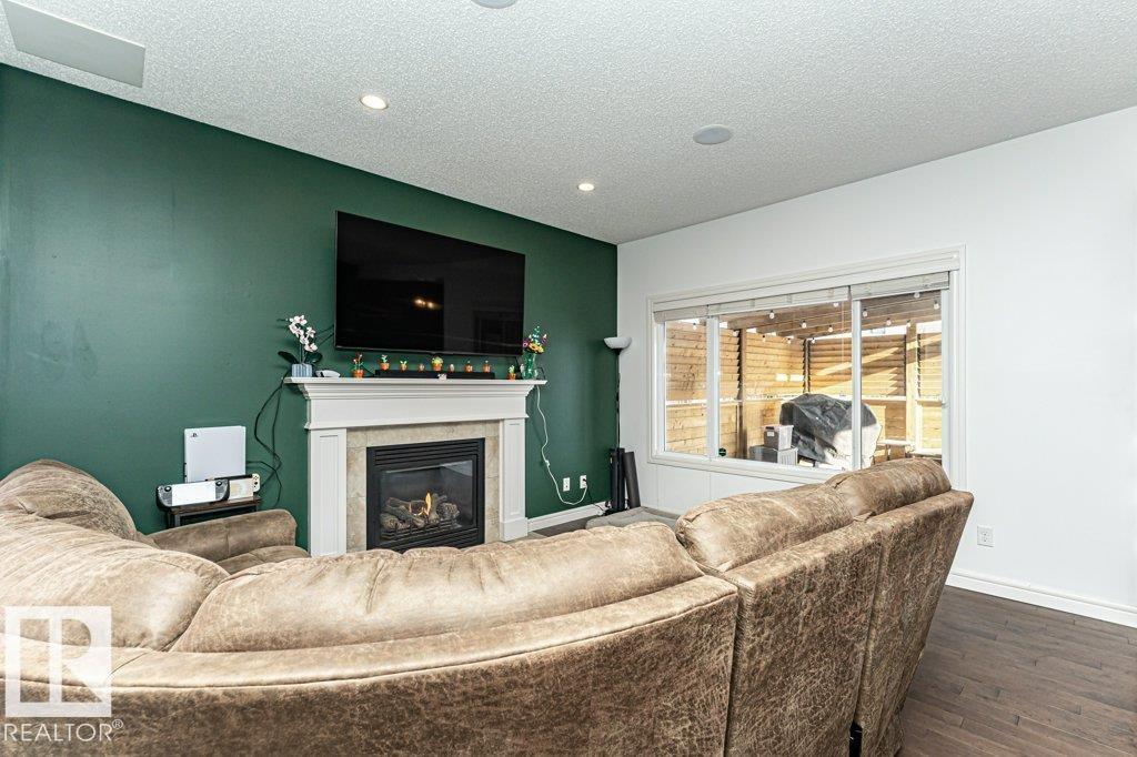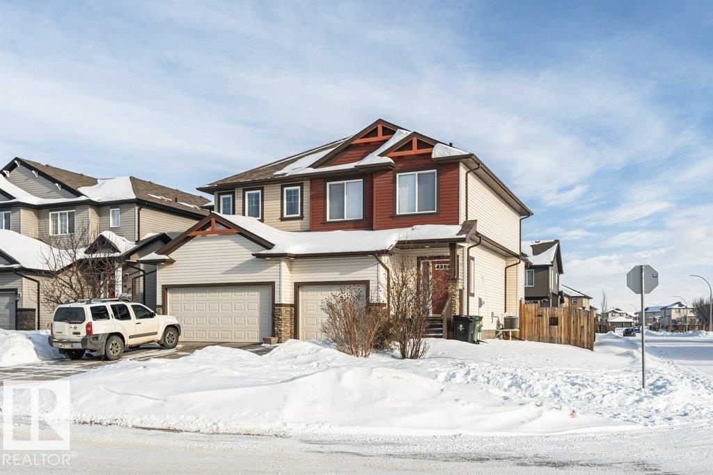 Welcome home to this 1526 sq ft AIR CONDITIONED home with DOUBLE ATTACHED garage. Offering 3 bedroom plus BONUS ROOM, well maintained duplex in Fort Saskatchewan. Landscaped, Fenced, Window Coverings, A/C, speaker system and Appliances. Main floor features an open concept living space, the kitchen boasts a large, flat Island, walk through pantry and great cabinet space. The adjacent dinning area offers large windows and leads to the landscaped and fenced back yard. Enjoy your cozy living room with gas fireplace great for entertaining, or head upstairs to watch a movie in the great Bonus room space upstairs. There are 3 bedrooms up including the Master which you enter through stunning french door and includes a walk in closet with organizer and ensuite. Also enjoy the convenience of an upstairs laundry ROOM. Basement is Framed (id:63190)