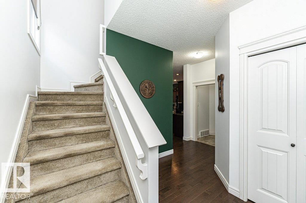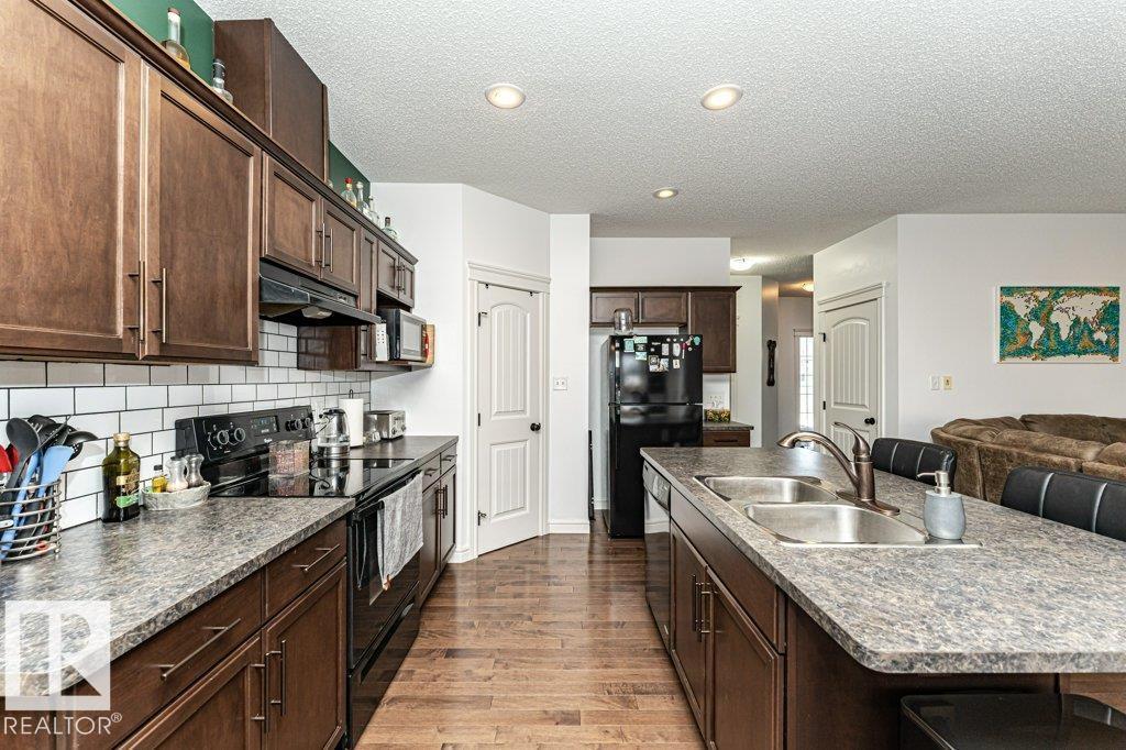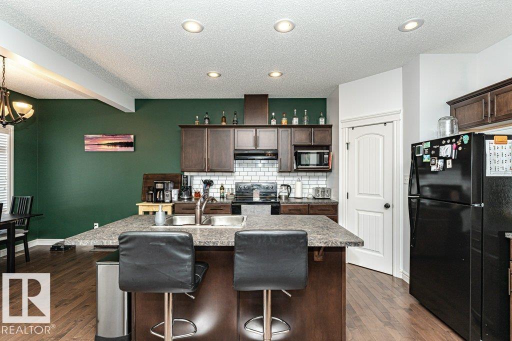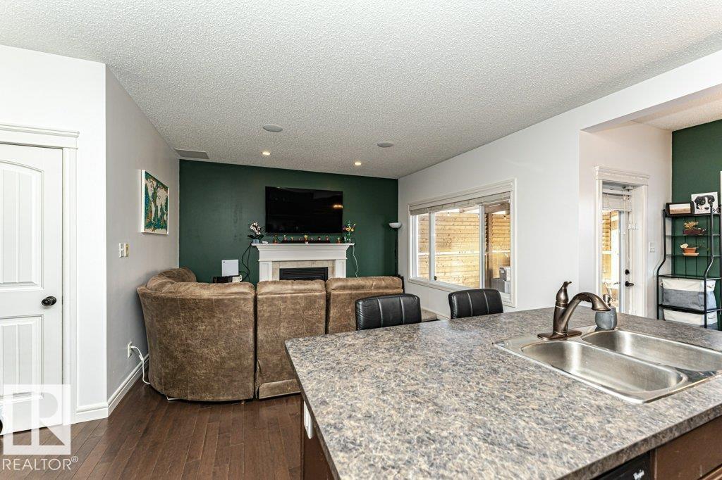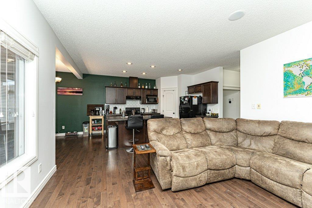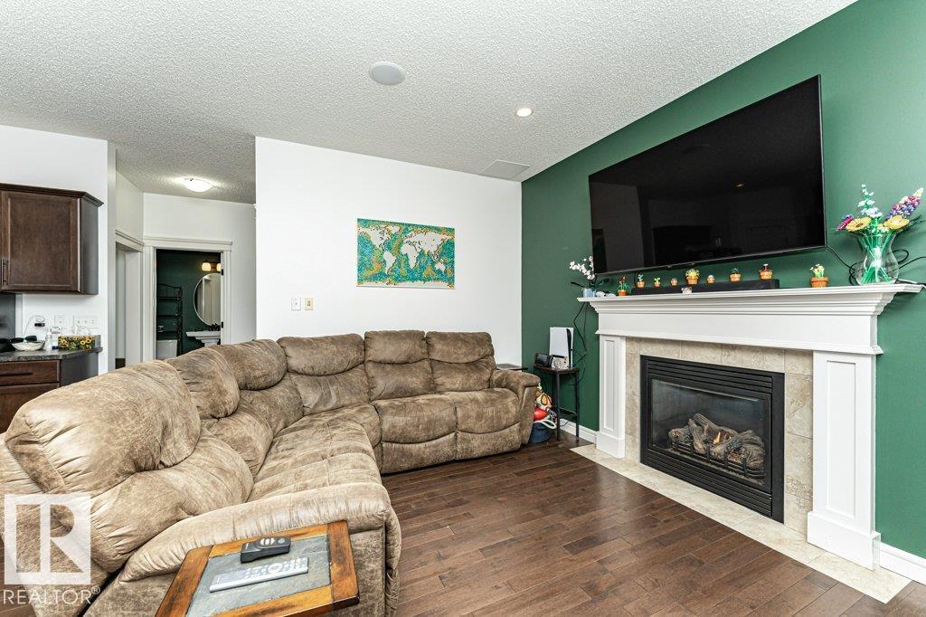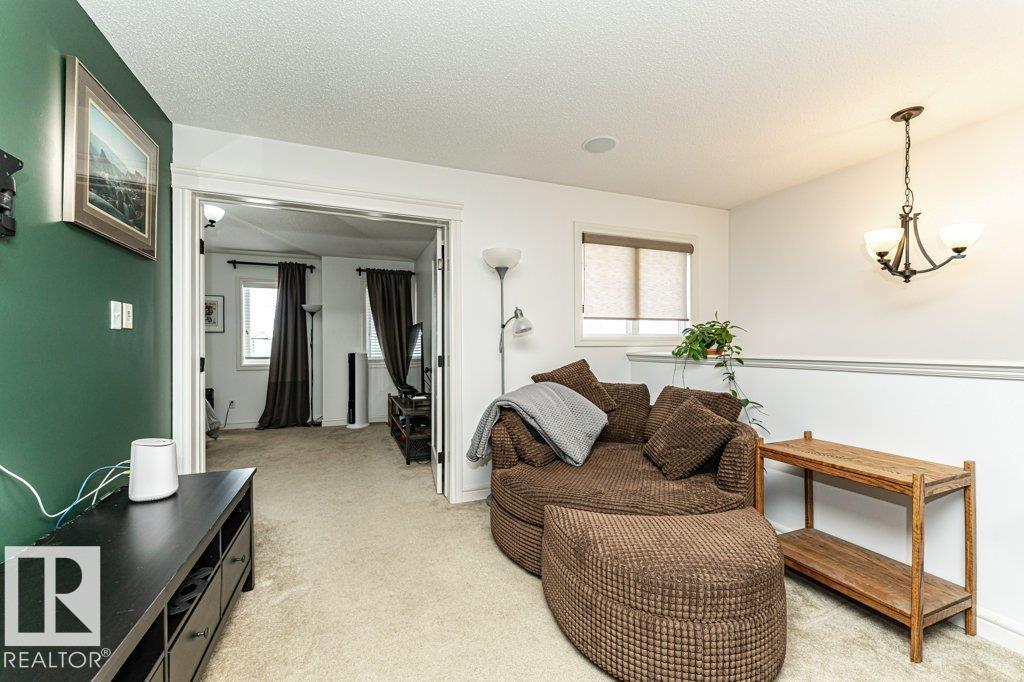 Welcome home to this 1526 sq ft AIR CONDITIONED home with DOUBLE ATTACHED garage. Offering 3 bedroom plus BONUS ROOM, well maintained duplex in Fort Saskatchewan. Landscaped, Fenced, Window Coverings, A/C, speaker system and Appliances. Main floor features an open concept living space, the kitchen boasts a large, flat Island, walk through pantry and great cabinet space. The adjacent dinning area offers large windows and leads to the landscaped and fenced back yard. Enjoy your cozy living room with gas fireplace great for entertaining, or head upstairs to watch a movie in the great Bonus room space upstairs. There are 3 bedrooms up including the Master which you enter through stunning french door and includes a walk in closet with organizer and ensuite. Also enjoy the convenience of an upstairs laundry ROOM. Basement is Framed (id:63190)