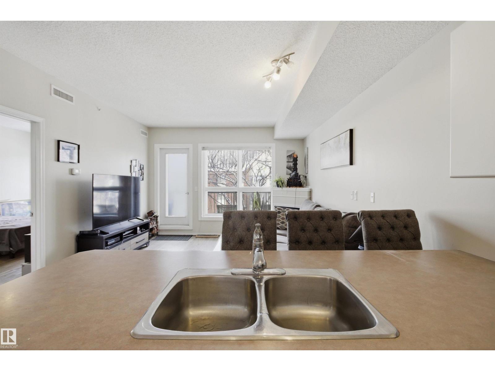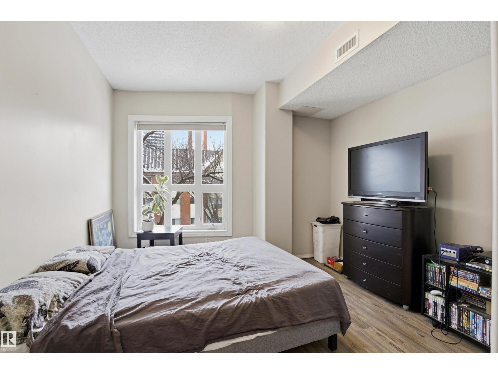 Welcome to this solid concrete condo perfectly located just steps from the University of Alberta and its world-class hospital, offering unbeatable convenience on a peaceful, tree-lined street. Inside, enjoy 9-foot ceilings, classic white kitchen, stainless steel appliances, and the cozy charm of a corner gas fireplace. The spacious primary bedroom features a stunning oversized window framing views of majestic elm trees, along with a walkthrough closet and a private 4-piece ensuite. The second bedroom is window-free—ideal for shift workers needing daytime rest—or easily used as a quiet office, workout room, or extra storage space. Additional highlights include in-suite laundry, secure titled underground parking, and a generous balcony with a great vantage point over the lively pedestrian traffic along the street. A perfect blend of comfort, practicality, and location in one of the city’s most sought-after areas. (id:63190)