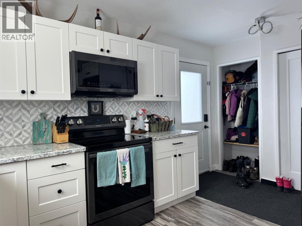This splendid home boasts a recent makeover that's sure to impress, offering 4 bedrooms and 2 bathrooms. The main floor has been thoughtfully renovated with sleek all-white kitchen cupboards featuring soft-close functionality, and a stunning tile backsplash that adds a touch of elegance. A new double sink complements the stylish kitchen, which is equipped with a suite of matching Samsung appliances. Convenience is key, with a new stackable washer and dryer on the main floor for easy living.The fresh washroom on the main floor offers a full bath and a luxurious shower stall, while all-new lighting fixtures illuminate every corner of the house. You'll appreciate the added aesthetic appeal of all-new doors, including exterior entrances. This home offers versatile living options, with everything you need on one floor. However, if you desire additional space, the basement features a recreational room, a three-piece washroom, and two bedrooms. Important updates include the replacement of the hot water tank approximately five years ago, ensuring worry-free living for years to come. The fully fenced backyard has a garden to plant anything you desire, along with a fire pit - perfect for cooler evenings and entertaining purposes. Shingles and most windows upstairs replaced approximately 10 years ago.Located in close proximity to a water park, arena, hospital, and downtown, this property offers the perfect blend of convenience and recreation.Don't let this opportunity pass you by! Schedule a viewing today and make this exceptional property your own. (id:63190)