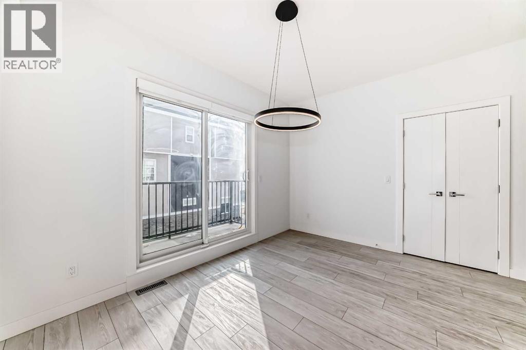 Welcome to this elegant, bright townhouse. This modern design allows for living at unbeatable location within the vibrant Savanna community in Saddle Ridge. The residence provides you with an open concept living space and features not one but two balconies. The entrance ground level introduces a den that can easily be converted to an office space if needed along with a double attached garage for convenient parking. The main floor seamlessly blends style and practicality with ample natural light cascading through large windows and additional pot lights illuminating the space. Luxurious vinyl plank flooring, a neutral color scheme, and upscale finishes enhance the allure. Enjoy relaxing in the inviting living room or step onto the adjacent balcony for tranquil mornings. The stunning kitchen inspires culinary delights, boasting quartz countertops, stainless steel appliances, full-height cabinetry, a timeless tile backsplash, and both a center island with eating bar for abundant prep space or a space to enjoy a quick bite to eat. The dining room offers ample room for entertaining, complemented by a convenient powder room. Upstairs, the primary suite creates an indulgent retreat with a high ceiling, oversized window, spacious walk-in closet, and a private ensuite. Two additional bright and roomy bedrooms share a modern 4-piece main bathroom. Laundry facilities on this level add further convenience. Nestled in the northeast community of Saddle Ridge, Savanna embodies smart growth principles, offering accessibility and a wealth of amenities, the home is location near extensive pathways, parks, and playgrounds within the community enriches the lifestyle. The Savanna Bazaar, a commercial hub, offers live-work-play opportunities, while schools, shops, and recreational facilities in Saddle Ridge are minutes away. Access to the rest of Calgary is effortless via major roads such as Metis Trail, Airport Trail, and the LRT when it's time to explore beyond the neighborhood. (id:63190)
