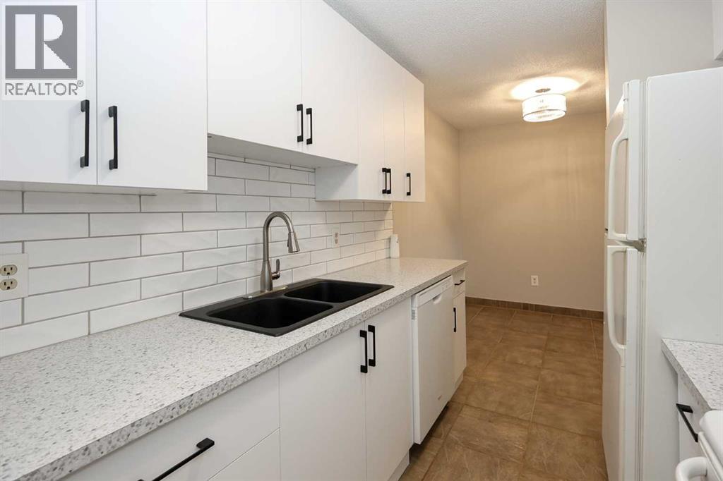 IMMEDIATE POSSESSION AVAILABLE ~ RENOVATED THROUGHOUT & MOVE IN READY ~ 2 BEDROOM, 1 BATHROOM MAIN FLOOR UNIT ~ LOW MAINTENANCE, ADULT LIVING (18+) ~ Recent updates include; new vinyl plank flooring throughout , neutral paint throughout, updated lighting, closet doors, hardware, kitchen cabinets, countertops, and backsplash ~ The living room features a corner fireplace with floor to ceiling stone, a raised hearth, and mantel, plus sliding patio doors to the covered patio ~ Outside the patio has plenty of space for outdoor furniture and overlooks mature trees with no neighbours behind ~ The dining space opens to the galley style kitchen with white shaker style cabinets, textured tile backsplash, granite composite sink with an updated faucet, and ample counter space ~ Two bedrooms are both a generous size and offer plenty of closet space ~ In unit stackable laundry is conveniently located next to the 4 piece bathroom that has tile floors and a soaker tub ~ Monthly condo fees are $492.62/month and include; Common area maintenance, heat, insurance, maintenance grounds, parking, professional management, reserve fund contributions, sewer, snow removal, trash, and water offering a low maintenance lifestyle ~ 1 assigned powered parking stall with ample visitor parking available ~ This well managed, quiet adult condo is located steps to wetlands and walking trails that connect to Red Deer's extensive Mackenzie trail system, with multiple schools, parks, playgrounds, transit and shopping all close by. (id:63190)