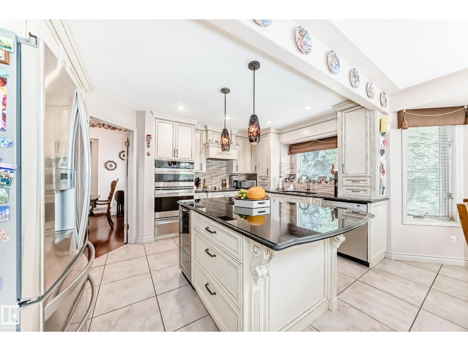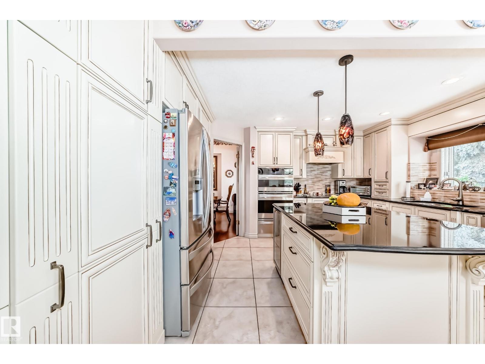 The river valley at your front door! This upgraded estate home offers over 3,000 sq ft plus a developed basement, a triple garage, and lush landscaping that surrounds you in natural beauty. The showstopping exterior features a soaring portico and incredible curb appeal. Inside, a grand curved staircase and open second-floor hallway make a dramatic first impression. The custom Heritage kitchen is a masterpiece of craftsmanship and quality, complemented by beautifully renovated baths and timeless finishes throughout. The like-new condition is evident at every turn. A fully finished basement with second kitchen provides flexible space for entertaining or multi-gen living. The palatial primary suite is fit for Royalty and features a covered balcony with sweeping views and the ensuite is like a dream Grecian spa. Your private backyard oasis is complete with patio, deck, and gorgeous garden beds. With a newer metal roof for peace of mind, this awe inspiring home is unforgettable! (id:63190)