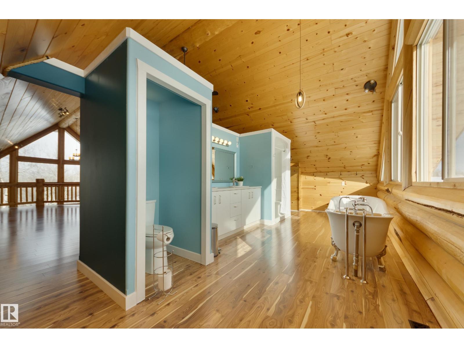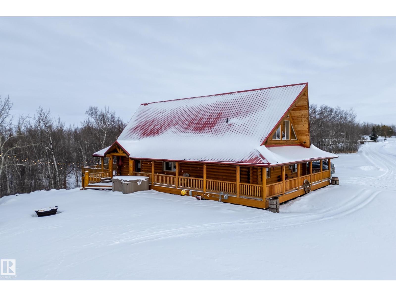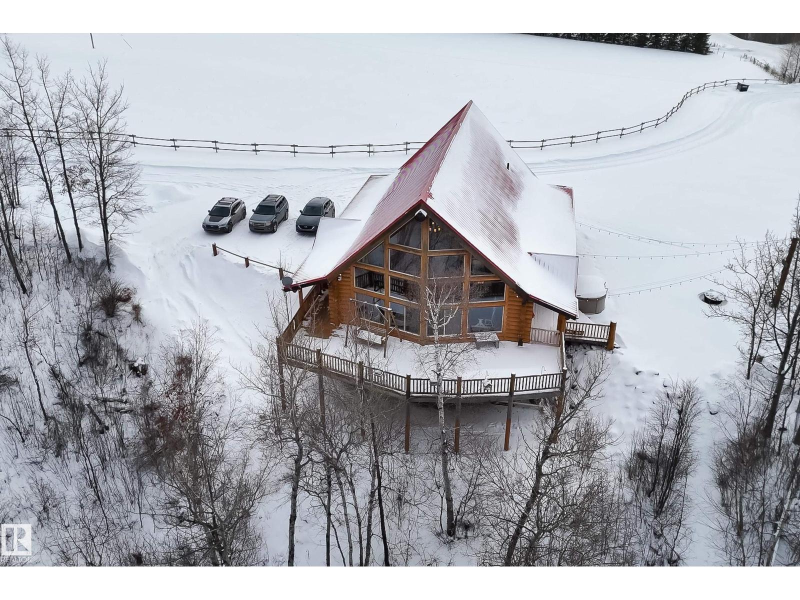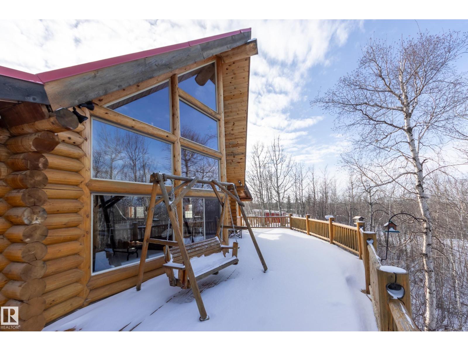 Your private Yellowstone-inspired escape exists and once you step inside, you won’t want to leave! Set near Calahoo, this masterfully crafted log home featuring towering windows & 23ft cathedral ceilings represent the pinnacle of rustic luxury, designed to maximize natural light & an airy sense of grandeur. Built to last with premium logs from Whitefish, Montana, ICF foundation, metal roof & upgraded insulation, it’s as solid as it is stunning. Gather around the oversized island in the welcoming kitchen where entertaining is effortless. Two bedrooms & 5pc bath complete this level. In the loft, unwind with phenomenal panoramic views in a primary retreat with seating & 5pc ensuite. The bright walkout bsmt is started with bath & wet bar rough-ins, laundry & partially framed bedrooms. Recognizing its potential, this sought-after rental was chosen as the filming set for the hallmark-ish movie, Coupled Up for Christmas! This is more than a home, it’s a lifestyle just minutes from the City. (id:63190)