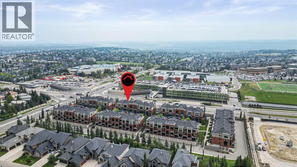 Experience elevated townhome living at 606 Aspen Meadows Hill SW – a luxurious 3-bedroom, 4-bathroom residence in the prestigious community of Aspen Woods. This executive home is thoughtfully designed with a private in-suite elevator, upscale finishes, and a highly functional layout that suits both relaxed living and stylish entertaining. The main floor is bright and airy, featuring 9’ ceilings, engineered hardwood flooring, and elegant built-ins. The kitchen is a chef’s dream with granite countertops, a center island, gas cooktop, wall oven, and a stainless steel French-door refrigerator. A bright dining area opens through French doors to a sun-drenched west-facing patio, ideal for relaxing or hosting.The living room offers a cozy yet refined feel with its fireplace and custom built-ins overlooking the fenced backyard. Also on the main floor is a powder room and a spacious third bedroom with a walk-in closet and private 3-piece ensuite — perfect for guests, aging parents, or a home office. Upstairs, a generous loft space includes a wet bar, bar fridge, and custom cabinetry. The primary suite provides a peaceful retreat with a private balcony, walk-in closet, and a luxurious 4-piece ensuite with double vanity and oversized shower. The second upper bedroom also includes a walk-in closet and its own full ensuite bath. A convenient upper-floor laundry room makes everyday living easy.Additional features include central A/C, a double tandem attached garage, and a huge private storage room. Located close to Aspen Landing, LRT, top schools, and parks, this home offers upscale, maintenance-free living in one of Calgary’s most desirable west-end communities. (id:63190)