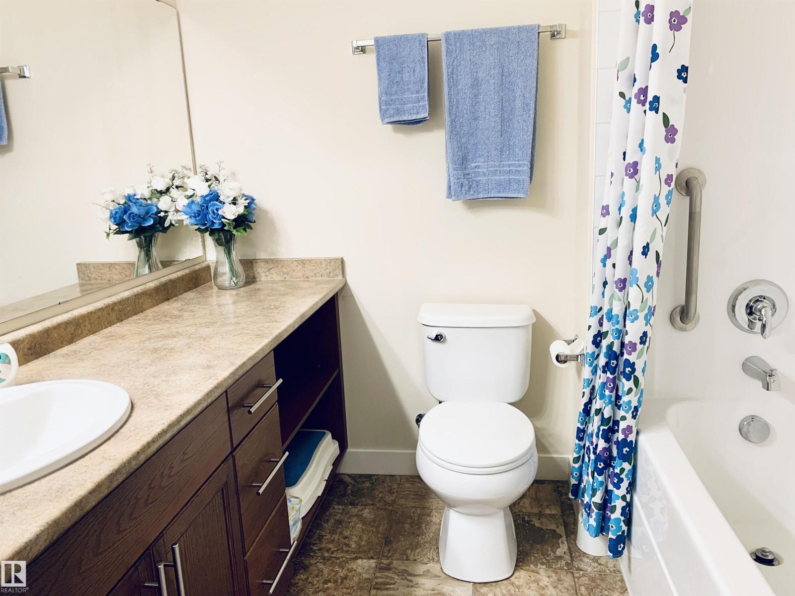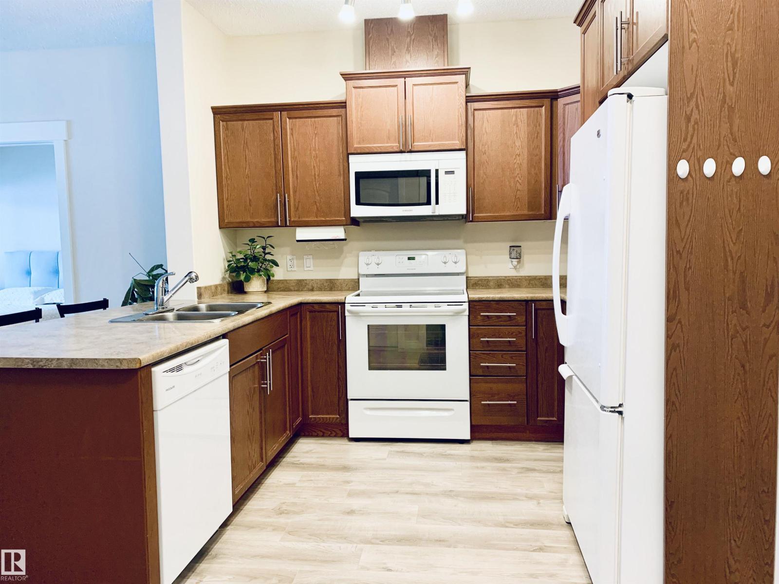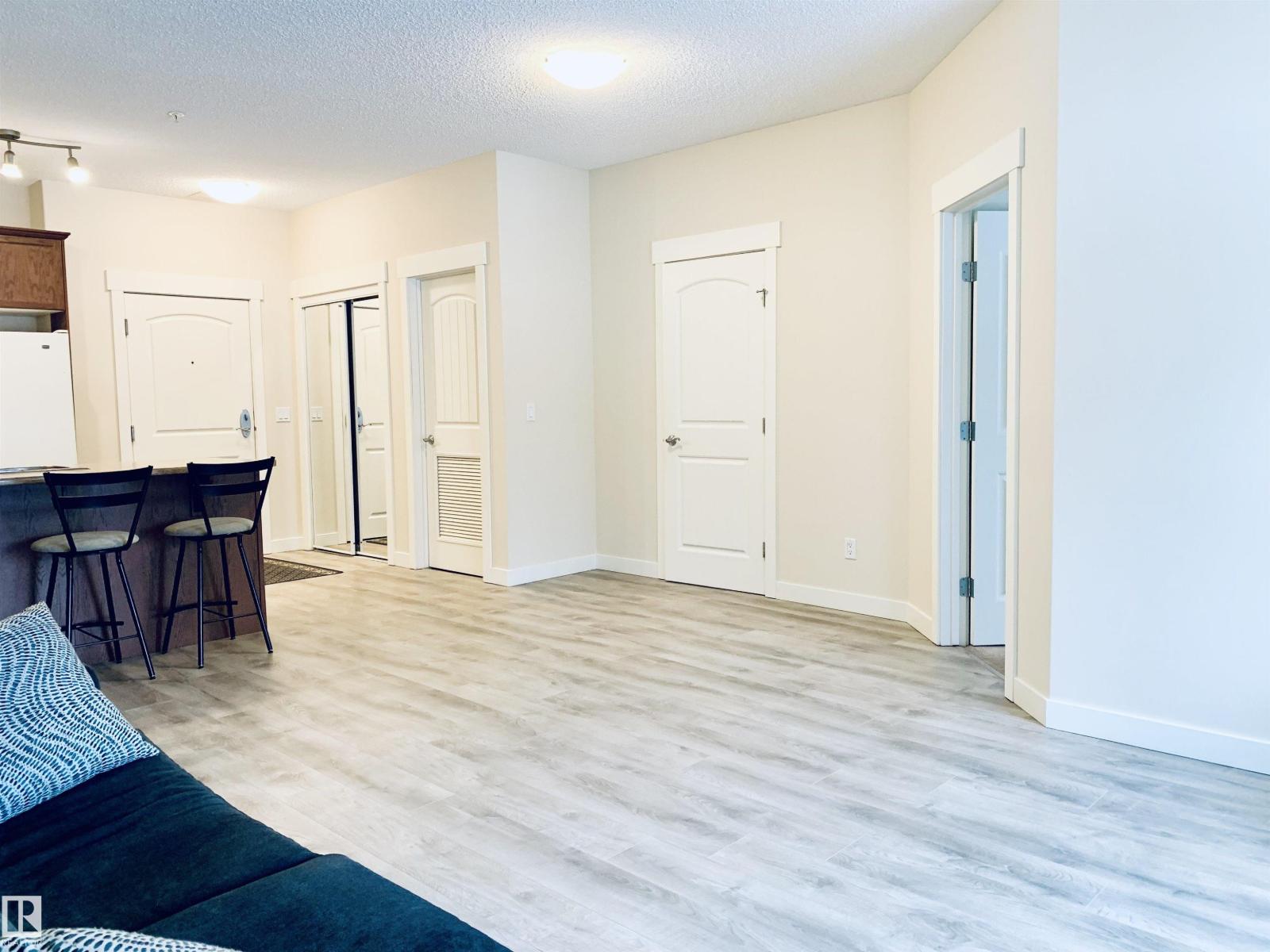 Enjoy the luxuries of living and settle into your new home at #116 Windsor Estates! 55+ condo living at its best. This bright 2-bedroom, 2-bathroom home offers 891 sq. ft. of functional living space. The primary bedroom features a walk-in closet and 3-piece ensuite with walk-in shower, while the second bedroom is steps from the 4-piece main bath. Upgraded flooring and fresh paint were completed in Fall 2024. Enjoy large windows, an extra-large west-facing covered balcony, in-suite laundry with storage cabinetry, air conditioning, and heated underground parking with secured storage. Included appliances: refrigerator, stove, built-in dishwasher, built-in microwave/range hood fan, washer, dryer, stand-up deep freezer, and window coverings. Building amenities include a theatre room, exercise room, social room, games area, guest suites, and car wash. Walking distance to downtown Spruce Grove and Queen Street Place. (id:63190)