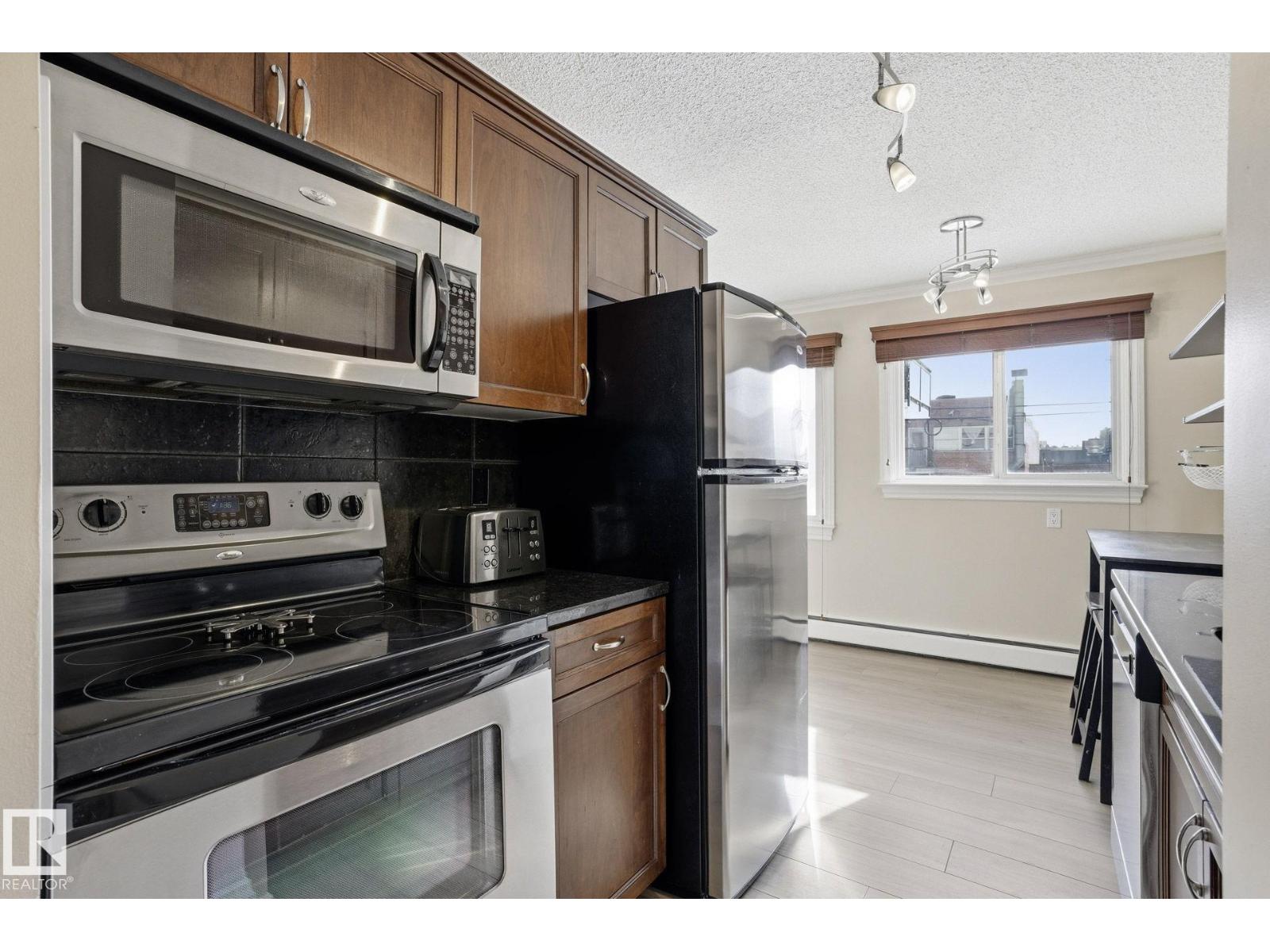 Location, convenience, and value all in one! Just steps from the University of Alberta and the vibrant energy of Whyte Avenue, this bright and updated 800 sq ft, 2-bedroom, 1-bathroom condo is move-in ready. You'll find modern vinyl flooring, large windows that fill the space with natural light, and the convenience of in-suite laundry. The kitchen even features a dishwasher—a rare and welcome bonus in buildings of this era. The thoughtfully designed layout offers plenty of in-suite storage, making everyday living easy and comfortable. This well-maintained unit also comes complete with its own dedicated parking stall. Located in Barry Manor, a professionally managed building, this property is an excellent opportunity for first-time buyers, students, or investors looking for a strong rental location. Enjoy being within walking distance to the University of Alberta campus, restaurants, cafés, shopping, nightlife, and all the amenities that make Whyte Avenue one of Edmonton's most desirable neighborhoods. (id:63190)
