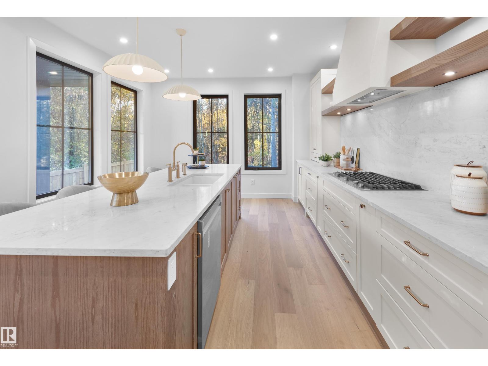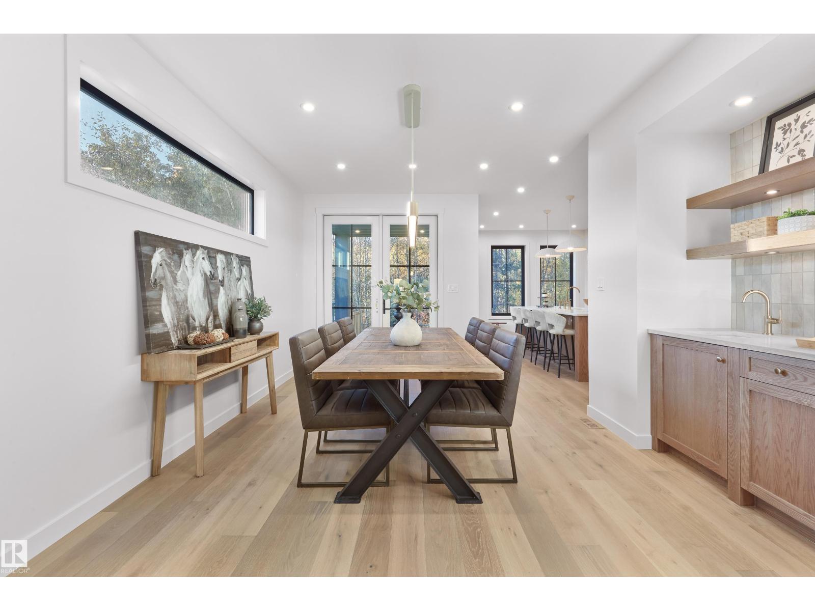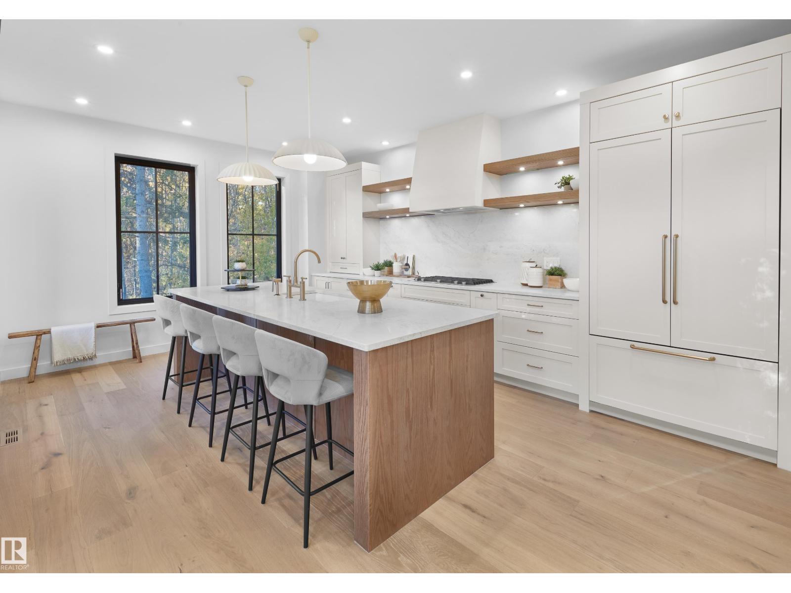 This meticulously designed home showcases high-end finishes, superior craftsmanship, & backs onto the ravine! With over 4,200 sq ft of living space, it offers 4 bedrooms + a den, a main floor office, & a massive upper loft with a rooftop patio. The main floor features stunning hardwood, custom iron doors, brick accents, & a chef’s kitchen with elegant cabinetry, panel appliances, dual fridges, built-in ovens, & bookmatched countertops. A dining wet bar includes a built-in beverage fridge, while the living area centres around a plaster fireplace with built-in cabinetry. The primary suite boasts a gorgeous, spa-like en-suite and a large walk-in closet. Upstairs are 3 bedrooms, a den, & 3 full baths. The top-floor loft impresses with a wet bar, 2 pc bath, & rooftop patio with a gas fire table overlooking the ravine. The lower level offers in-floor heat, a rec room, a bedroom, & bath. Oversized heated garage with epoxy floors & south yard with covered deck complete this must-see home! (id:63190)