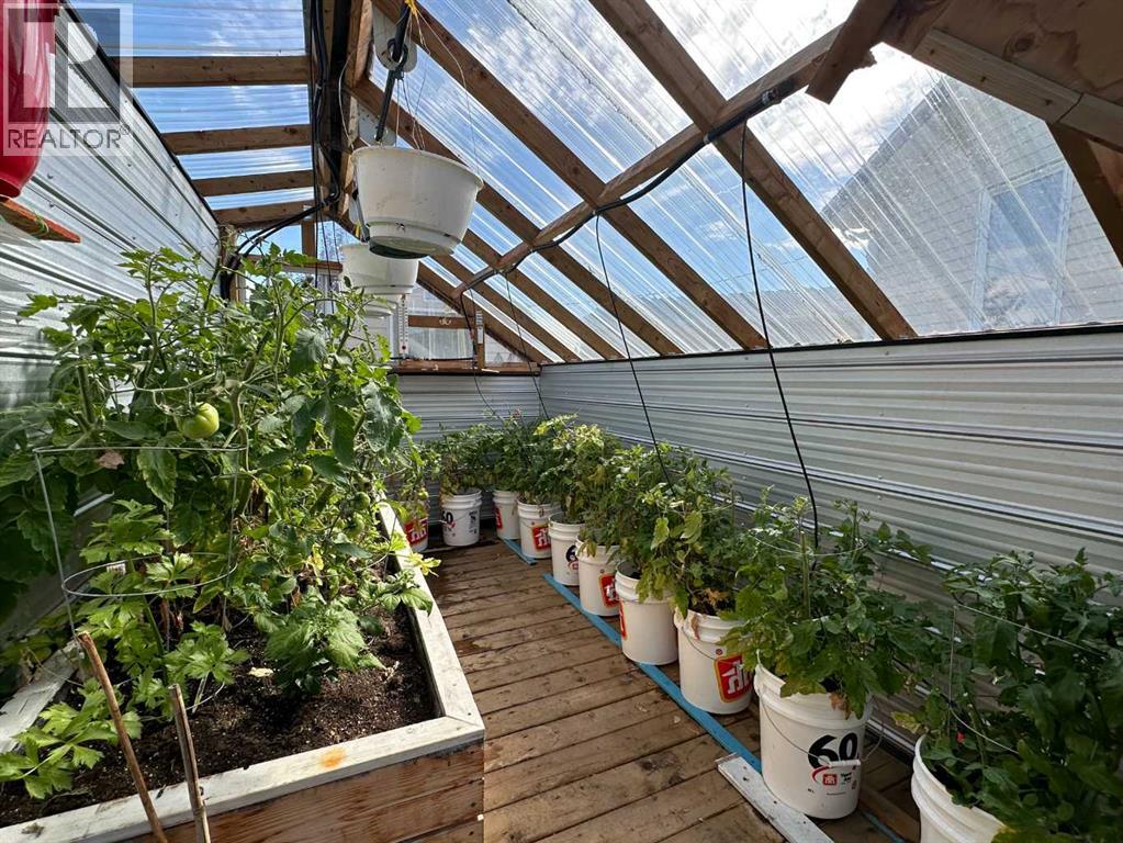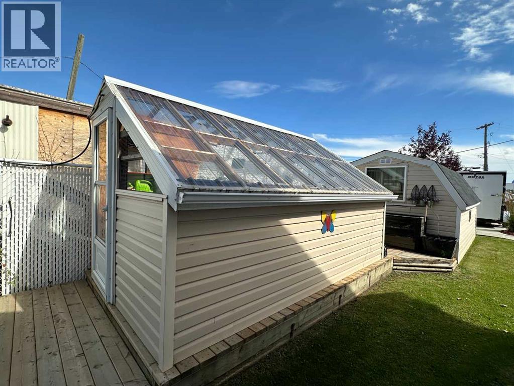 One level living on a large fully fenced pie shaped lot in the Town of Falher. No detail was overlooked when this property was set up. The beautiful yard is set up with sheds for storage (finished in tin on the interior), a productive greenhouse and newly built raised gardens. There is back alley access to the oversized double garage which is complete with 1/2 bath and washing machine. There is also a large generator tied into the house so if the power goes out all you need to do is flip a switch and power can be used as usual. As an added bonus there is detailed cement work which is aesthetically pleasing and also serves in reducing the amount of dirt brought inside. On the front there is a large deck accessed by stairs and a ramp for easy accessibility. Whether entering this home which boast over 2,000 square feet of living space from the front or the back you will immediately notice how spacious the entry is. It's set up with lots of closet space and a cozy gas stove for heat. There is an additional room just off the entrance which is currently used as a bedroom but is also set up with all the connections required for an indoor hot tub. When you enter the heart of the home you will find a nicely appointed kitchen (complete with large island, and pantry) which is open to the dining room and living room, great for entertaining! On the back side of the home you will find a spacious master bedroom with 3 piece ensuite bathroom. On the other end of the home there are two additional bedrooms with a 4 piece bathroom. If you have been looking for a well cared for home with a large garage and plenty of storage this may be the perfect place for you! 360 virtual tour now available in the media section, floor plans area available in the photos section! (id:63190)