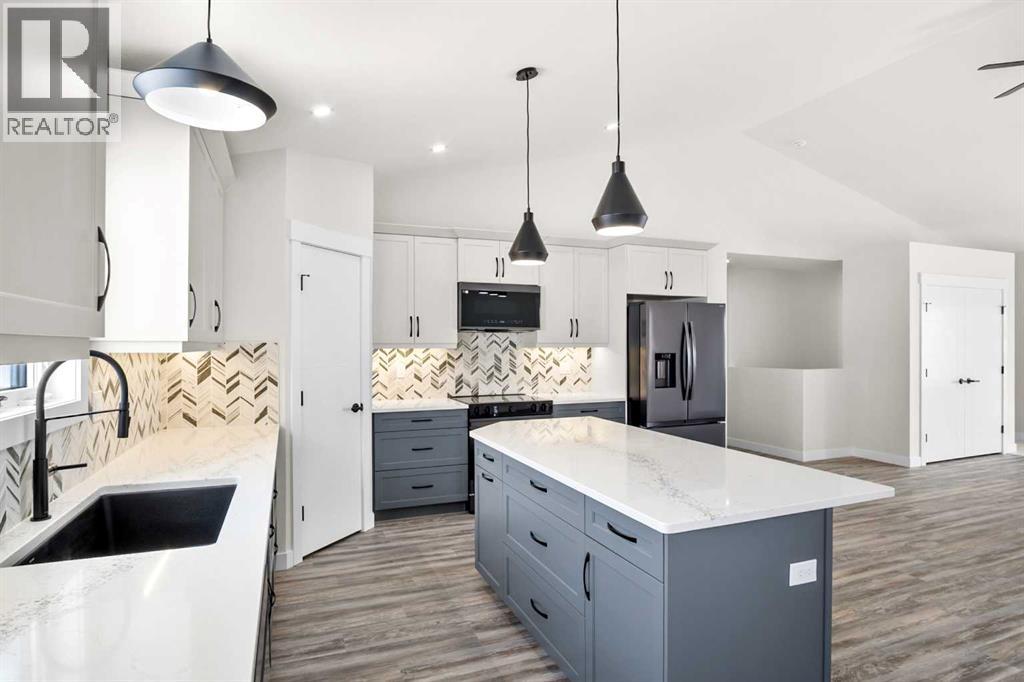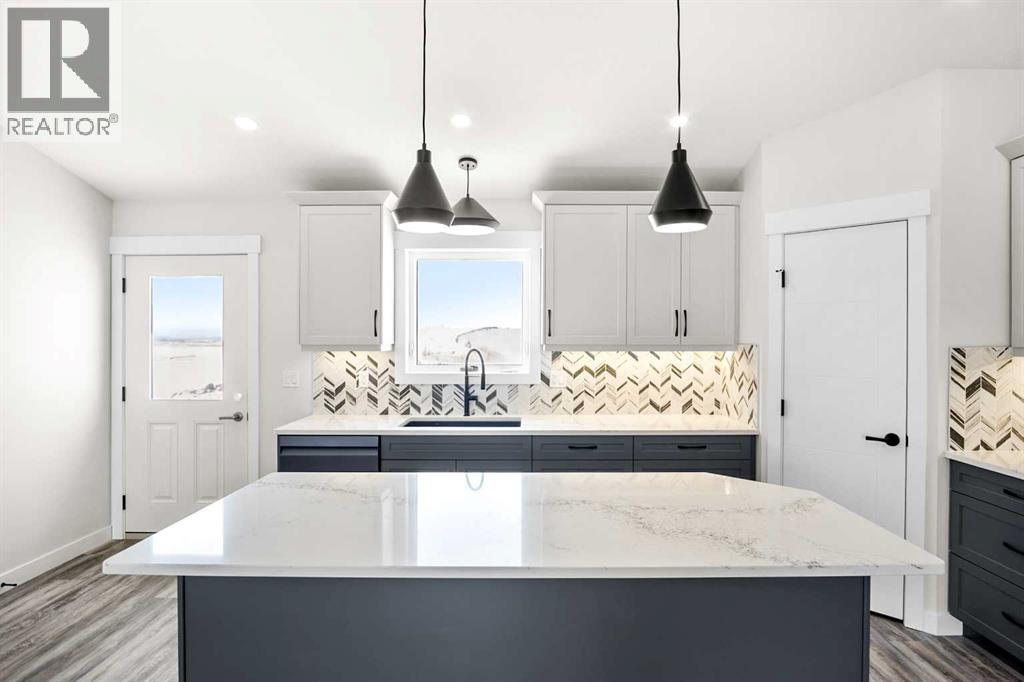 This beautifully built home offers modern finishes, functional design, and quality craftsmanship throughout. The main level features a bright open-concept living and dining area that flows seamlessly into the stylish kitchen, complete with stainless steel appliances, quartz countertops, an oversized island, and abundant cupboard space. A large pantry with wood shelving provides excellent storage. The main floor includes three bedrooms, including a spacious primary bedroom with a large walk-in closet and a private 3-piece ensuite. Two additional generously sized bedrooms and a 4-piece main bathroom complete the level, along with several convenient storage closets. The double attached garage is equipped with in-floor heat and 220 power, making it ideal for parking, projects, or extra workspace. Downstairs, the unfinished basement offers incredible potential for future development, featuring 9-foot ceilings, in-floor heat, and laundry hookups, ready for your custom design. The front yard will be completed with sod and one tree when weather permits, adding the finishing touch to this beautiful new home. A fantastic opportunity to own a brand-new bungalow in a welcoming neighborhood—perfect for families, or anyone looking for modern comfort and future potential. (id:63190)
