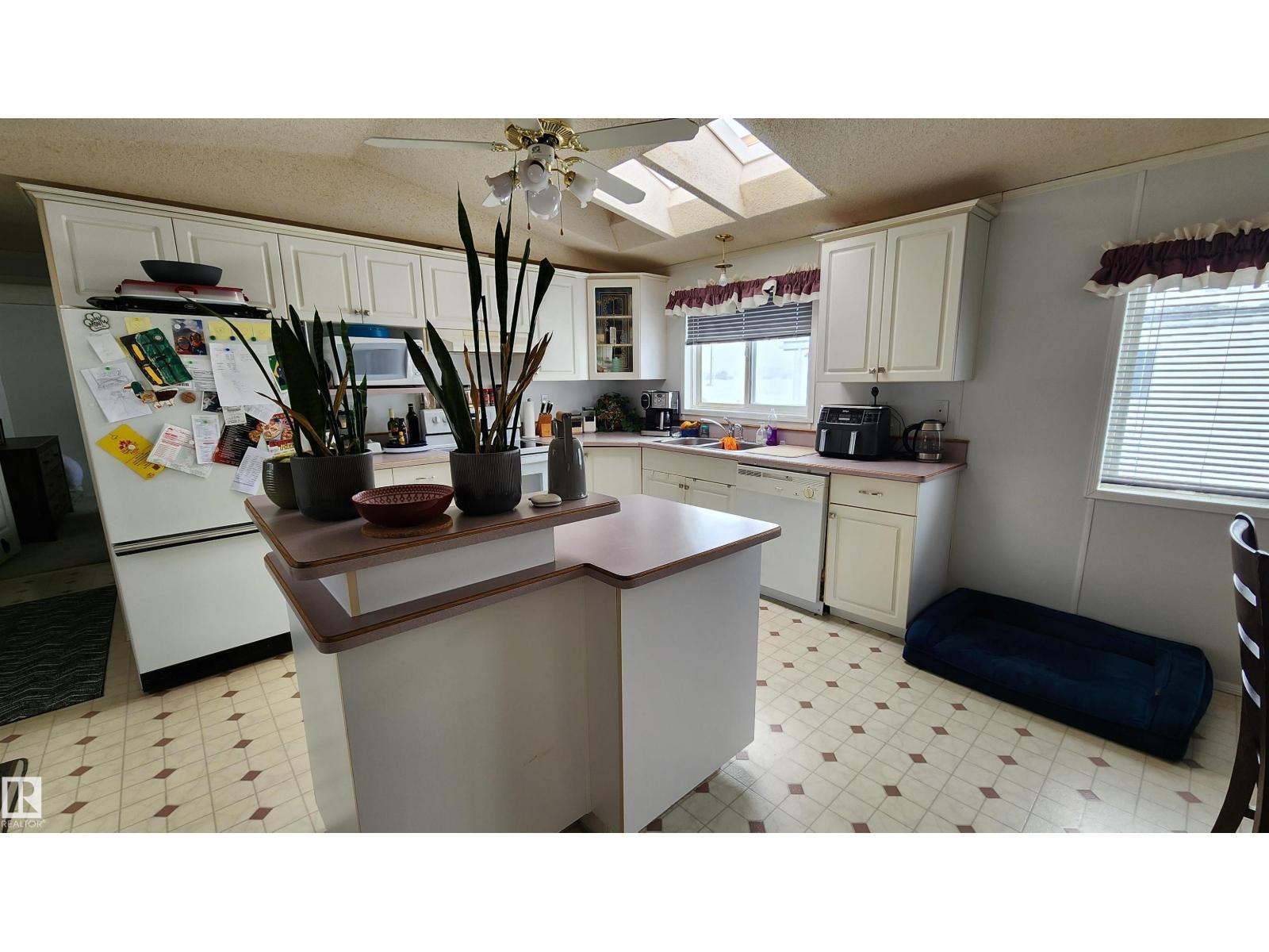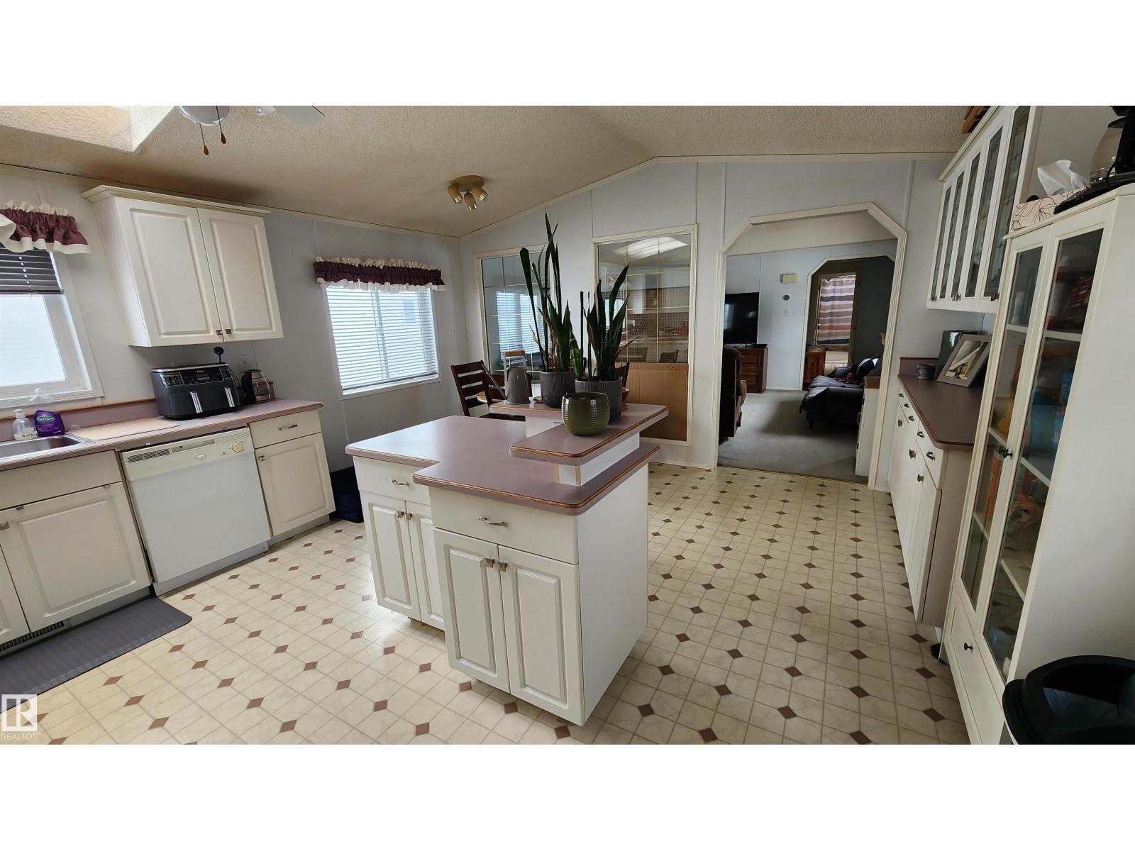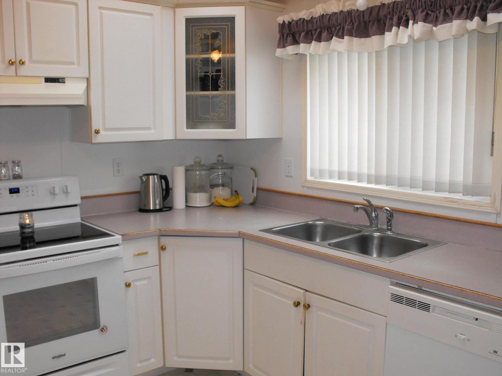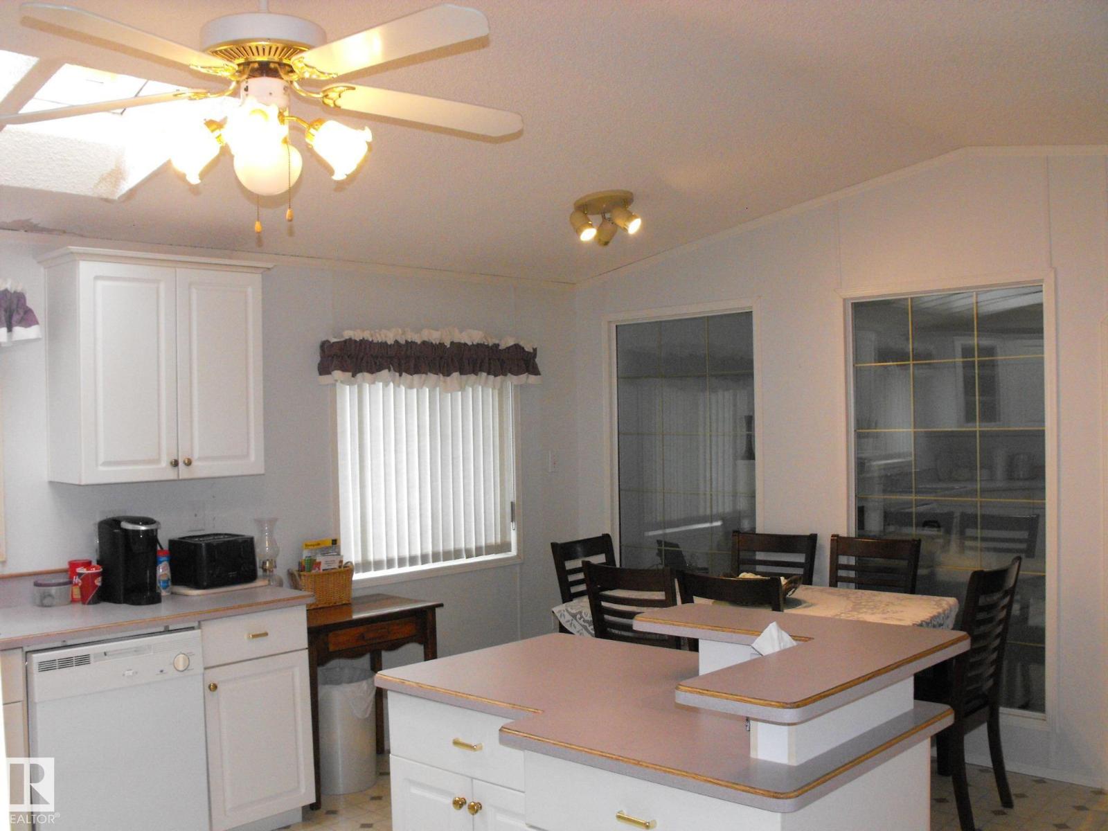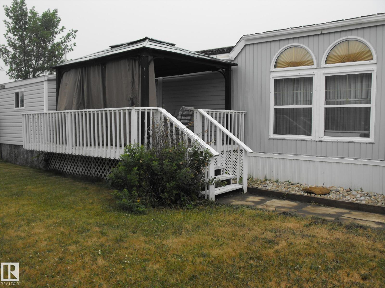 What a deal for the first time home buyer, retiree or family! This 1216 sq.ft. 1996 manufactured home features 3 bedrooms & 2 full bathrooms. The spacious kitchen features a central island (powered), ample cabinets and counter space, built-in china cabinet and BI dishwasher. The large living room features a wall with windows to the kitchen and a vaulted ceiling. You will love the master bedroom with WI closet & 4 pc ensuite with jacuzzi. Not often found in a mfg home is a separate room for the washer/dryer & central vac. Also included is a back porch for storage / boot room and deck with gazebo. Backing an open field the large landscaped lot is fenced, includes 2 storage sheds and has back alley. With 2x6 construction, 5 year old shingles, an open concept design and skylights for natural light, this home offers so much at an affordable price. Lot rental is only $400.00 per month. Taxes (2025) are $772.87 ($64/month). Great location close to playground! (id:63190)