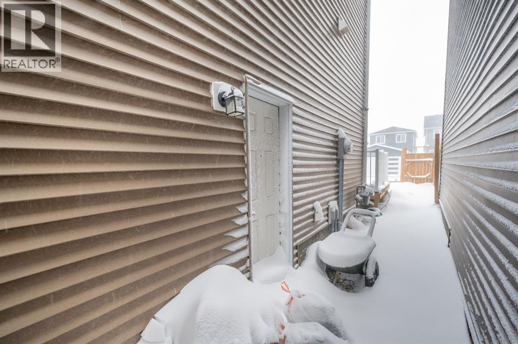 Welcome to this beautiful 3-bedroom, 2.5-bath laned home in the vibrant community of Cobblestone Creek. Only one year old, this modern home offers a functional layout, stylish upgrades, and excellent future potential. The main floor features a bright open-concept floor plan, perfect for both everyday living and entertaining. The fully upgraded kitchen boasts modern finishes, ample cabinetry, and quality appliances, flowing seamlessly into the spacious dining area and comfortable living room. A convenient half bathroom completes the main level.Upstairs, you'll find three well-sized bedrooms, including a primary suite with its own full ensuite bathroom. An additional full bathroom serves the other bedrooms, and the upper-floor laundry room adds everyday convenience. The unfinished basement comes with a separate side entrance, offering great potential for future development or customization. Outside, the backyard is fully set up and ready to enjoy, featuring a finished deck, fencing, and a two-car parking pad at the rear. Located in the growing community of Cobblestone Creek in Airdrie, this brand-new, young and vibrant neighborhood offers easy access to parks, schools, shopping, and everyday amenities—making it an ideal place to call home. (id:63190)