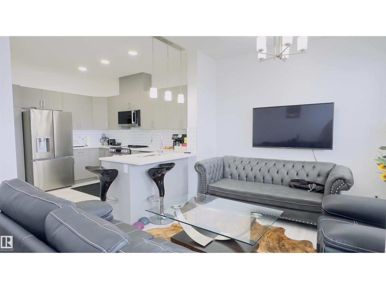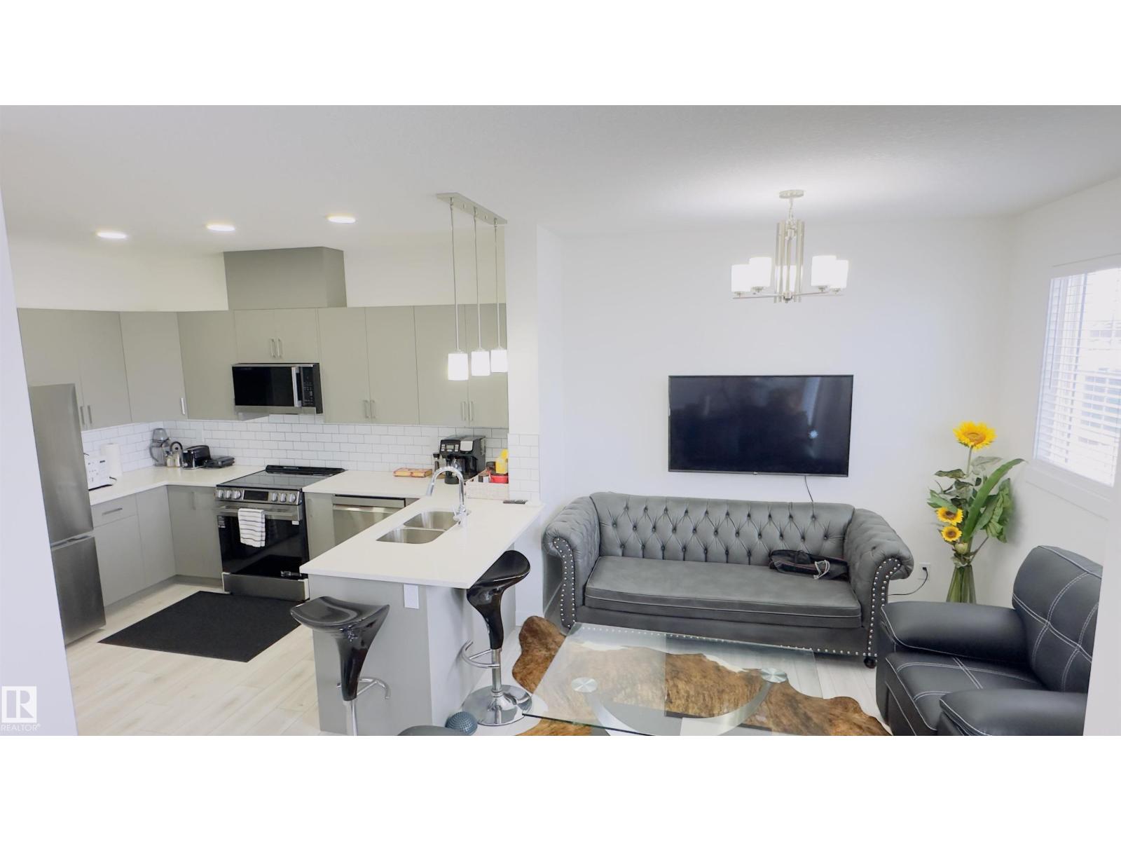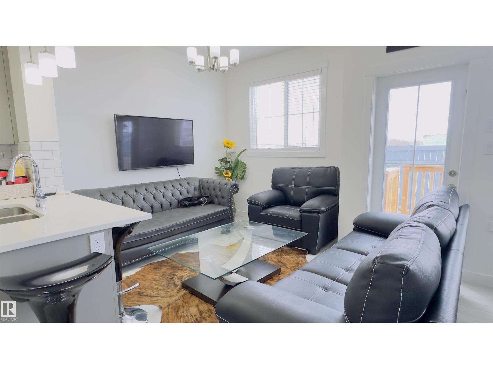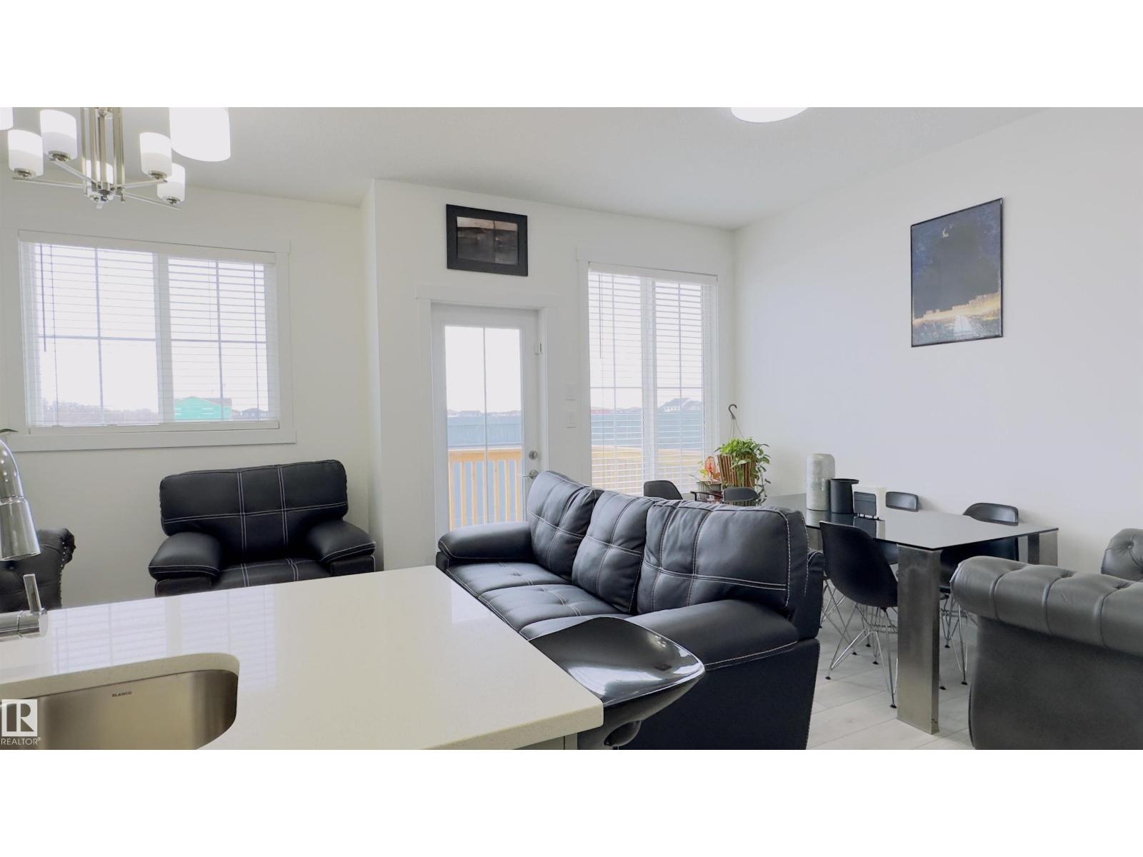 Pristine 2025 built, 3 bed, 2.5 bath, end-unit, double attached garage, low condo fees townhouse in the charming Keswick community. Open, light-filled main level showcasing kitchen with premium stainless-steel appliances, breakfast bar, elegant modern cabinetry, and dining & living areas. A discreet 2-pc bath, direct garage entry, and finished deck make everyday living effortless. Ascend to the upper floor to the primary retreat with a serene 4-pc ensuite and walk-in closet. Other two well-proportioned bedrooms share a 4-pc bath, while the dedicated laundry closet keeps chores simple. Below lies a clean, unfinished basement ready for your vision! Prime positioning puts you steps from schools, restaurants, public transit, FreshCo, Rexall, Starbucks, Dollarama, Petro-Canada, and daily conveniences. Enjoy a swift 15-minute drive to Edmonton International Airport & the Premium Outlet Mall, with easy on-ramps to Anthony Henday & Highway 2. (id:63190)
