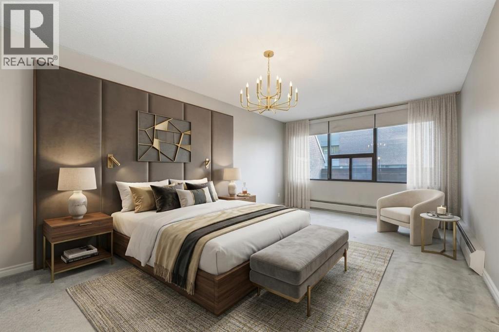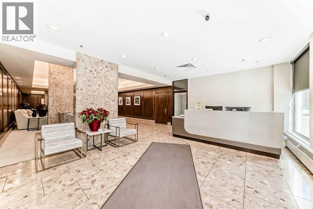 Spacious 2 bedroom, 1.5 bath unit in Mission's prestigious Roxboro House! This well maintained suite has a large, private feeling balcony which spans the width of the entire apartment. It has a view of the Calgary Tower plus an open, bright layout. Kitchen includes a desk/eating bar, a newer stainless steel oven, and recently painted cabinets. Ample closet space in the generous primary bedroom. Use the second bedroom as a private office/den or guest quarters. Features in-suite storage, plus an assigned storage locker (#63 in the basement) so you'll have room for everything. Comes with a parking stall in the heated parkade (#80 - which is on the same level as the unit for convenient access), plus all the building's luxury facilities: huge, beautifully landscaped 4th floor sundeck, pool, hot tub, sauna, party room, gym, games room, large hobby and woodshop room, main floor 2 bedroom guest suite with kitchen available to be booked for visiting friends and family (rate ranges from $100 to $150/night), visitor parking, 24-hour security staff, and bike storage! Utilities, including electricity, are part of the condo fee (except cable/phone). Please note that Roxboro House is a pet free environment. The building is currently undergoing hallway modernization. New look is stylish and elegant. Second floor hallway reno is underway so check out the fourth floor on your way to the sun deck to see how great it'll look when finished. This locale is perfect for walking or biking as you're conveniently near the Elbow River pathway, groceries, and amenities in the heart of Mission and 4th Street. (id:63190)