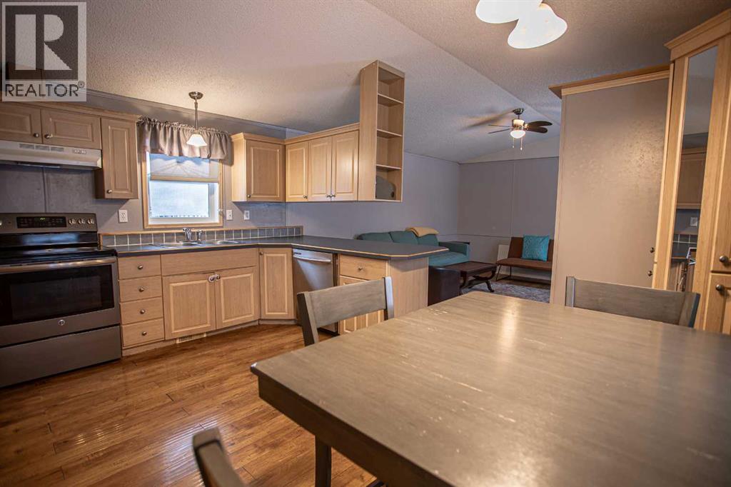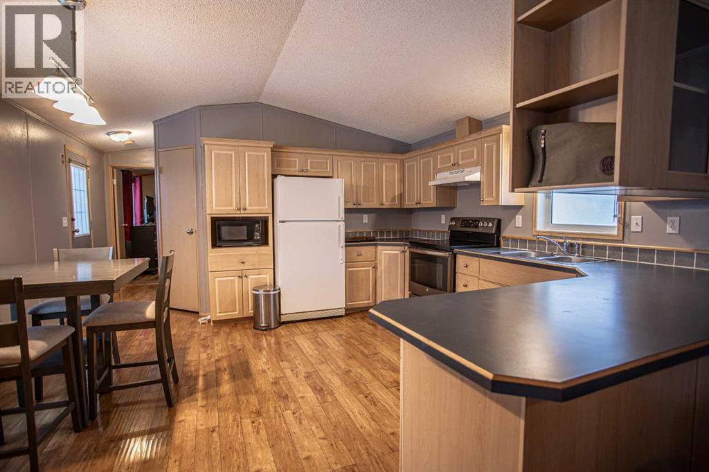 Discover this bright and easy care 1216 sq ft 3 Bed/2 Bath modular home, This home boasts a desirable one-level layout, north facing outdoor living space with a fenced yard and a 16 x 20 shed. At the end of a quiet, no-thru drive leads to a generous concrete parking area and a generous deck with enough room for multiple seating areas, a BBQ and garden boxes. Enjoy peaceful mornings accompanied only by the sound of birds, afternoons of relaxation basking in the sun, and evening dinners. Morning, noon, and night the superb setting invites you to unwind and savour every moment. On the quiet west side of the home you will find two bedrooms both with great size closets, provide flexibility to suit your needs— whether as room for your family, space for your guests, a Home Office, or a creative hobby space, with the main bath offering a tub/shower combo. An airy vaulted ceiling in the sizable Sitting Room, where an oversized picture window invites sunshine indoors while framing picturesque outdoor views. The classic 4 pc Kitchen offers an abundance of cabinetry, including the walk in pantry, generous counter space, and stainless-steel appliances. On the opposite side of the home you’ll find a spacious Primary Bedroom Suite offering a serene retreat, featuring a walk-in closet for ample storage and a ensuite with jetted soaker. Complete the day with a peaceful evening stroll along the walking trails only a stone's throw away, while savouring the vivid pastel colours of the setting sun and feeling close to nature with the majestic trees surrounding you.. (id:63190)
