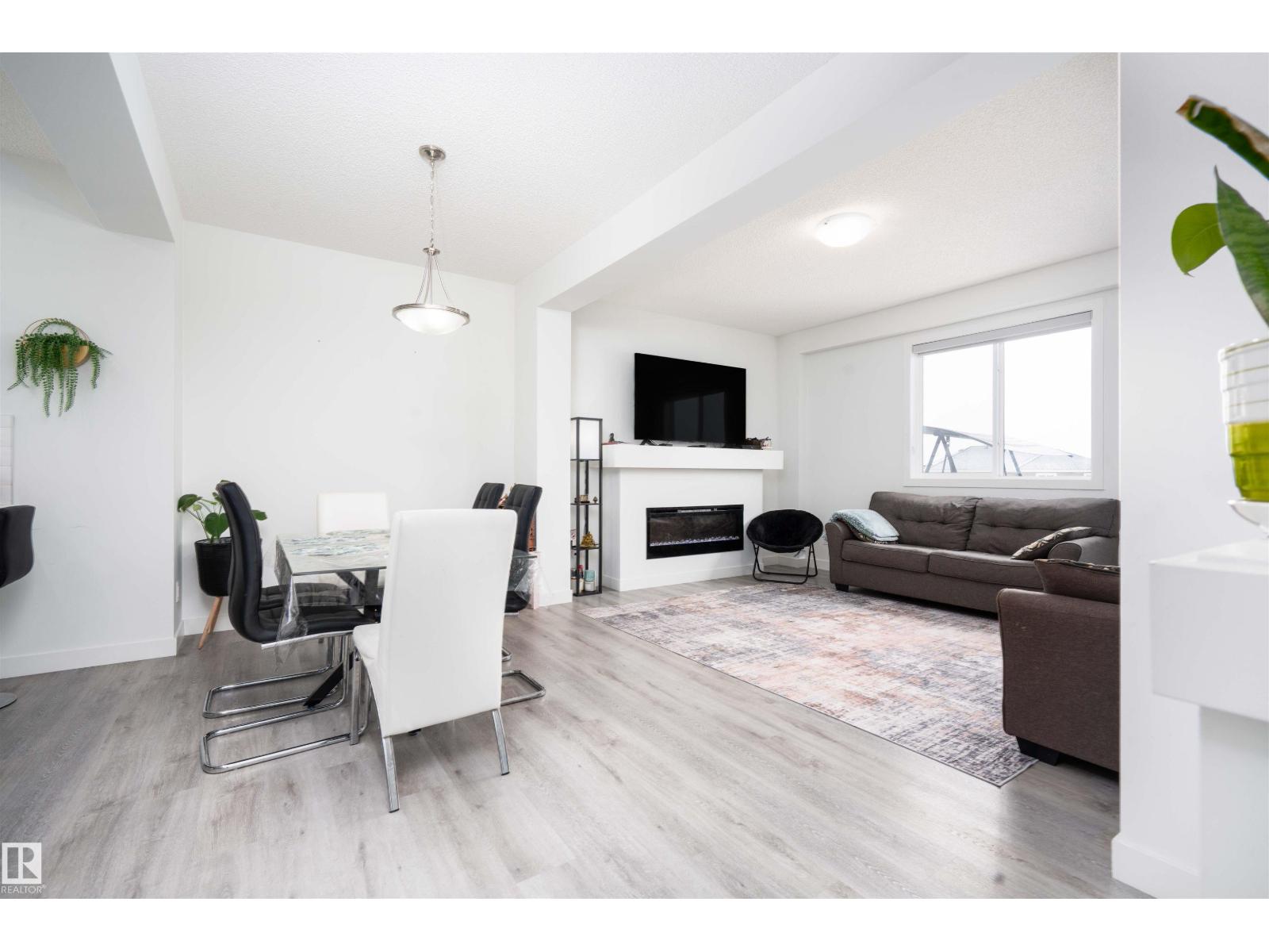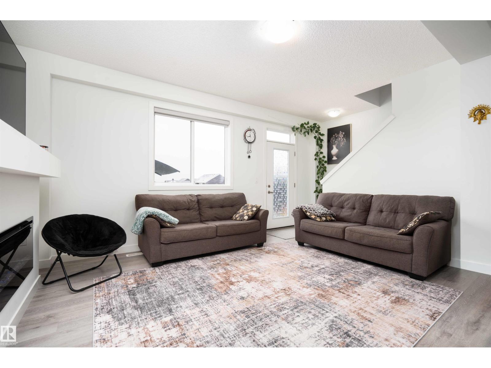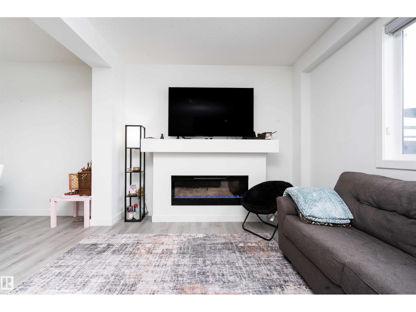 Welcome to this well-maintained home in the desirable community of Walker, Edmonton. Featuring 3 bedrooms, 2.5 bathrooms, and a versatile den, this thoughtfully designed layout suits families, first-time buyers, or investors. The bright open-concept main floor offers large windows, a functional kitchen with stainless steel appliances and ample cabinetry, plus a cozy living room with a fireplace. Moreover, main-floor laundry add convenience. Enjoy the spacious balcony overlooking the landscaped courtyard. Upstairs includes a primary suite with walk-in closet and ensuite, plus two additional bedrooms and a full bath. Close to Shauna May Seneca School, parks, shopping, transit, and Anthony Henday. (id:63190)