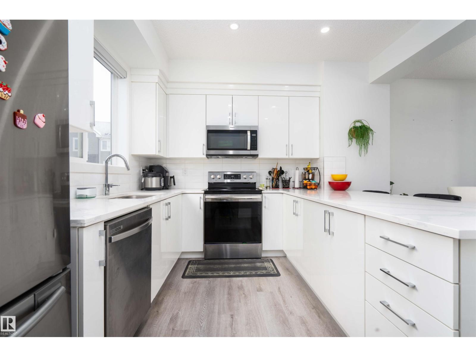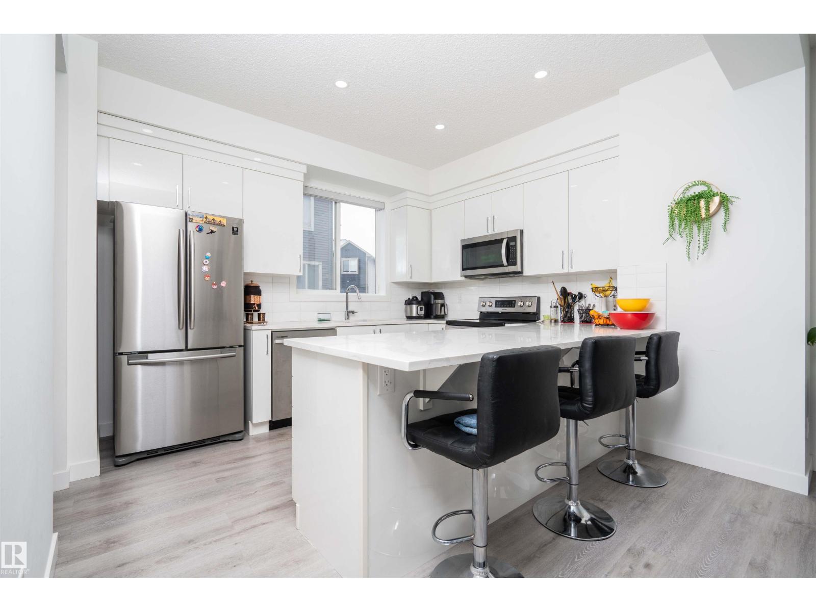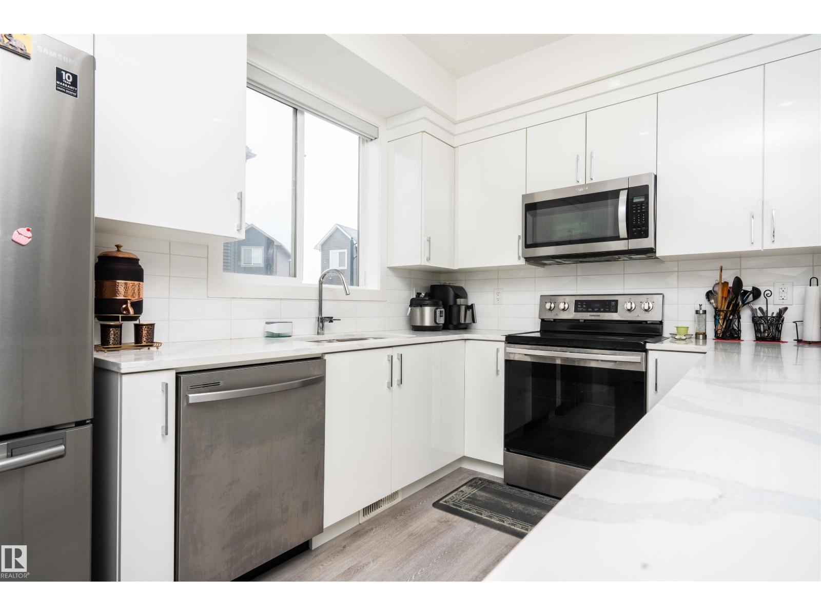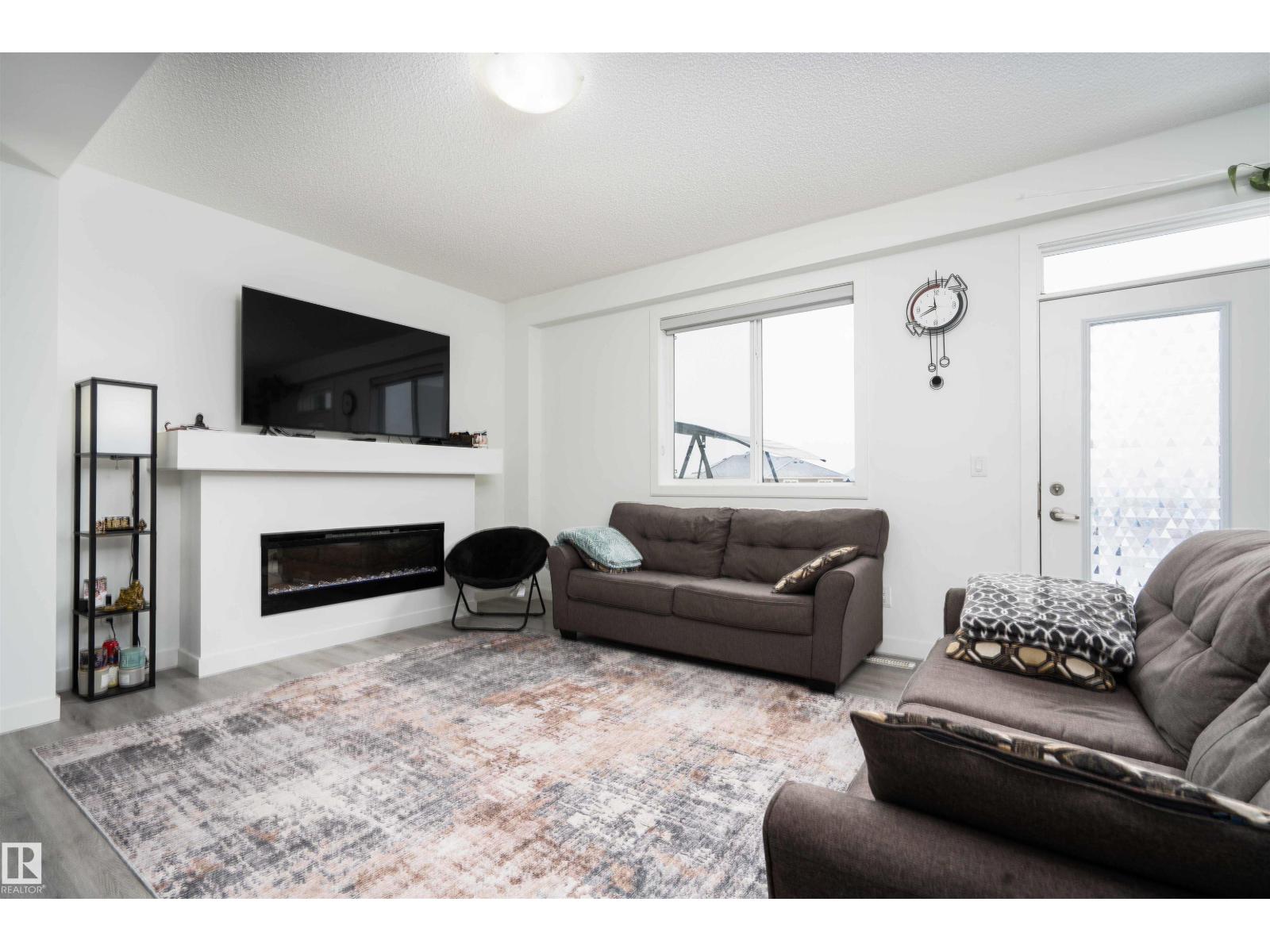 Welcome to this well-maintained home in the desirable community of Walker, Edmonton. Featuring 3 bedrooms, 2.5 bathrooms, and a versatile den, this thoughtfully designed layout suits families, first-time buyers, or investors. The bright open-concept main floor offers large windows, a functional kitchen with stainless steel appliances and ample cabinetry, plus a cozy living room with a fireplace. Moreover, main-floor laundry add convenience. Enjoy the spacious balcony overlooking the landscaped courtyard. Upstairs includes a primary suite with walk-in closet and ensuite, plus two additional bedrooms and a full bath. Close to Shauna May Seneca School, parks, shopping, transit, and Anthony Henday. (id:63190)