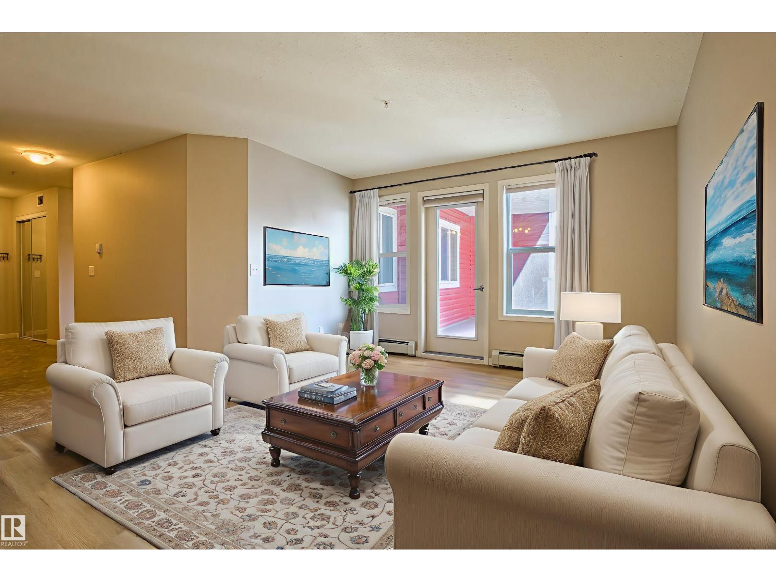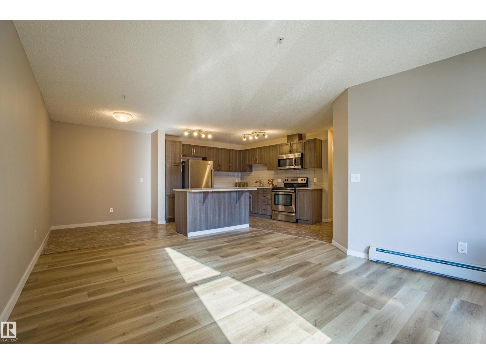 Welcome to this fantastic 2 bed, 2 bath condo in the desirable neighbourhood of Rutherford, located in the heart of Southwest Edmonton's Heritage Valley. This 925 sf, move-in ready home offers incredible value with TWO PARKING STALLS—one heated underground and one surface stall! The bright, open-concept layout features a modern U-shaped kitchen with stainless steel appliances, a peninsula island with seating, and a spacious living room that opens onto your private, covered balcony. The smart floor plan separates the two bedrooms for maximum privacy, including a primary suite with a walk-through closet and 3-pc ensuite. Enjoy the convenience of in-suite laundry, ample visitor parking for guests, an indoor garbage chute, and even a car wash in the building. Perfectly situated just minutes from the Anthony Henday, QEII, South Edmonton Common, and the airport, this home offers an unbeatable combination of comfort, convenience, and lifestyle. Mong. Fee Otterson school is near by.Some pics are virtually staged. (id:63190)
