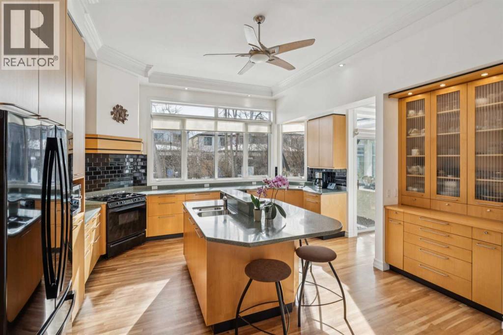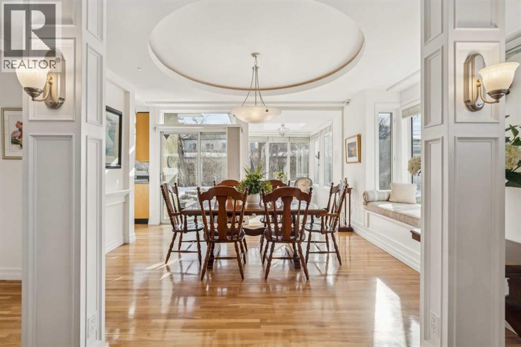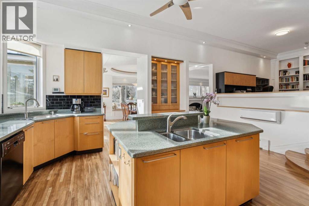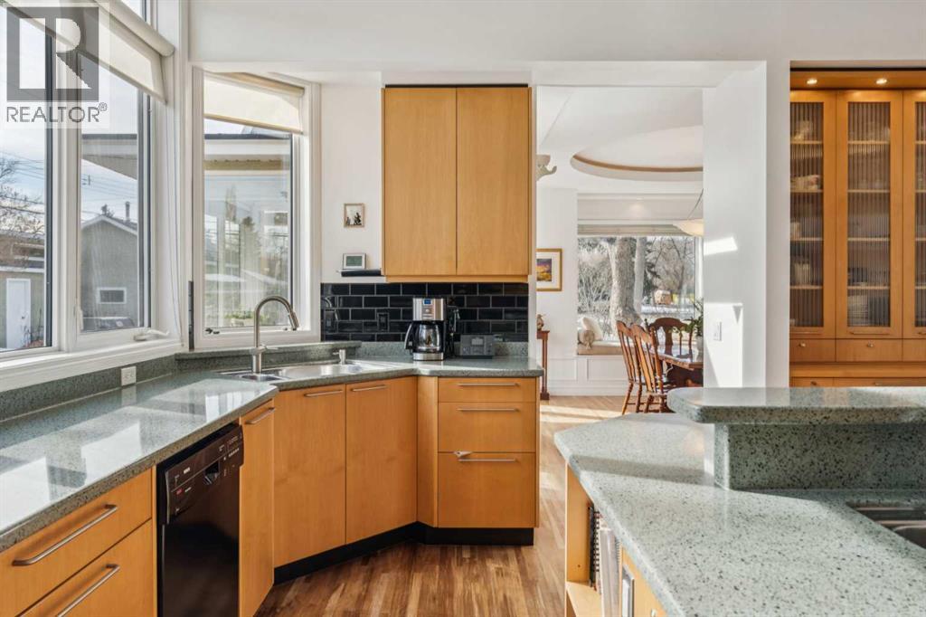 Welcome to Renfrew. This beautifully renovated and expanded mid-century home offers over 2,300 sq. ft. with 4 bedrooms and 3 bathrooms, gorgeous hardwood, highlighted by 9-foot ceilings throughout. A rare inner-city offering, the property features both a double attached garage and a double detached garage, providing exceptional parking and storage.An additional highlight is the future redevelopment potential. Situated on an expansive 11,000 sq. ft. corner lot facing Beaumont Park. Properties of this size are increasingly being redeveloped into multi-plex projects with six or more townhomes, making this an attractive opportunity for investors, builders, or homeowners seeking long-term value.The elegant living room is filled with natural light from an abundance of windows and anchored by a gas fireplace with a substantial mantel and built-in shelving. It flows into the dining area—perfect for large family gatherings—and a bright sunroom ideal for plants or a relaxing retreat. The kitchen impresses with an 11-foot ceiling, sleek Denca cabinetry, generous counter space, and large windows overlooking the stunning backyard.The master's quarter's features a walk-in closet and spacious 4 piece ensuite, while two additional bedrooms, a full bathroom, and a versatile den—ideal for a home office or library—complete the main level.The fully developed lower level offers an entertainment room, kitchenette/summer kitchen, 4th bedroom, second laundry area, and direct access to the Double Attached Garage. A Double Detached Garage and 40-foot driveway provide additional parking for vehicles, hobbies, or even an RV. Additional highlights include a 60,000 BTU heat pump for efficient heating and air-conditioned comfort and a rainwater capture system. With spring just around the corner, you’ll truly appreciate spending time in the beautifully landscaped, park-like yard. Curved paver pathways wind through a vibrant collection of perennial gardens, flowering plants, and mature shrub s, creating a peaceful setting that feels both private and inviting. Whether you’re tending to the garden, enjoying a morning coffee on the patio, or tending to the gas barbecue on a warm summer evening, this thoughtfully designed outdoor space offers a wonderful connection to nature right in the heart of the city. Renfrew is a vibrant inner-city community offering excellent amenities, including Renfrew Athletic Park, a Natural Park, and the Nose Creek pathway system. Residents enjoy nearby recreation facilities, indoor pool, skating arenas, schools, and quick access to local restaurants and cafés along Edmonton Trail, all just minutes from downtown. Move in & Enjoy! (id:63190)