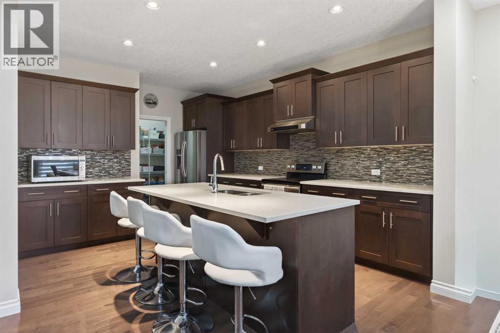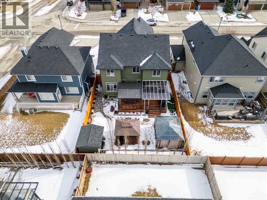 MARCH 29, 2026 PUBLIC OPEN HOUSE FROM 1:00PM TO 4:00PM. Welcome to this beautifully upgraded home offering the perfect blend of space, comfort, and convenience. Featuring a heated triple attached garage, this property is ideal for families and those who value extra storage and parking. Step inside to discover a bright and inviting main floor with hardwood floors, a spacious den, and an elegant living room centered around a cozy gas fireplace. The chef-inspired kitchen boasts quartz countertops, a functional breakfast bar, and a large walk-in pantry, seamlessly connecting to the dining area—perfect for entertaining. Upstairs, you’ll find a generous bonus room along with 4 spacious bedrooms, including a luxurious primary retreat complete with a 5-piece ensuite and walk-in closet. The fully finished basement expands your living space with 2 additional bedrooms and plenty of room for guests or extended family. This home offers a total of 3.5 bathrooms, ensuring comfort for the whole household. Enjoy outdoor living at its finest with a newer composite deck, relaxing hot tub, and charming gazebo—perfect for year-round enjoyment. Additional upgrades include central air conditioning and a water softener.Conveniently located close to schools, with quick access to major routes including Stoney Trail and just a short drive to the airport and the beautiful Chestermere Lake, and an easy commute to the City of Calgary. Call your favourite Realtor now!!! (id:63190)