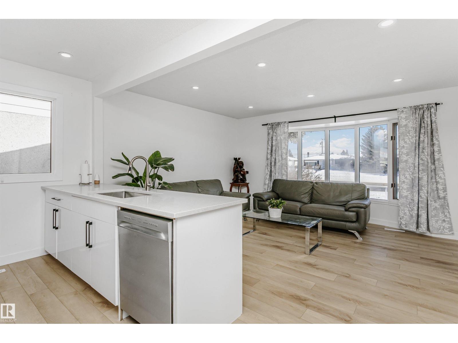 Renovated, 4 bedrooms and 2 bathrooms bungalow w/ fully finished basement. It's located in the community of Kensington. Bright, open floor plan, living room w/ large window, new, modern kitchen w/ plenty of cabinets & quartz countertops. Spacious dining area & large family room with a gas F/P and a patio door. Perfect for family gatherings. Three generous-sized bedrooms and a renovated 4-pc bath complete the main level. Basement offers a recreation room, 4th bedroom, 3-pc bath, laundry/utility room, cold storage room & a storage area. Recent upgrades, over the years, include furnace, HWT, roof, some windows, flooring, eavestroughs, and much more. The west-facing, fully fenced, backyard is a terrific area for the kids to play, with a patio area for relaxing and entertaining friends. There's plenty of parking and storage in the large detached double garage. Close to schools, parks, shopping & public transit. Quick possession. This property is a must see ! (id:63190)