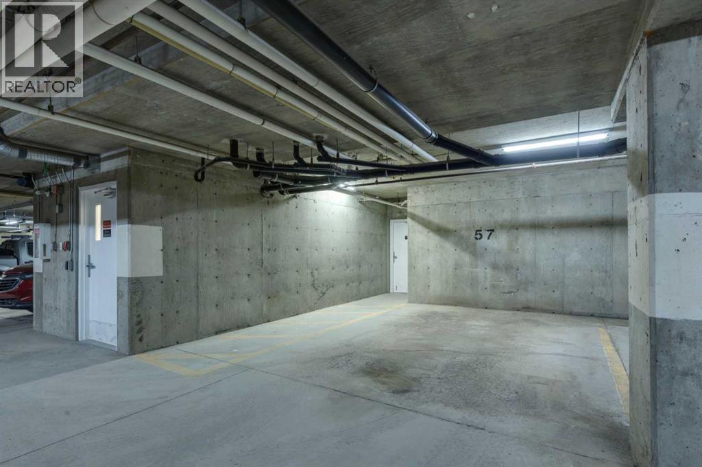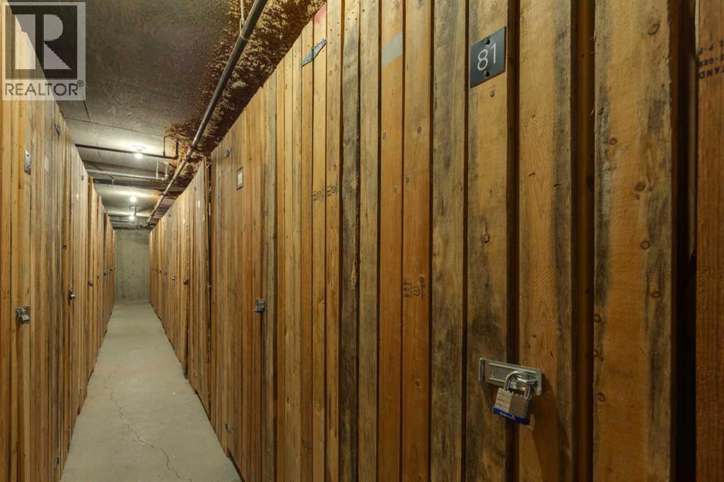 Enjoy stunning downtown views from this well-appointed and affordable 1-bedroom + den apartment, ideally positioned facing green space. The unit offers a functional open-concept layout with a spacious foyer. The den features French doors along with a built-in desk and shelving, making it ideal for a home office or guest space.The kitchen includes ample cabinetry, a full-height tile backsplash, and a pantry/laundry room for added storage and convenience, opening directly into the bright living area with large windows and access to a private balcony complete with a gas BBQ line. The generously sized primary bedroom features a walk-in closet, while the 4-piece bathroom offers a deep tub, full-height tile surround, and great counter space.Heated under-slab flooring runs throughout the entire unit, providing consistent comfort and added value. The well-managed building offers excellent amenities, including resident lounges, a guest suite, bike storage, a workshop, and a landscaped courtyard. This unit also includes titled underground parking with a storage locker conveniently located directly in front. (id:63190)