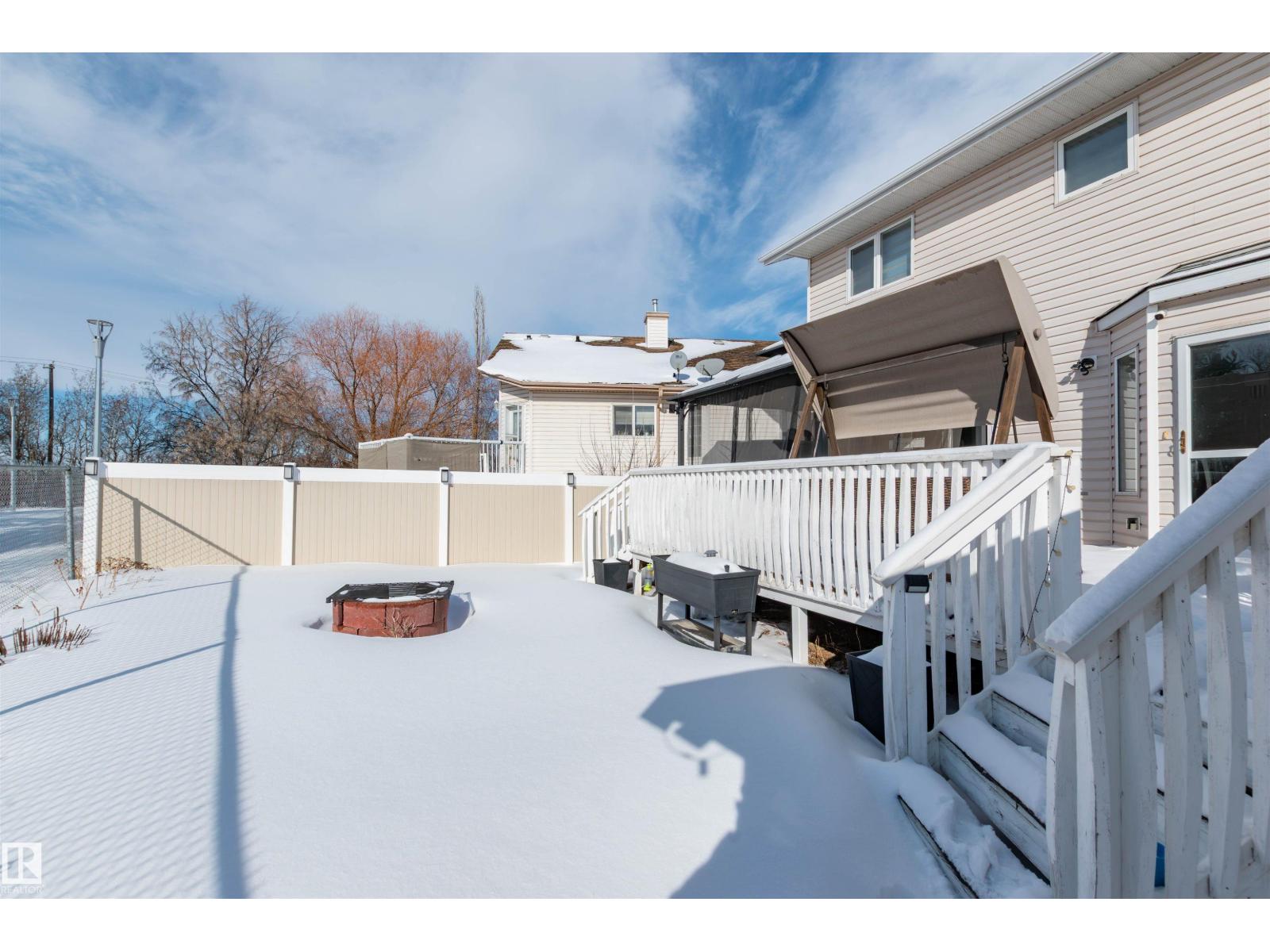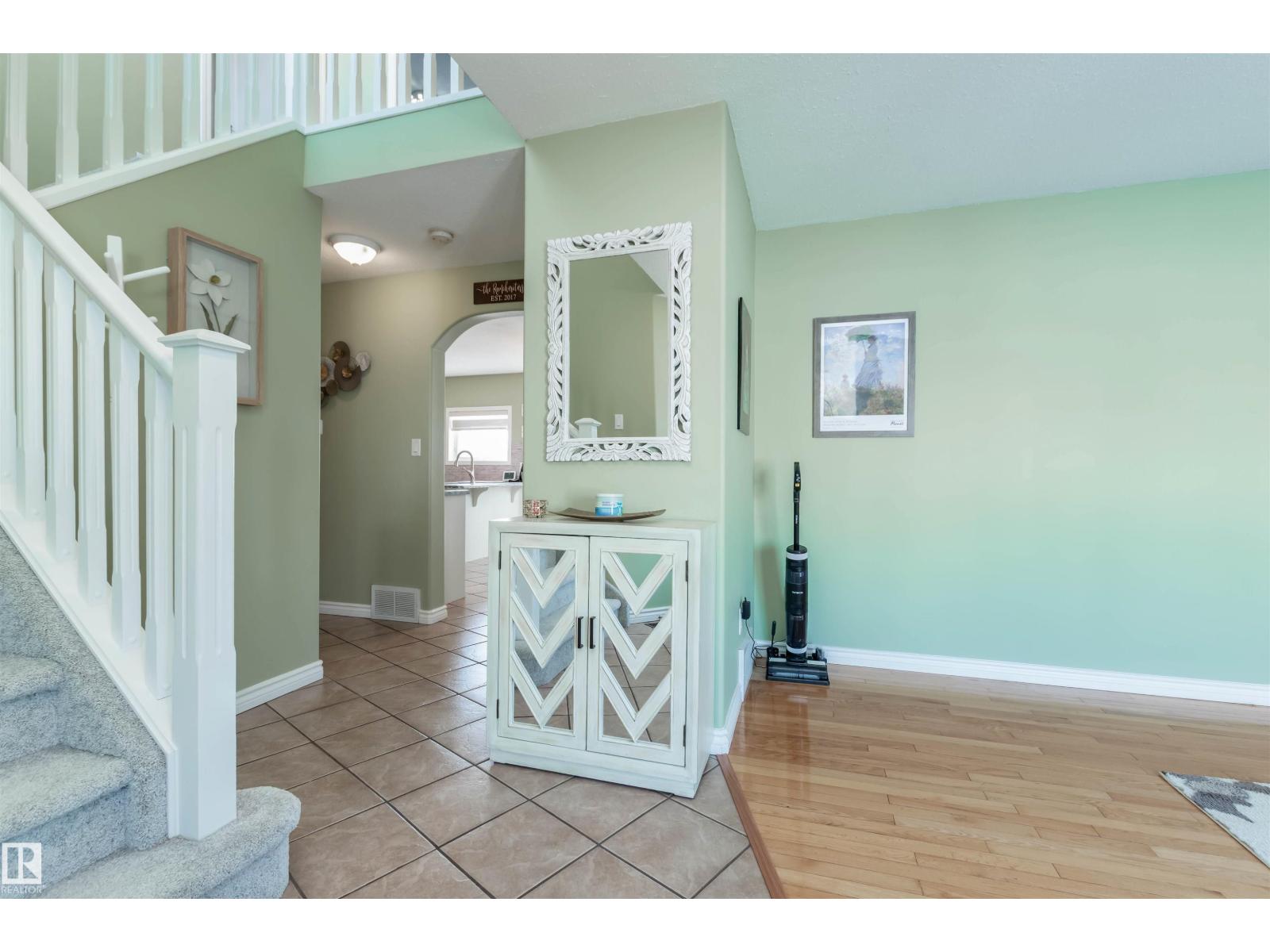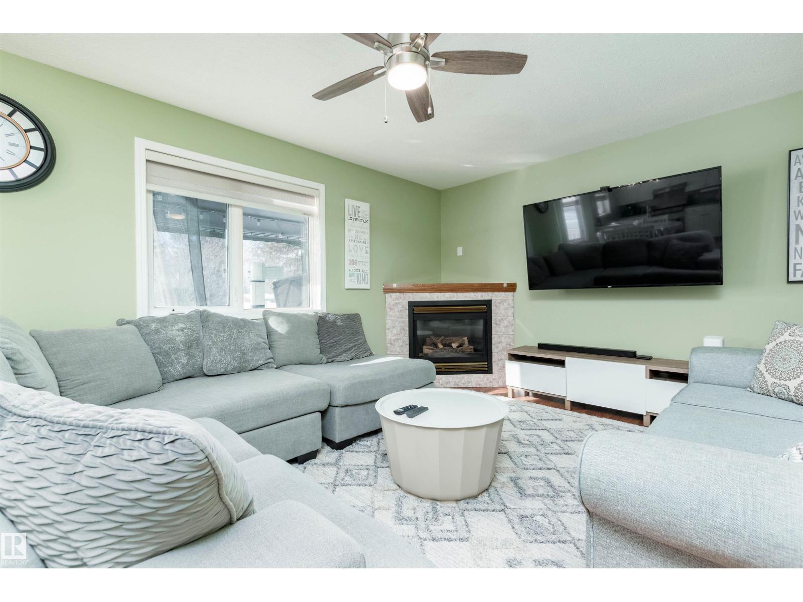 Beautifully maintained & updated!! Spacious 4 bdrm home in a great community! Welcoming enterance, Huge mf flex room. The kitchen offers SS appliances,large pantry,upgraded backsplash and sink.The bright eating nook is the perfect spot for morning coffee and opens to a large deck. LR w/gas fireplace, 2 pce bath and mf laundry complete this level.Upstairs 4 bdrms, 4 pce bath, large primary suite w/WI closet and 4 pce ensuite. New modern fully finished basement includes a large rec room, 5 th bedroom, beautiful 3 pce bath and ample storage. Throughout the house you will find large windows,beautiful hardwood flooring, fresh modern colours,custom blinds and rounded corners,A/C,newer hot water tank and water softner. The large fully(new) fenced backyard hosts a firepit/shed and backs onto a walking path. Located in a cul-de-sac, this is an ideal family home! (id:63190)