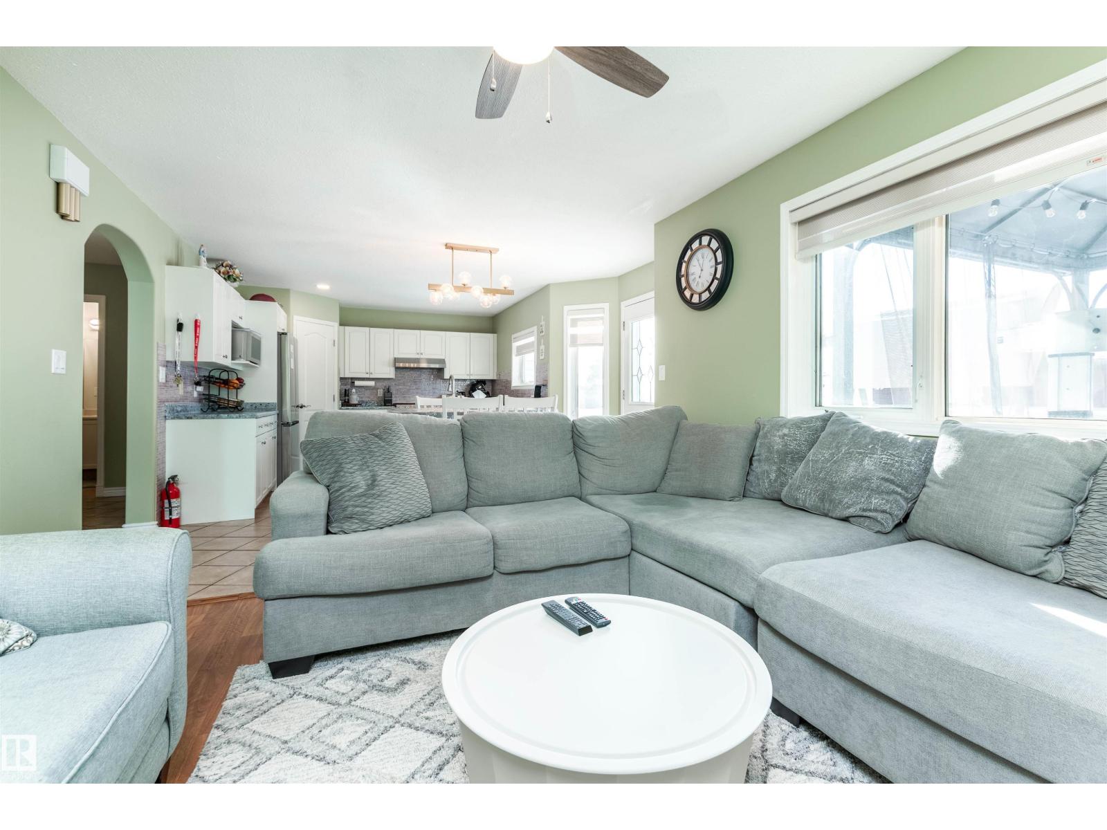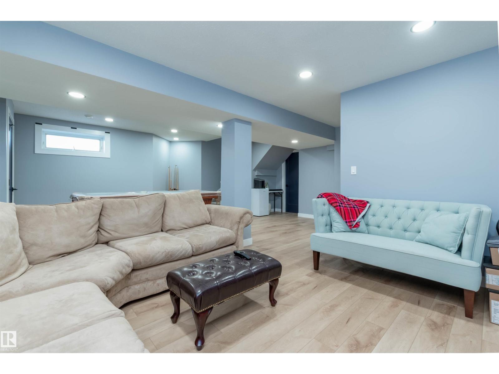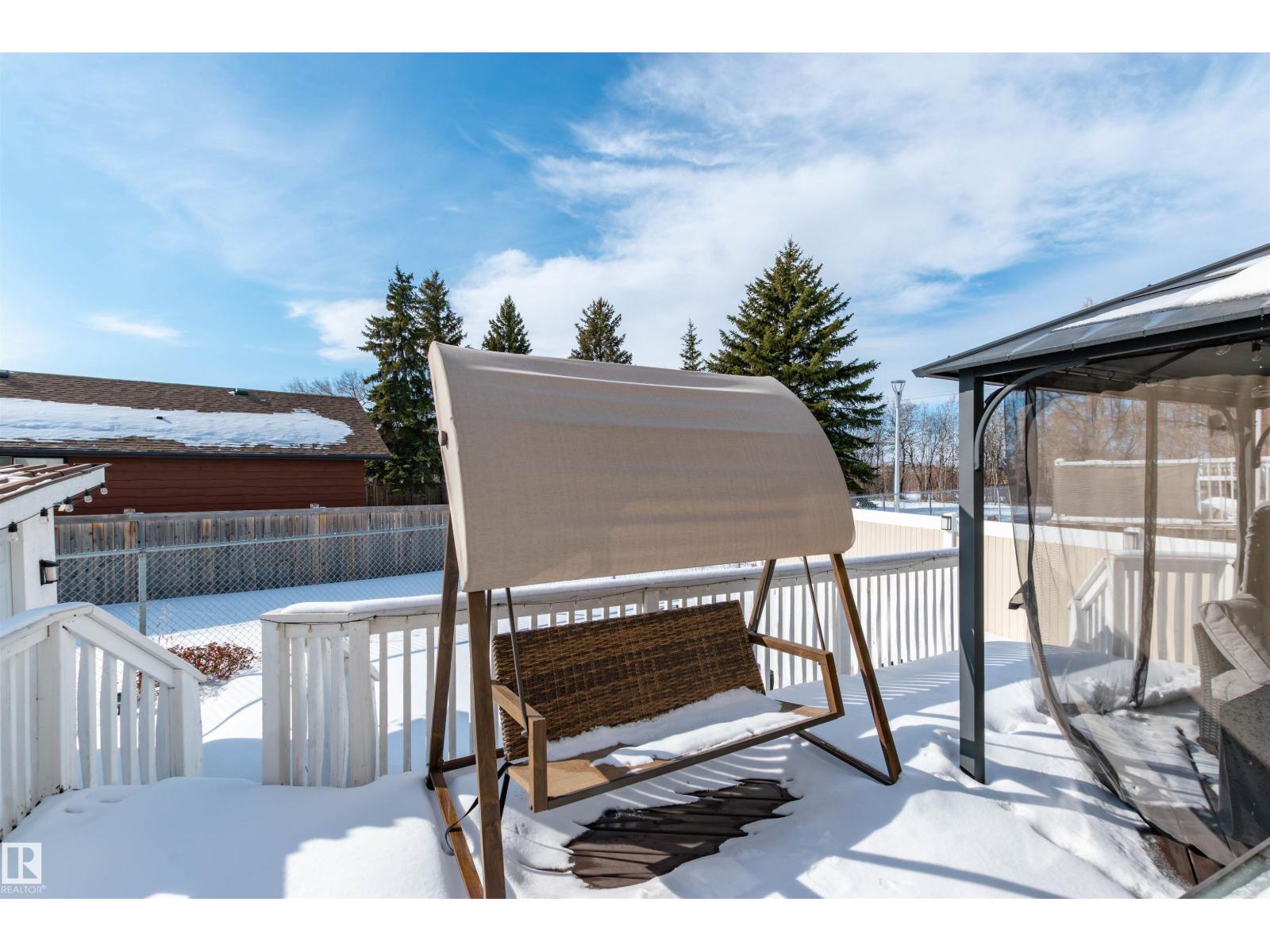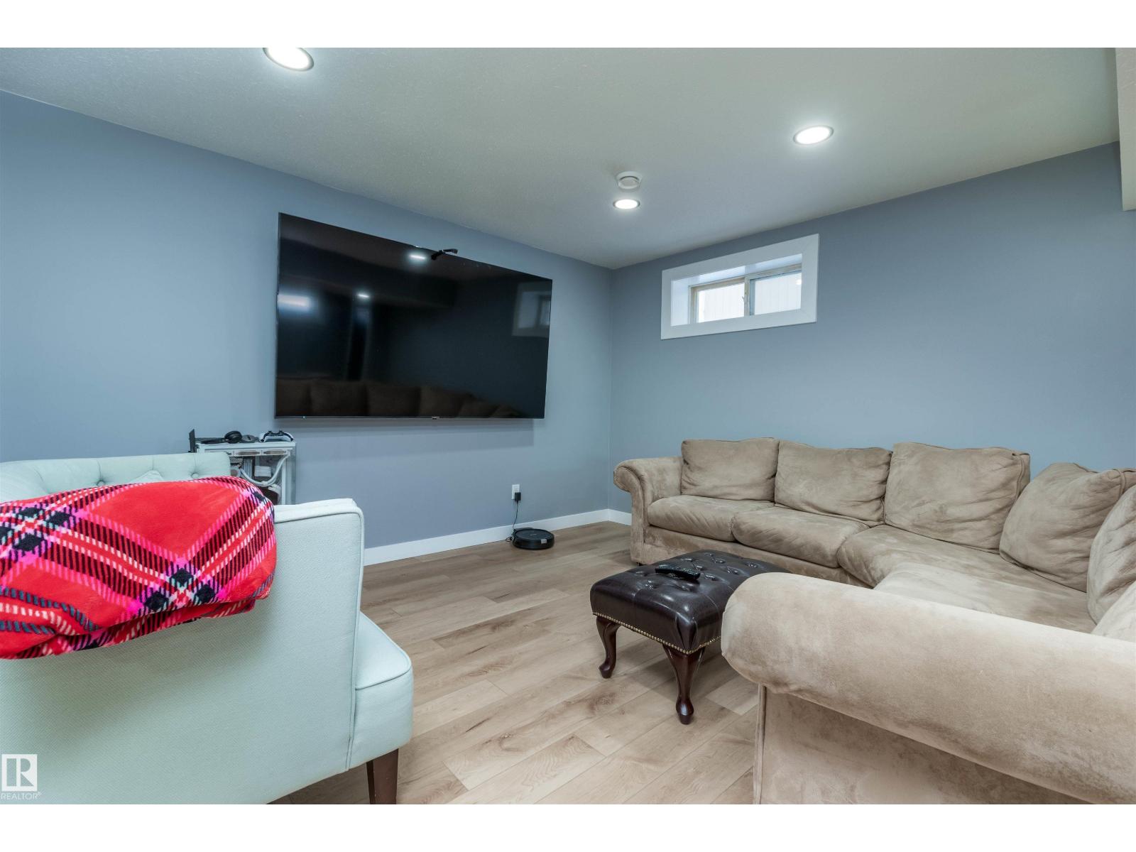 Beautifully maintained & updated!! Spacious 4 bdrm home in a great community! Welcoming enterance, Huge mf flex room. The kitchen offers SS appliances,large pantry,upgraded backsplash and sink.The bright eating nook is the perfect spot for morning coffee and opens to a large deck. LR w/gas fireplace, 2 pce bath and mf laundry complete this level.Upstairs 4 bdrms, 4 pce bath, large primary suite w/WI closet and 4 pce ensuite. New modern fully finished basement includes a large rec room, 5 th bedroom, beautiful 3 pce bath and ample storage. Throughout the house you will find large windows,beautiful hardwood flooring, fresh modern colours,custom blinds and rounded corners,A/C,newer hot water tank and water softner. The large fully(new) fenced backyard hosts a firepit/shed and backs onto a walking path. Located in a cul-de-sac, this is an ideal family home! (id:63190)