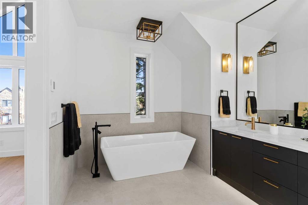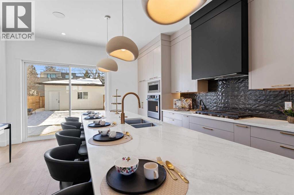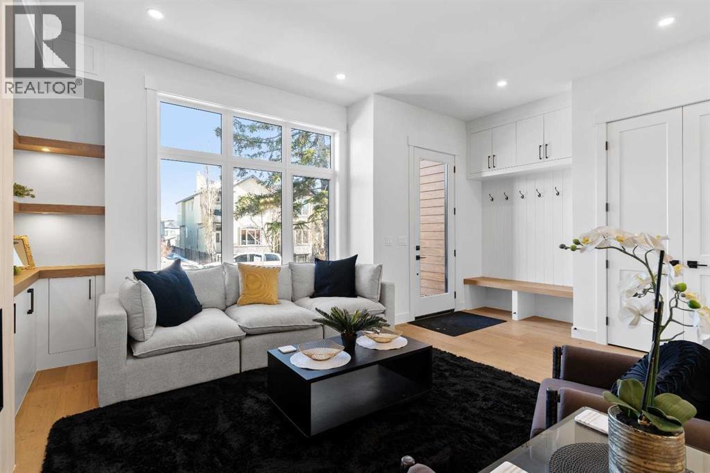 *SHOWSTOPPER ~ WITH A UNIQUE LAYOUT* Welcome to this brand-new, exquisitely designed luxury home located in the highly sought after Killarney inner city area, an exceptional neighbourhood just minutes from downtown Calgary. This stunning residence offers superior finishes and thoughtful features that truly set it apart from the competition. Step into the unique main floor layout and be greeted by an inviting living room to your left, complete with a cozy fireplace and a discreet half bath. The centrally located dining area flows seamlessly into a spacious kitchen at the back, which overlooks a west facing backyard with a raised deck ~ perfect for entertaining or relaxing outdoors. A practical mudroom with a walk~in closet completes the main level, providing ample storage and convenience. Upstairs, the large primary bedroom boasts a vaulted ceiling, private balcony, luxurious ensuite, and generous walk-in closet ~ a true retreat. Two additional secondary bedrooms feature elegant tray ceilings and walk~in closets, complemented by a well~placed upper laundry room for added ease. The fully finished basement offers a legal suite with a central kitchen, two bedrooms positioned on opposite ends for privacy, and a shared living room area. The front bedroom includes a walk~in closet, sharing a modern four ~ piece bathroom. For ultimate comfort, the home is pre~wired with a rough~in for air conditioning and equipped with speakers. This home’s value lies in its exceptional style; stunning curb appeal, high~end finishes, and thoughtfully designed living spaces that elevate everyday living. Don’t miss your chance to own this remarkable and stylish new construction home in the beloved Killarney community. (id:63190)