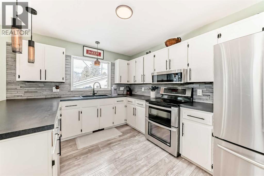 This one checks all the boxes! Older bungalow that has seen numerous updates over the recent years. As you enter you will appreciate the open floor plan with the living, dining and kitchen well laid out for easy entertaining and family time. The wrap around kitchen with eating counter is the ideal set up for a casual meal, homework or visiting with the cook . Large living room with oversized window to the front street is perfect for movie night or maybe having buddies over to watch the game! This level is where you will find 3 of the 5 bedrooms and the master bedroom has a 3 pce ensuite as well as a 4 pce. bathroom to finish off this level. As you head downstairs you have a laundry pair that is handy for the upper level as well this where you find the entrance to the attached garage which is handy for bringing in the groceries or the perfect work shop. Downstairs there is a kitchenette, dinette and living room, 2 good sized bedrooms, storage room/pantry as well as the utility room with another laundry pair. Outside does not disappoint with front and rear decks, a double detached garage, shed and is nicely treed and fenced. This home is updated, tastefully decorated, move in-ready and has a great location. Garage shingles replaced April 2026. (id:63190)