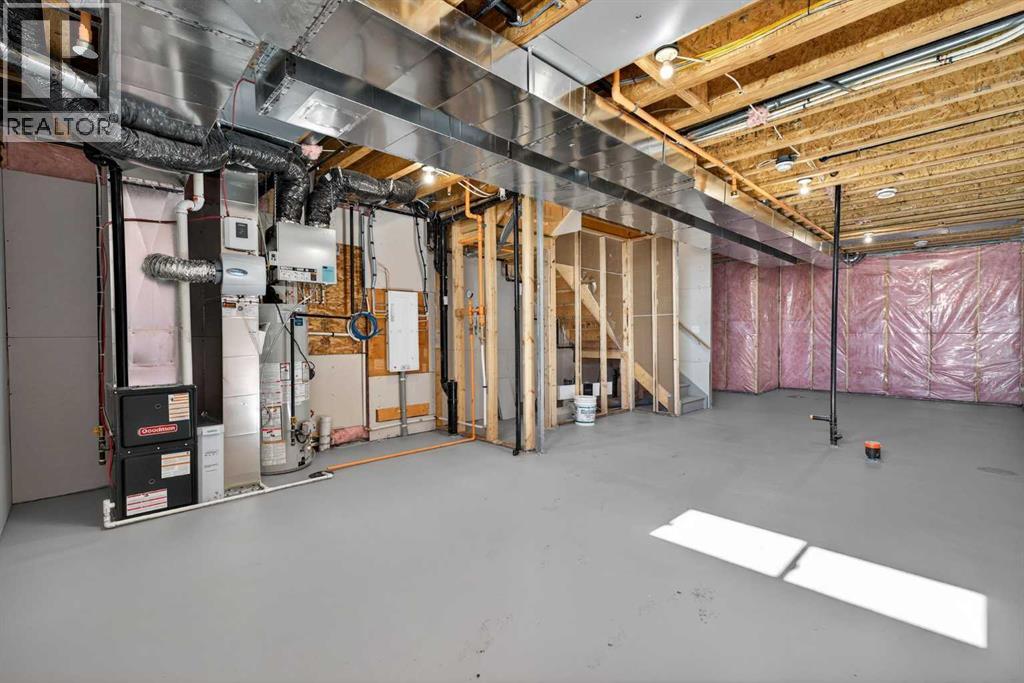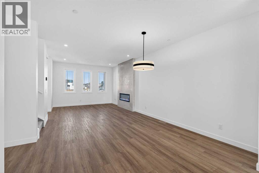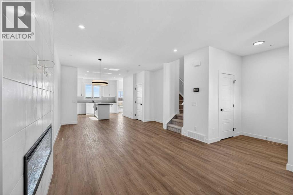 Introducing the Newport III by Broadview Homes, a brand new home in the southeast Calgary community of Hotchkiss. This thoughtfully designed home features an open concept main floor, a central upper loft, and a separate side entrance with basement rough-ins already in place for future development, offering flexibility as your living needs evolve. A large covered front porch creates a welcoming first impression and provides a comfortable outdoor space to enjoy the front of the home, while a rear deck extends the living space outdoors. The main level is designed for both functionality and everyday comfort. The kitchen is positioned at the rear of the home and features a central island, generous cabinetry, and a full stainless steel appliance package including a gas range, fridge, dishwasher, built in microwave, and hood fan. The kitchen flows seamlessly into the dining area and great room, creating a bright and connected living space ideal for entertaining or daily living. The great room is anchored by an electric fireplace with floor to ceiling tile, creating a striking focal point and adding warmth to the main living area, while the adjacent dining area offers easy access to the rear deck. A convenient powder room completes the main floor. Upstairs, a centrally located loft provides additional living space that can function as a second lounge, home office, or study area. Two secondary bedrooms, a full bathroom, and a dedicated upper floor laundry area add everyday convenience. The primary suite offers a walk in closet and a private ensuite with dual vanities, creating a comfortable and functional retreat. The basement is accessed directly from the side entrance and includes rough-ins already installed for future development, offering excellent potential to expand the living space over time. Located in the growing community of Hotchkiss, residents enjoy access to scenic pathways, expansive green space, and a planned 30 acre wetland that anchors the neighbourhood. Wit h convenient access to Stoney Trail, residents are minutes from Seton’s shopping district, the YMCA, South Health Campus, and a wide range of amenities. This Newport III offers modern design, flexible living space, and strong long term value in one of southeast Calgary’s newest master planned communities. (id:63190)