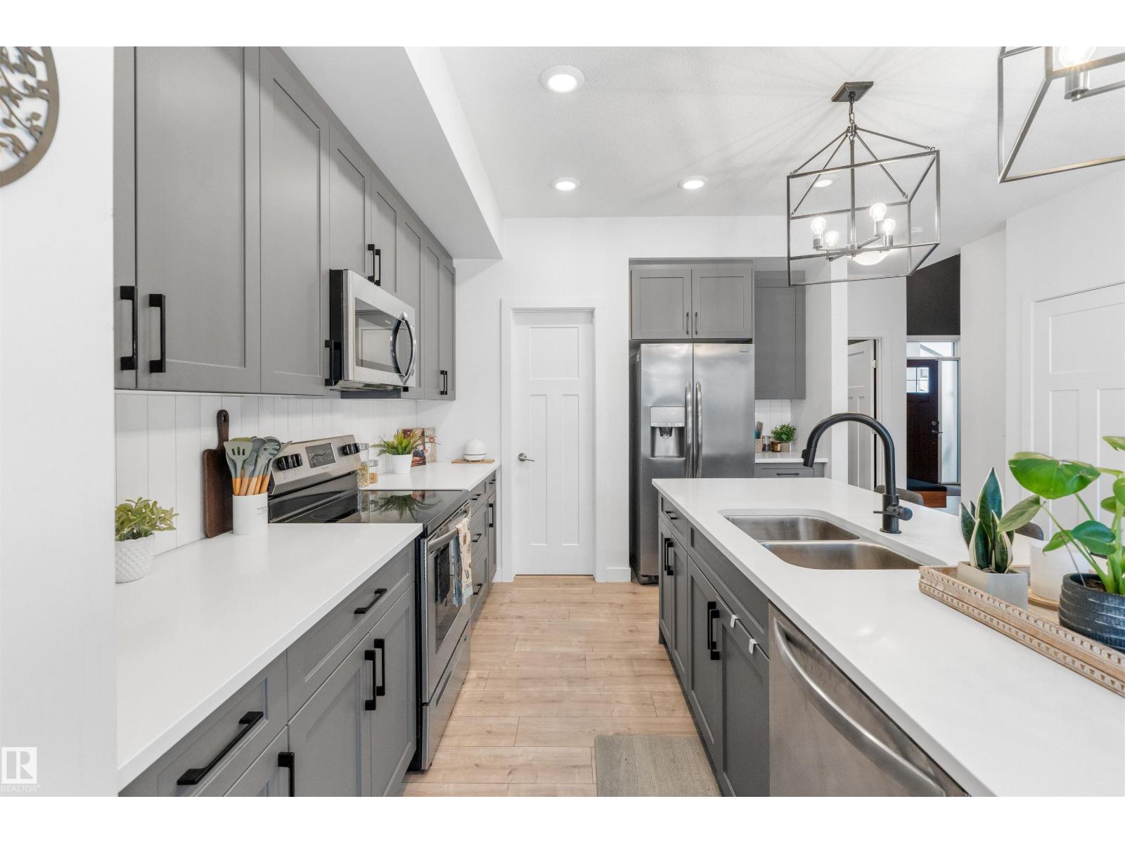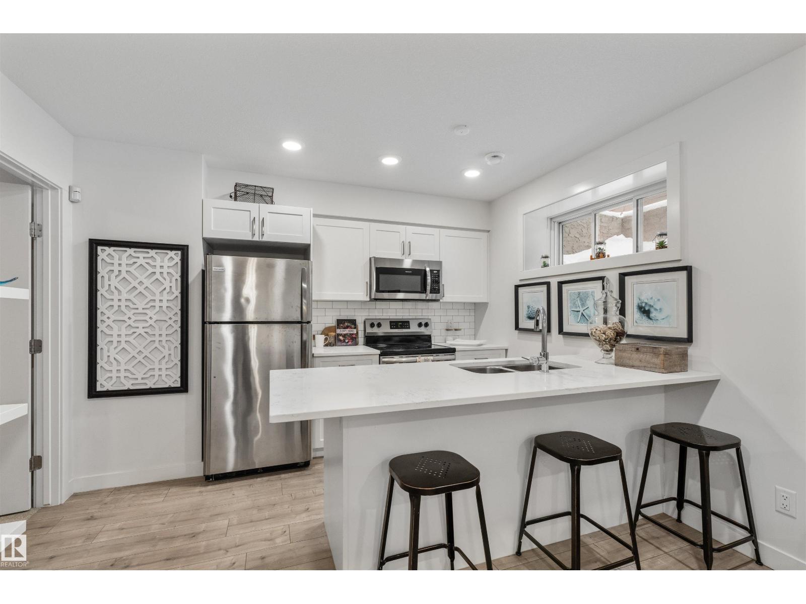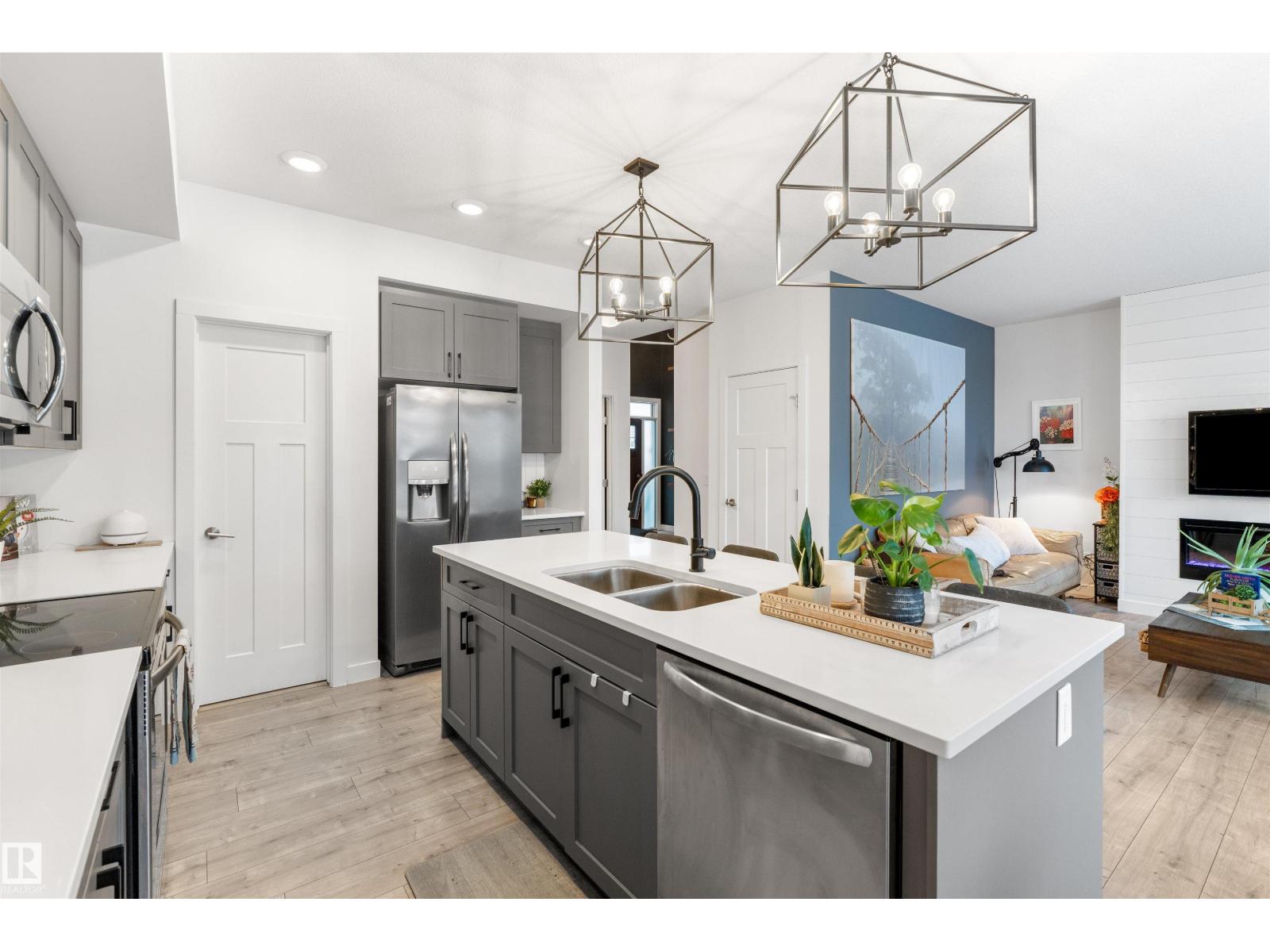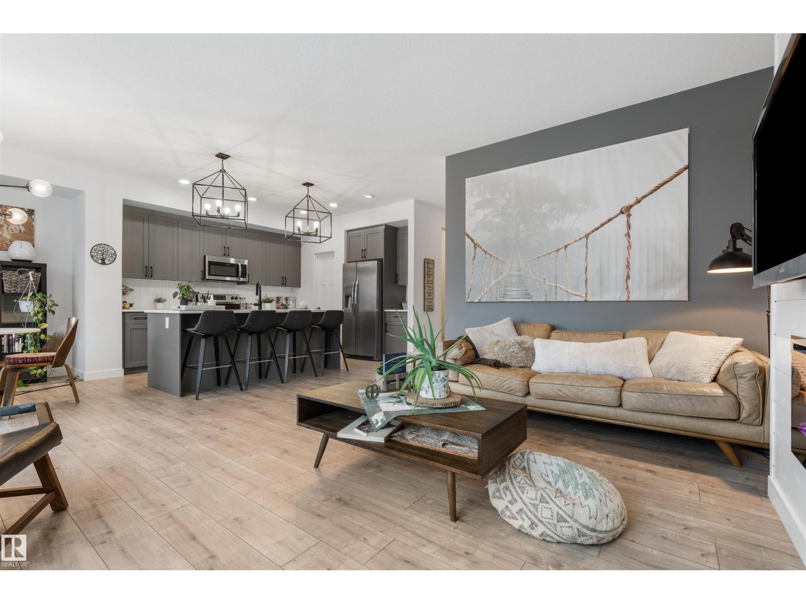 Stunning former, custom Sarasota Sandkey showhome offering 4 beds, 4 baths, and a LEGALLY SUITED basement with private garage access. A dramatic open-to-above foyer welcomes you into an elegant open-concept design adorned with striking architectural details. The GOURMET kitchen showcases QUARTZ countertops, sleek cabinetry, and stainless steel appliances, flowing seamlessly into a sun-filled great room anchored by a cozy gas fireplace. OVERSIZED windows and patio doors lead to a private yard—perfect for relaxing or entertaining. Upstairs features a versatile bonus room, full bath, laundry, and three generous bedrooms, including a serene primary retreat with walk-in closet and spa-inspired ensuite. The professionally finished basement suite includes its own great room, kitchen, bedroom, bath, and laundry—ideal for extended family or INCOME POTENTIAL Located in one of St. Albert’s trendiest new neighbourhoods, just steps from BEACH ACCESS, parks, schools, and shops. Luxury, and lifetstyle. (id:63190)