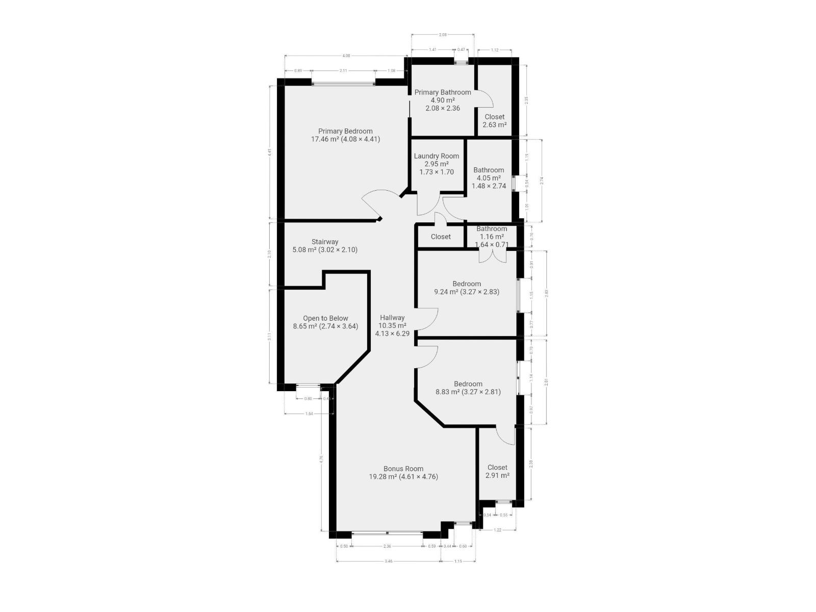 | Bedroom 3 | Upper Level | 2.81 x 3.28 | — |