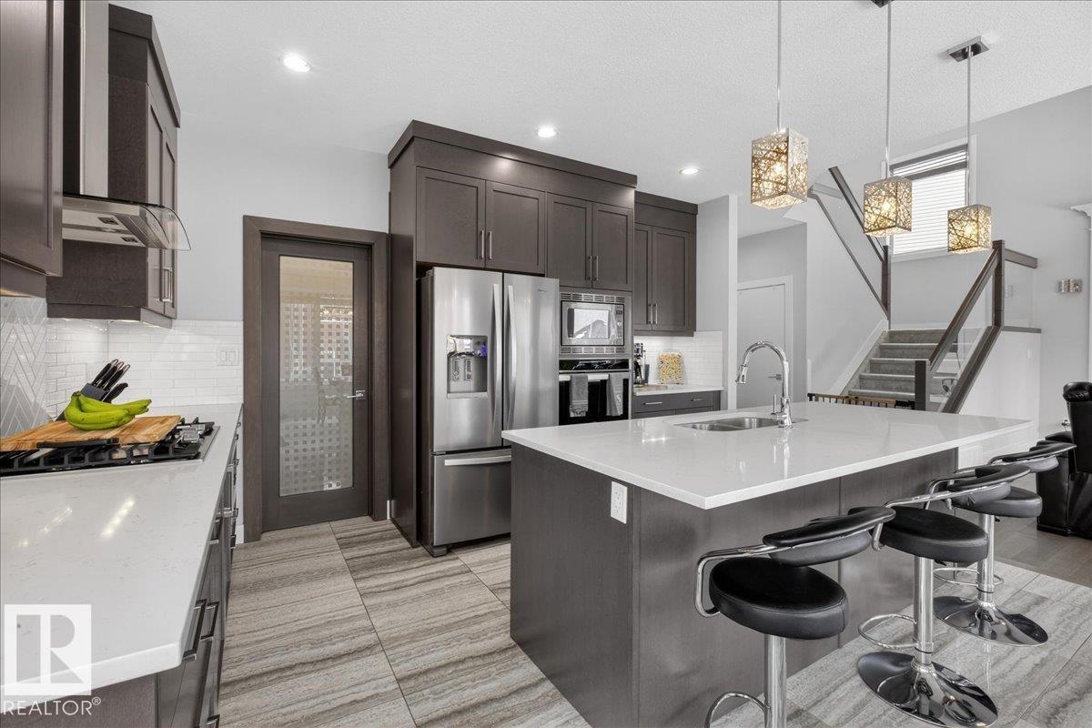 This 2 story in the desirable Montrose is sure to impress. Home features many windows, office right at the entrance, huge mud room by garage entrance with custom shelving with ample storage, butler style pantry. Kitchen has a large quartz island, built in microwave & oven. Counter top Gas stove, Ceiling high cabinets. dining area is right off the kitchen and open to the living room w/ gas fireplace and 18ft ceiling. Second level has a large family area open to main level, great for entertaining! Two good sized Bedrooms (one with a walk in closet) another full bath. Master suite has an amazing ensuite w/ jaccuzzi tub, stand alone shower, jack & jill sinks, large walk in closet w/custom shelving. Basement has a roughed in bath ready for you to finish! Hard to come by massive FOUR car HEATED garage. Additional off street parking. Situated on a large pie shaped lot, with a fully fenced backyard and a two tier deck, stamped concrete side walkway and storage. This is one you don't want to miss! (id:63190)