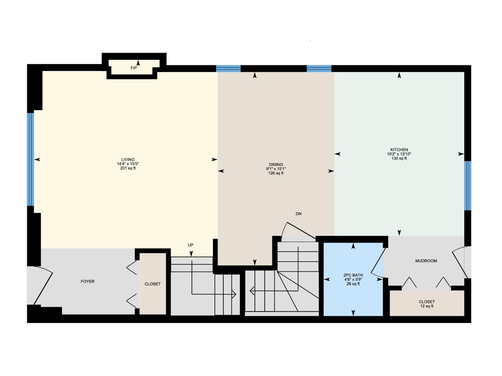 | Living room | Main level | 14'4 x 15'5 | — |