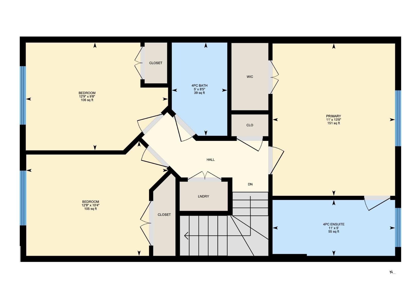 | Primary Bedroom | Upper Level | 11' x 13'8 | — |