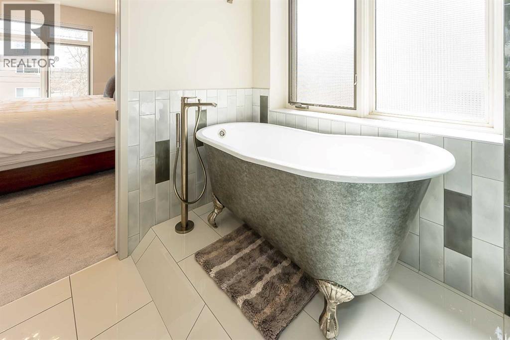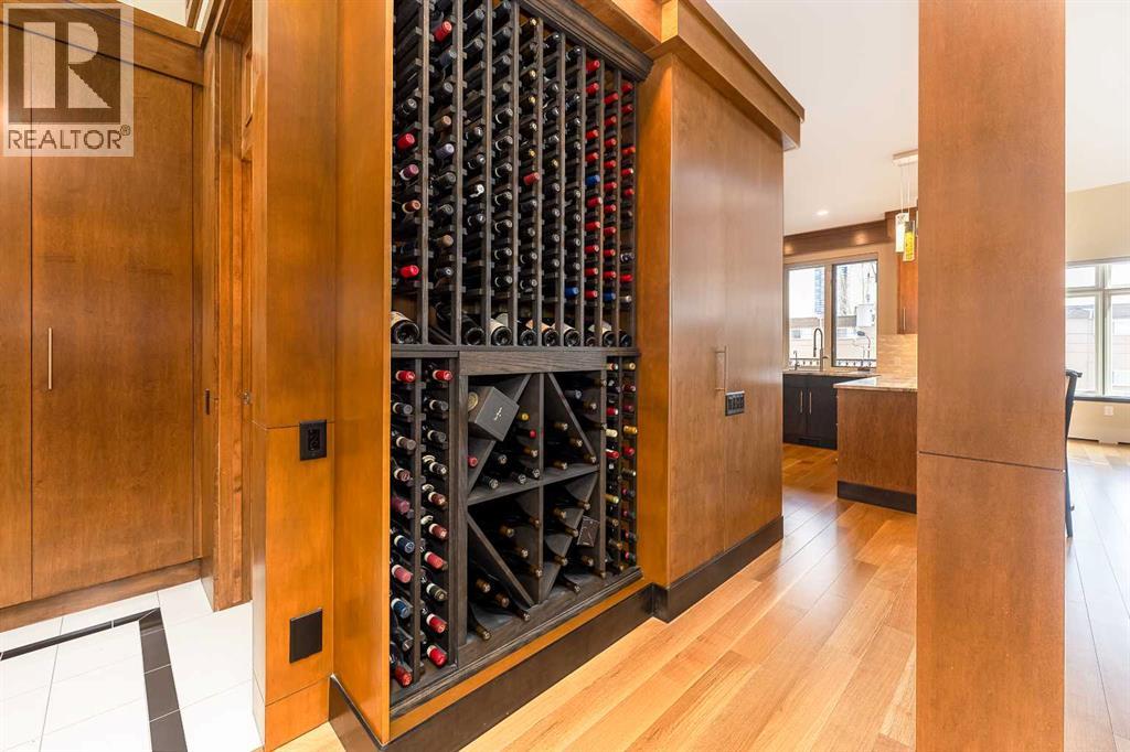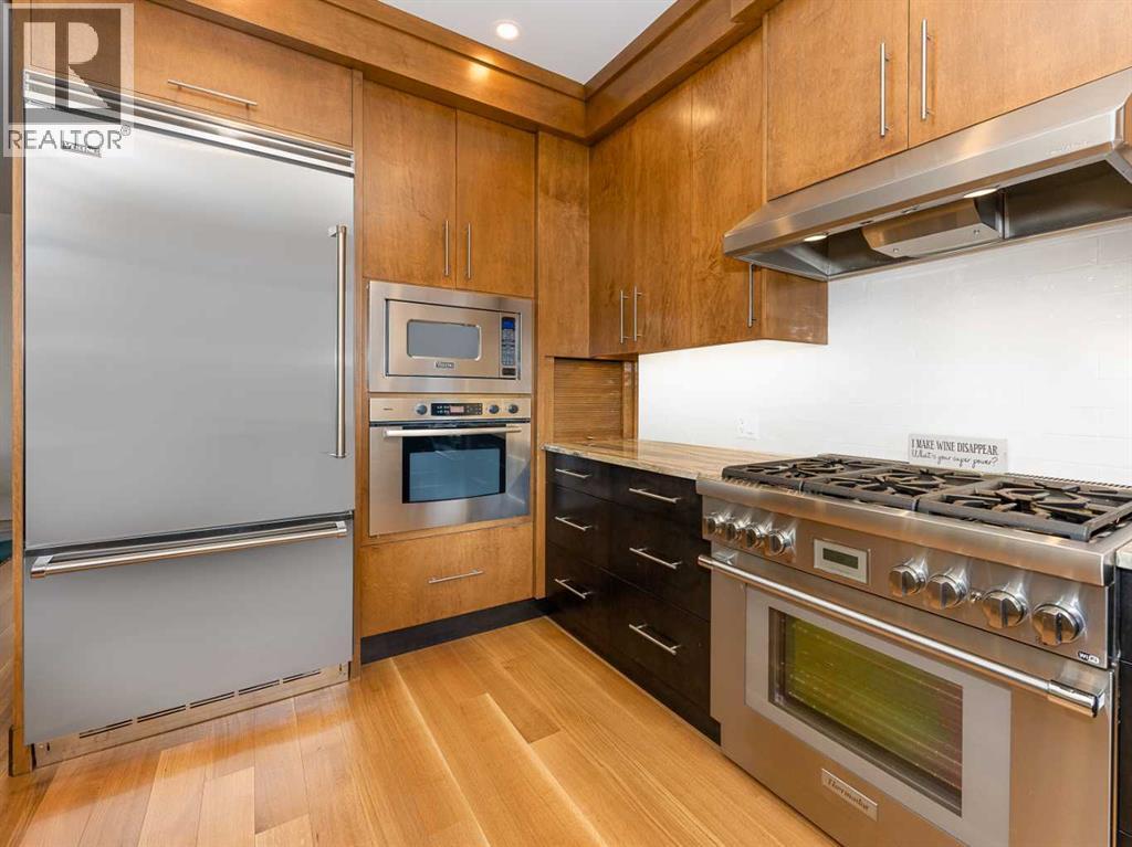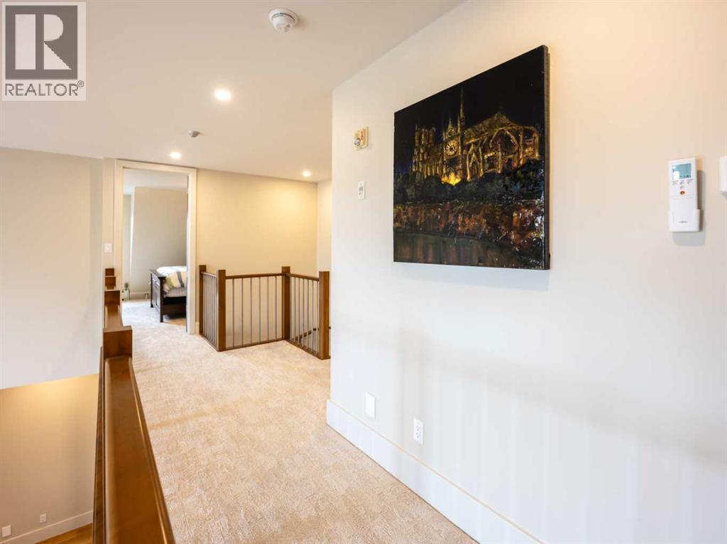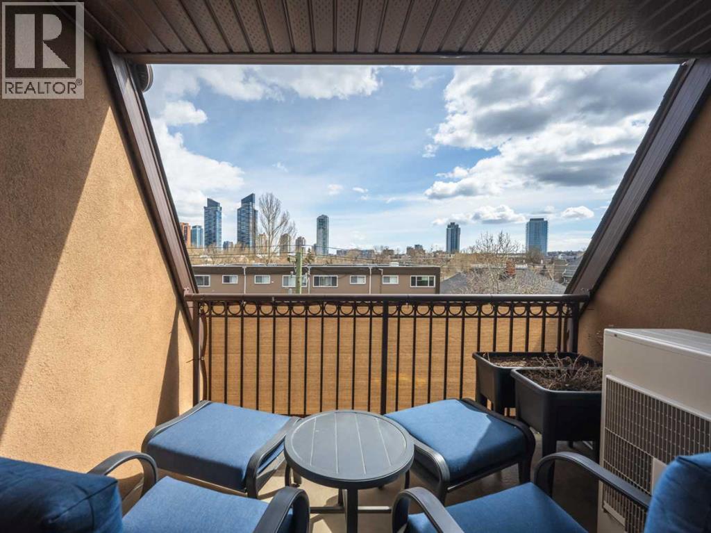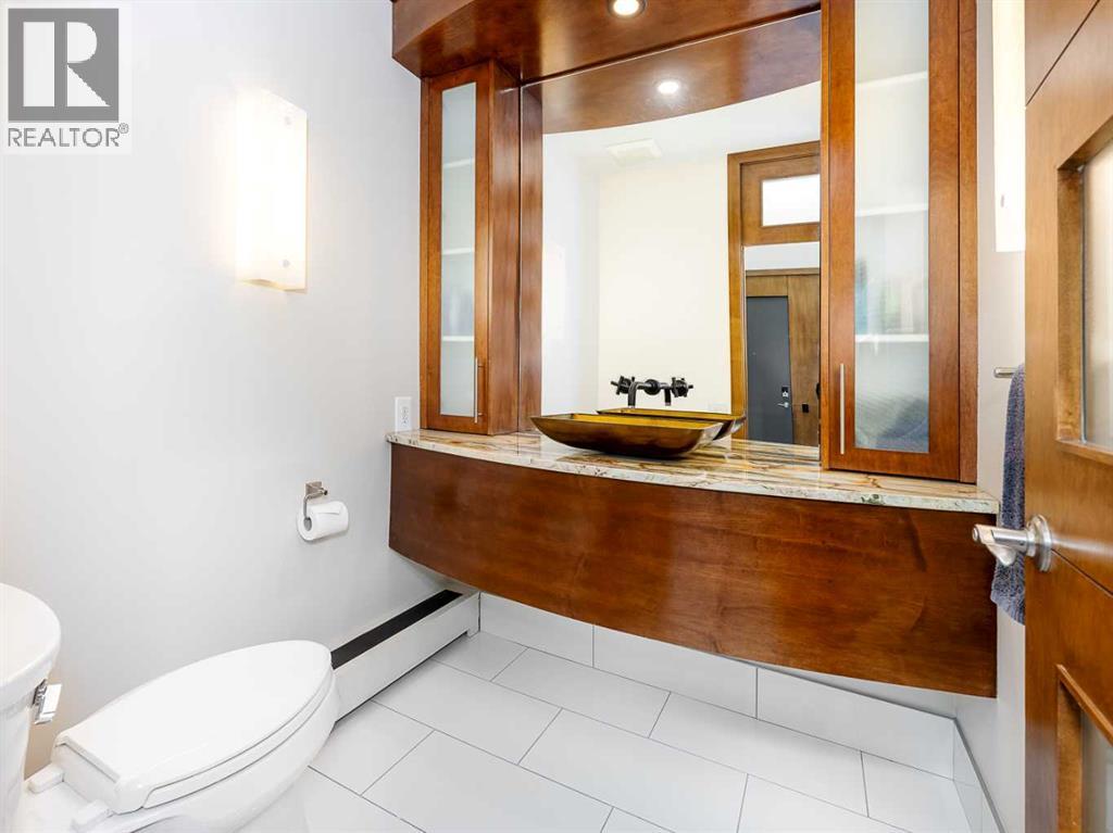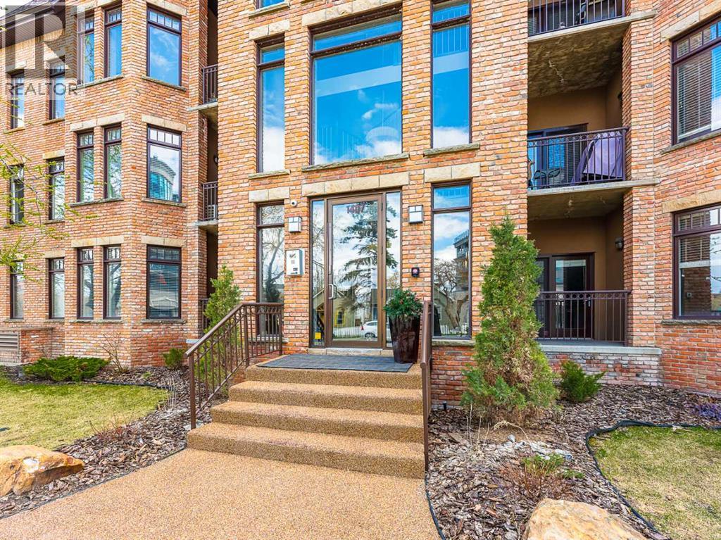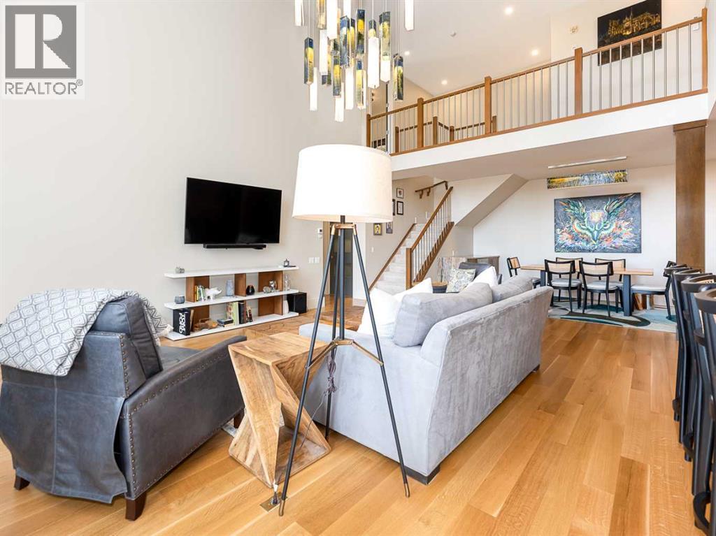 Luxury and sophistication converge in this meticulously renovated penthouse in the heart of Hillhurst. Just steps from Kensington’s vibrant shops and restaurants, the Bow River pathways, and the downtown core, this exceptional residence offers an elevated urban lifestyle. Situated in the boutique 12-unit Villagio building, constructed with superior ICF for outstanding soundproofing and energy efficiency, the home features a semi-private elevator that opens directly to the unit’s entrance. A grand foyer with soaring ceilings and an overhead skylight sets the tone as you enter this impressive two-level residence. The open-concept design is highlighted by dramatic 18-foot ceilings and a stunning south-facing wall of windows that fills the space with natural light. The central living room showcases a custom stone gas fireplace and a striking imported 120-piece hand-blown glass chandelier. Patio doors lead to one of two south-facing outdoor spaces, ideal for relaxing or entertaining. The chef’s kitchen is a true showpiece, featuring premium appliances including a Thermador dual-fuel gas range, Sapphire dishwasher, Viking refrigerator, and built-in microwave. Hand-selected quartzite countertops complement the space, while imported custom light fixtures add refined character. Adjacent to the kitchen, the dining area features a custom wine display with oak racking and a built-in buffet complete with a wine fridge and quartzite counters. A distinctive custom light fixture adds warmth and elegance to the space. The main-level primary retreat offers built-in cabinetry and a luxurious spa-inspired ensuite with dual sinks, Hansgrohe fixtures, quartzite countertops, a steam shower, and a custom cast-iron slipper tub. The suite is completed by a spacious walk-in closet. A powder room and convenient laundry area complete the main floor. The upper level features a second bedroom with access to a large in-suite storage room, a three-piece bathroom, and a versatile flex space ideal fo r a home office. A catwalk overlooking the living area below leads to patio doors that open onto the second south-facing patio, creating another private outdoor retreat. Extensive renovations throughout the home include new quarter-sawn engineered oak flooring on the main level, newer carpeting upstairs, modern railings overlooking the living room, fresh paint, and new remote-controlled window coverings. Comfort is enhanced by a newly installed Fujitsu mini-split four-zone inverter system, providing flexible climate control with independent heating, cooling, or fan settings for individual areas. The unit also includes two titled parking stalls, both generously sized to accommodate a full-size truck. This remarkable penthouse must be experienced in person to be fully appreciated. (id:63190)