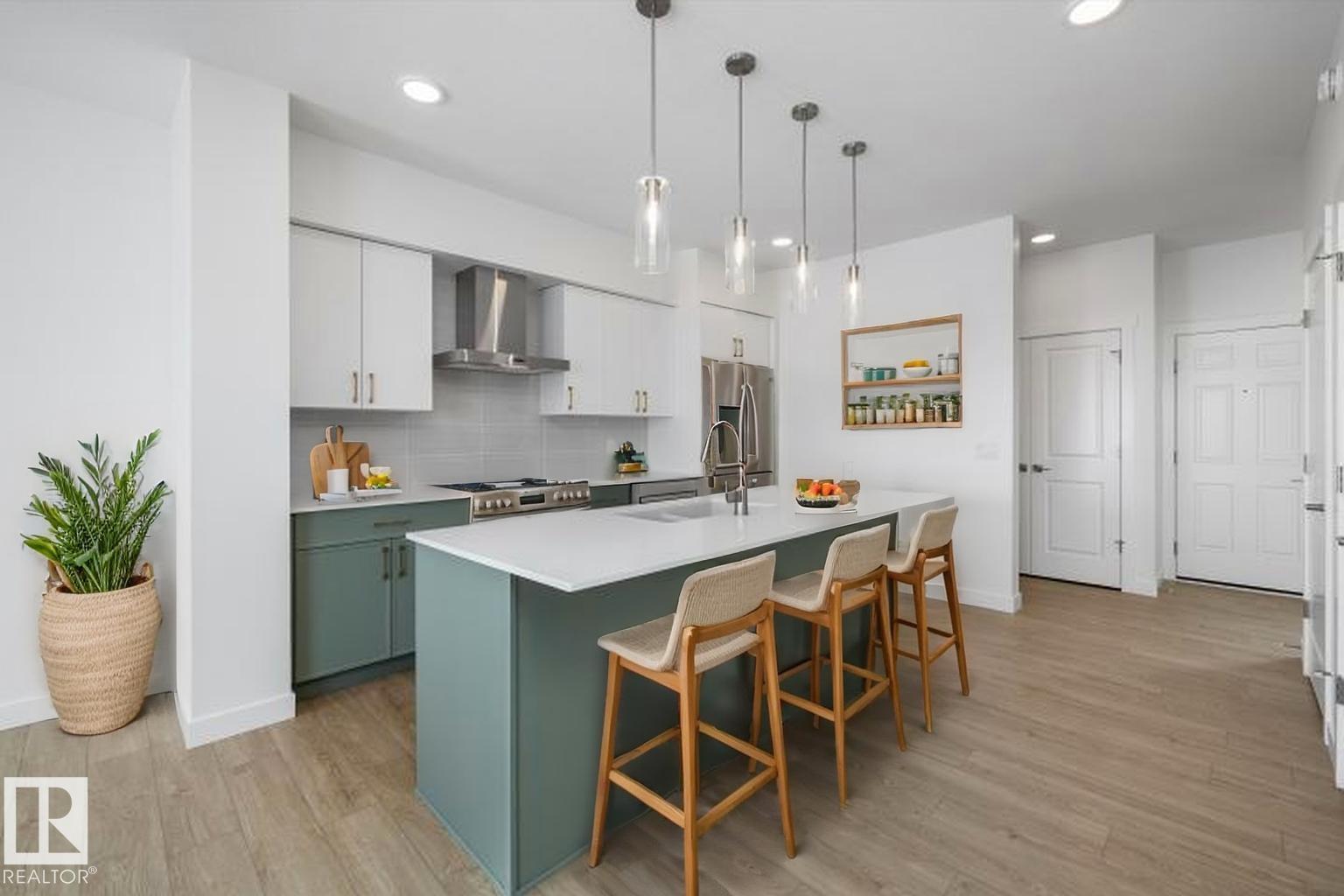 Built by Sterling Homes, this inviting duplex in SouthCreek delivers a relaxed lifestyle with bright, thoughtfully planned living spaces throughout. Triple pane windows and 9’ ceilings create an airy main floor where the foyer opens into a spacious living area ideal for everyday family life. The kitchen is beautifully finished with quartz countertops, a central island, upgraded cabinetry, chimney hood fan, built-in microwave, and a full-height tile backsplash—blending style and function with everything within easy reach. Expansive rear windows and a sliding patio door flood the great room and dining area with natural light while offering views of your future backyard deck. Upstairs, the primary suite serves as a peaceful retreat with a walk-in closet and private ensuite featuring double sinks and a tub/shower combo. Two additional bedrooms, a full bath, upper laundry, and a versatile bonus room complete this comfortable, family-friendly home. (id:63190)
