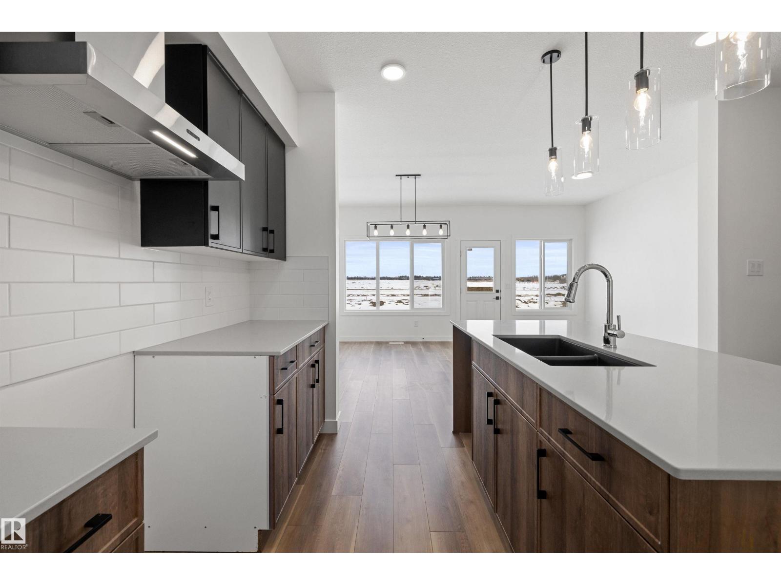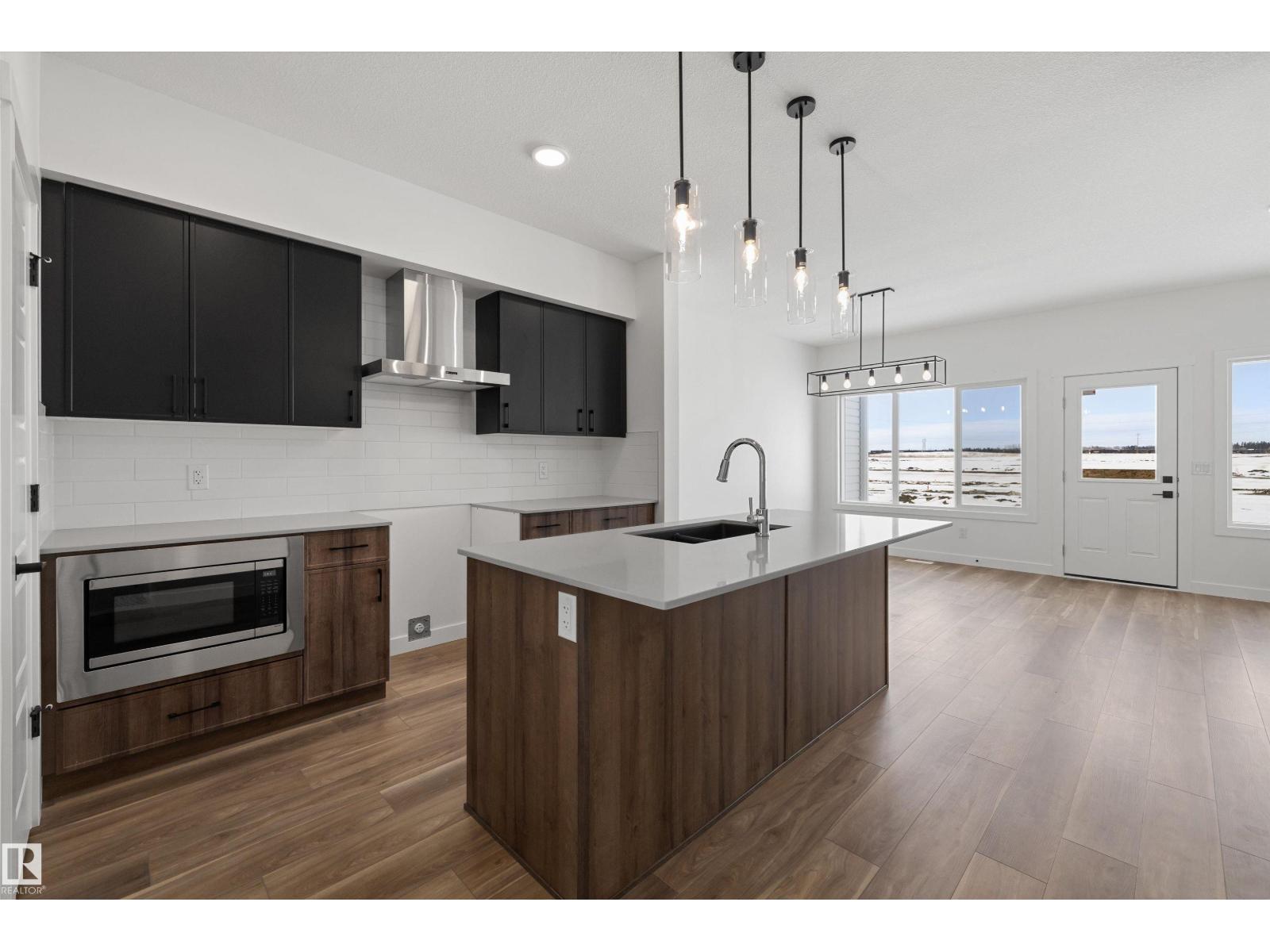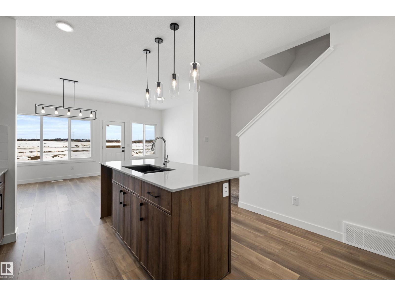 Built by Sterling Homes, this welcoming duplex in SouthCreek offers a relaxed lifestyle with bright, thoughtfully designed living spaces throughout. Triple pane windows and 9’ ceilings enhance the open main floor, where the foyer flows seamlessly into a spacious living area perfect for everyday family life. The kitchen is beautifully finished with quartz countertops, a central island, upgraded cabinetry, chimney hood fan, built-in microwave, and a full-height tile backsplash—combining style and convenience. Large rear windows and a sliding patio door fill the great room and dining area with natural light while providing views of your future backyard deck. Upstairs, the primary suite offers a peaceful retreat with a walk-in closet and private ensuite featuring double sinks and a tub/shower combo. Two additional bedrooms, a full bath, upper-floor laundry, and a versatile bonus room complete this functional layout. With luxury vinyl plank flooring, upgraded railings, side entrance, double attached garage wi (id:63190)