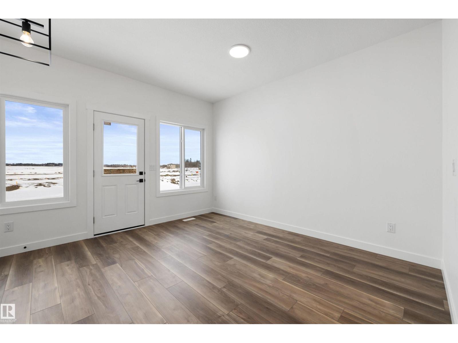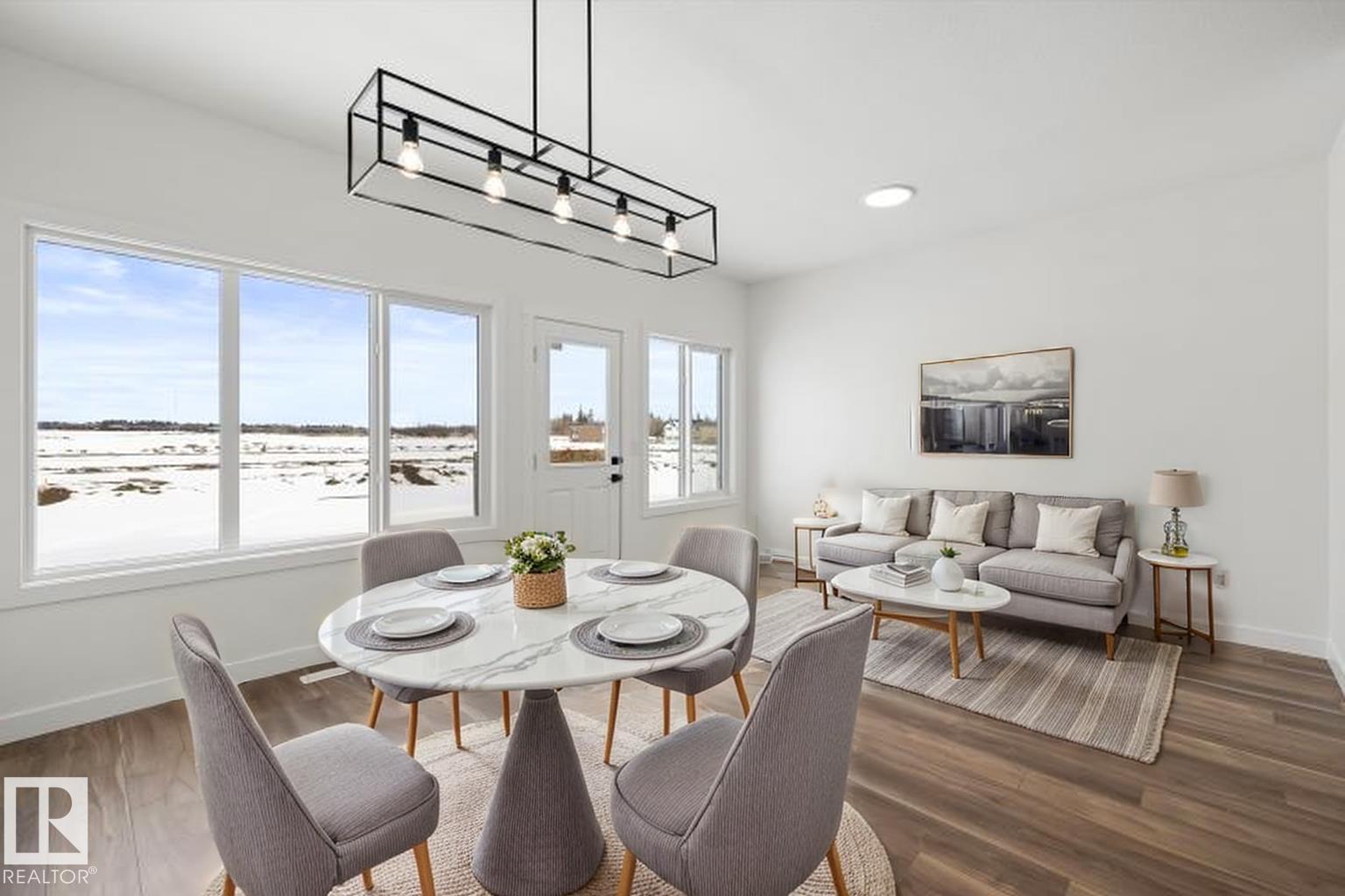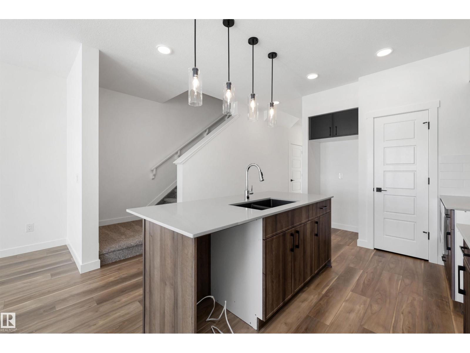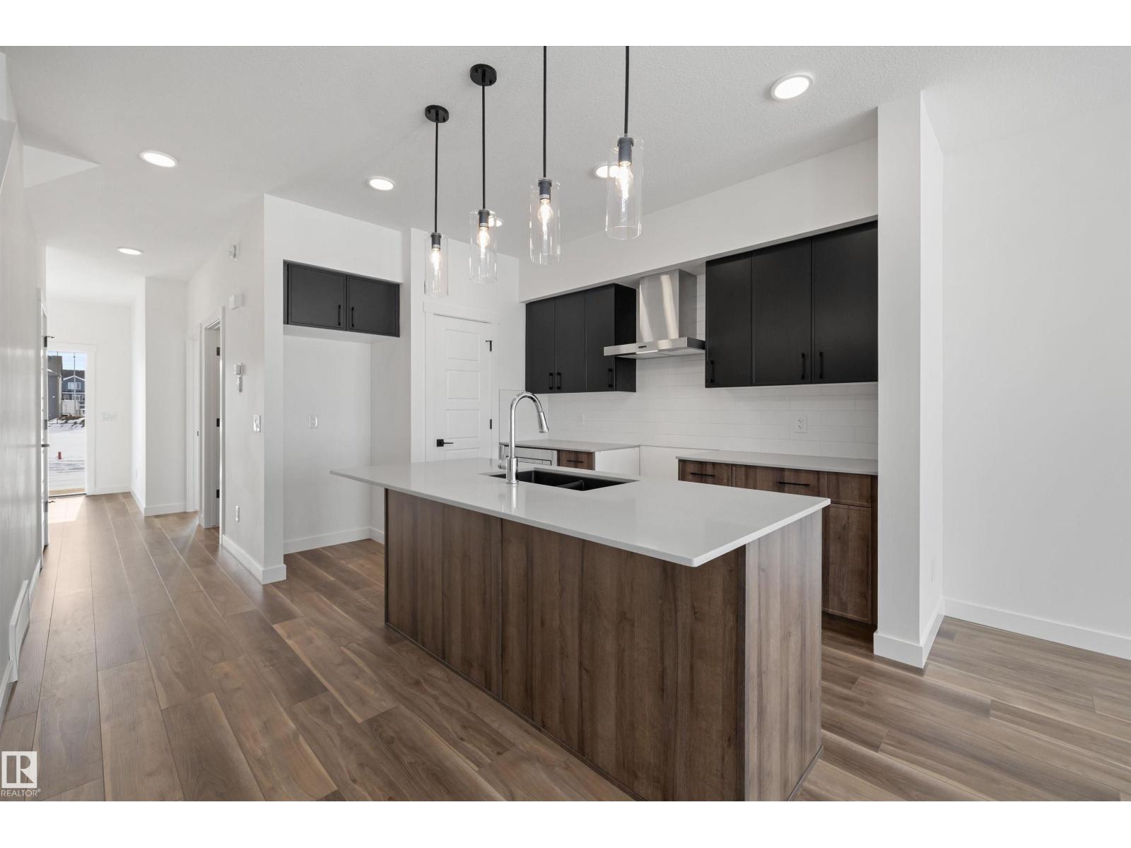 Built by Sterling Homes, this welcoming duplex in SouthCreek offers a relaxed lifestyle with bright, thoughtfully designed living spaces throughout. Triple pane windows and 9’ ceilings enhance the open main floor, where the foyer flows seamlessly into a spacious living area perfect for everyday family life. The kitchen is beautifully finished with quartz countertops, a central island, upgraded cabinetry, chimney hood fan, built-in microwave, and a full-height tile backsplash—combining style and convenience. Large rear windows and a sliding patio door fill the great room and dining area with natural light while providing views of your future backyard deck. Upstairs, the primary suite offers a peaceful retreat with a walk-in closet and private ensuite featuring double sinks and a tub/shower combo. Two additional bedrooms, a full bath, upper-floor laundry, and a versatile bonus room complete this functional layout. With luxury vinyl plank flooring, upgraded railings, side entrance, double attached garage wi (id:63190)