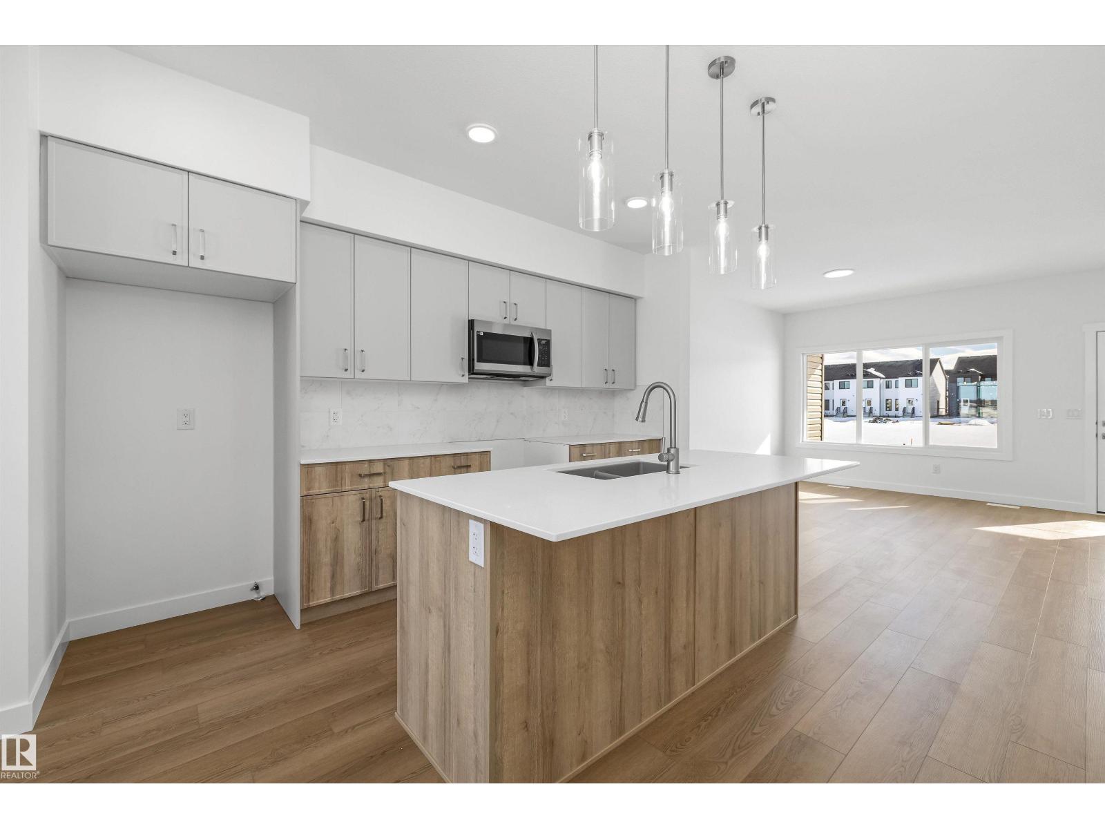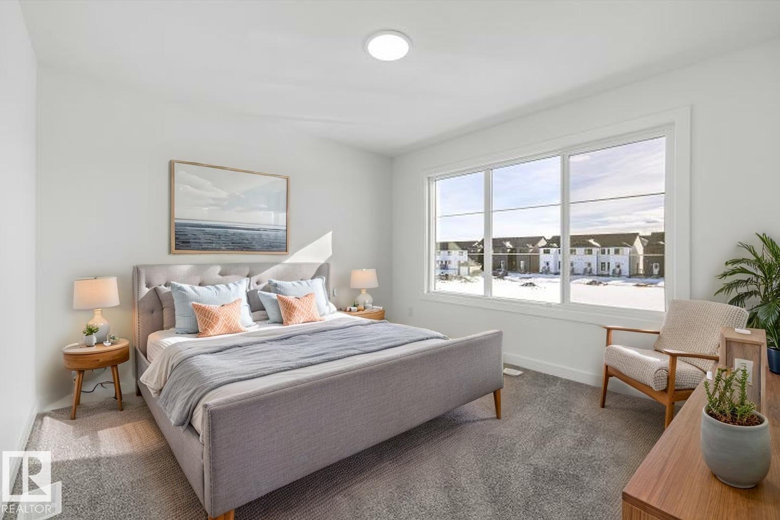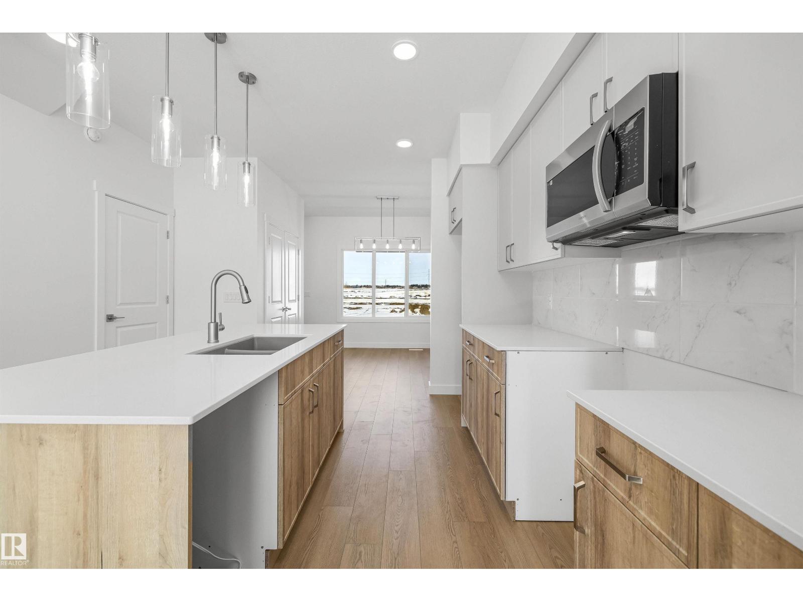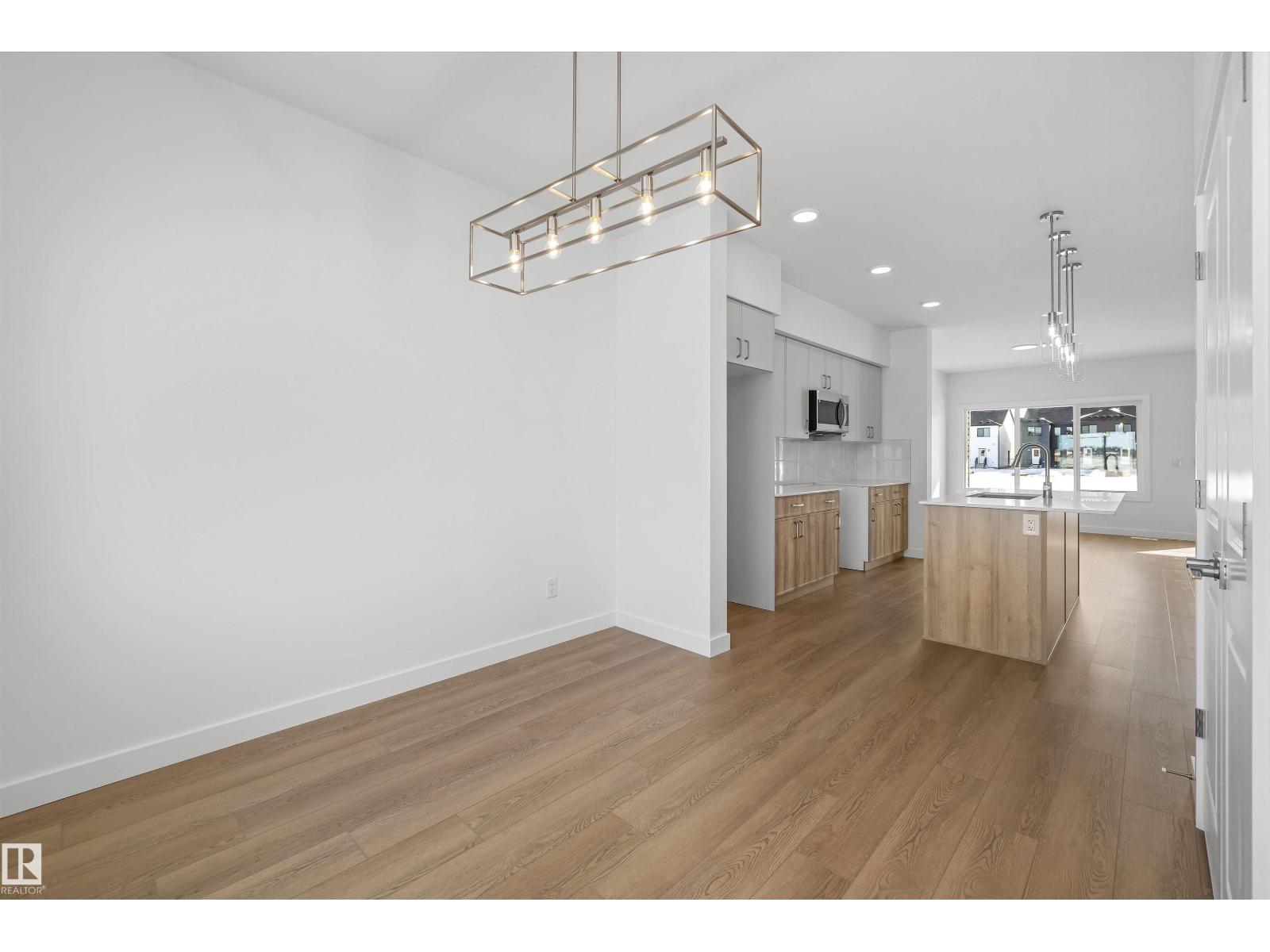 Built by Sterling Homes, this inviting laned home in McConachie is a wonderful opportunity for first-time buyers or young families seeking a bright, comfortable space to grow. Triple pane windows and 9’ ceilings enhance the open main floor, beginning with a cozy front living room filled with natural light. The kitchen is designed for everyday living, featuring quartz countertops, a central island for casual meals, generous cabinetry, and a spacious pantry to keep everything organized. The dining area overlooks the backyard, creating a welcoming setting for family dinners and relaxed weekend brunches. Upstairs, a versatile open loft offers flexible space for playtime, homework, or a second lounge. The primary bedroom includes a walk-in closet and private ensuite, while two additional bedrooms share a full bathroom. An upper-floor laundry closet adds everyday convenience. Complete with luxury vinyl plank flooring, a large backyard with parking pad, separate side entrance, and basement rough-ins for future (id:63190)