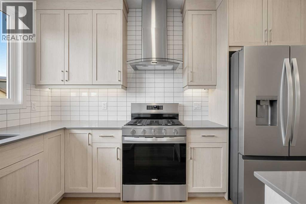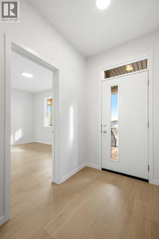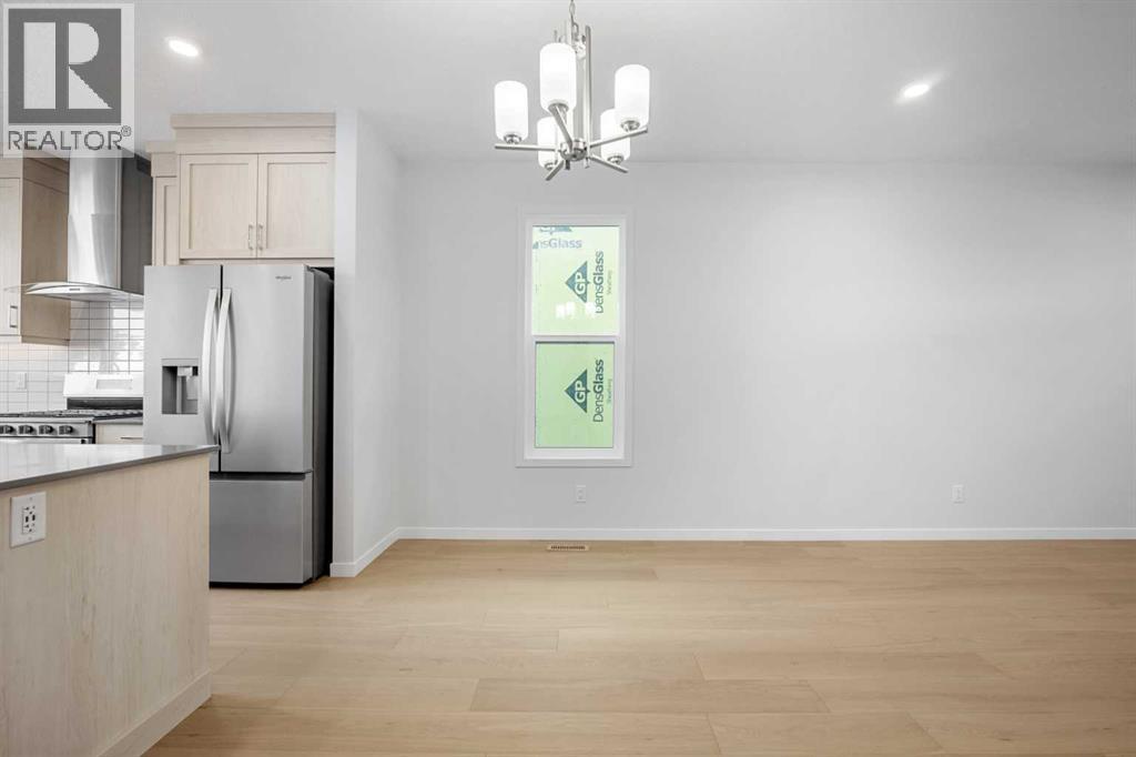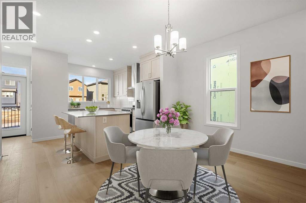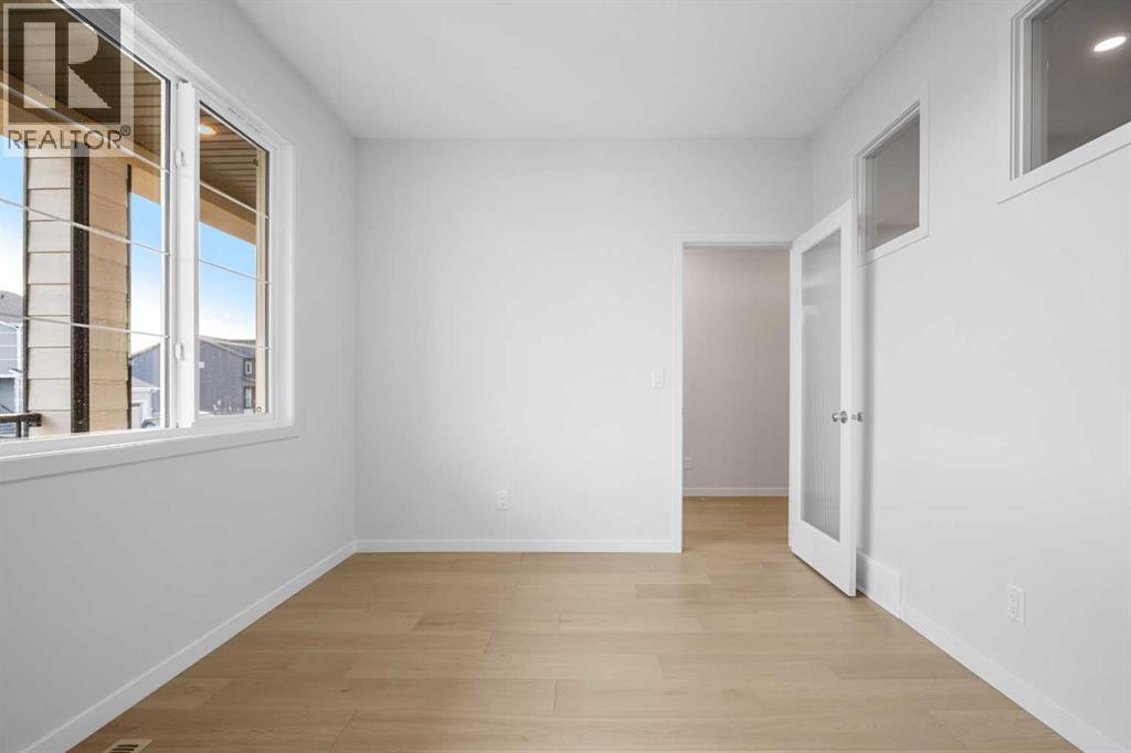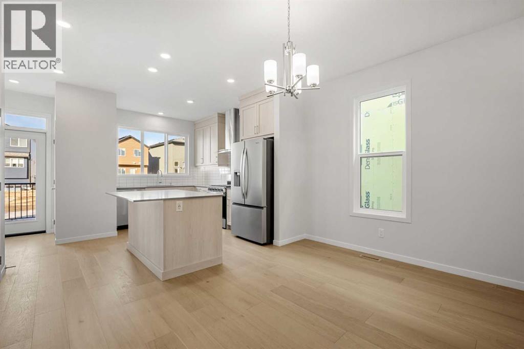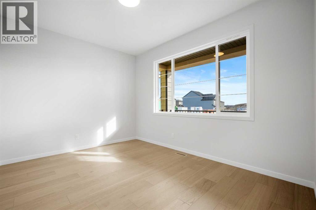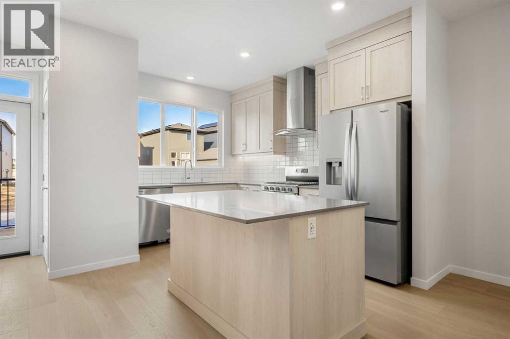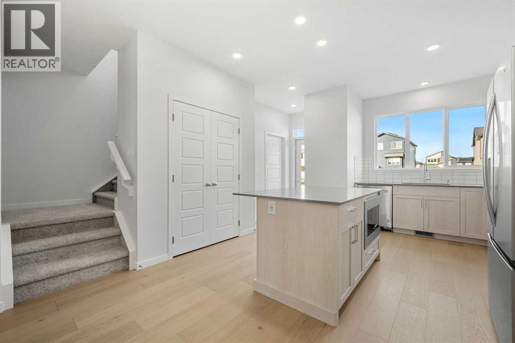 Located in the scenic and fast-growing community of Wolf Willow, 118 Wolf Hollow Terrace SE presents a beautifully designed two-storey home by Trico Homes that combines modern finishes, flexible living spaces, and thoughtful functionality. With approximately 1,789 sq. ft. above grade, four bedrooms, and a smart layout ideal for families or multi-generational living, this brand-new home offers both comfort and versatility in a vibrant southeast Calgary neighbourhood.The main level features a bright open-concept floor plan enhanced by high ceilings and large windows that bring in plenty of natural light. At the heart of the home is a spacious kitchen showcasing quartz countertops, a large central island with breakfast bar seating, gas stove, and ample cabinetry, making it perfect for both everyday cooking and entertaining. The dining area flows seamlessly into the living room, creating a welcoming space for gatherings and family time. A standout feature of the main floor is the bedroom and full three-piece bathroom, ideal for guests, extended family, or a private home office.Upstairs, the thoughtfully designed upper level offers additional living space with a comfortable family room, perfect for relaxing, movie nights, or a children’s play area. The primary bedroom provides a private retreat complete with a walk-in closet and ensuite featuring a double vanity and soaking tub. Two additional bedrooms share a well-appointed four-piece bathroom, while the separate upper-level laundry room adds convenience to everyday routines.The unfinished basement offers excellent future potential and includes a separate exterior entrance, making it ideal for future development possibilities (subject to city approvals). Whether you envision additional living space, a recreation area, or extended family accommodations, the lower level provides a blank canvas to customize.Outside, the home features a rear deck with BBQ gas line and a rear parking pad with space for two vehicles, accessible from the back lane. The exterior is finished with durable vinyl siding and modern curb appeal.Wolf Willow is known for its connection to nature and community lifestyle, offering nearby parks, playgrounds, walking and biking paths, and easy access to schools and shopping. Residents also enjoy proximity to the Bow River pathways and Fish Creek Park, making outdoor recreation part of everyday life.With its flexible floor plan, modern finishes, and outstanding location, 118 Wolf Hollow Terrace SE offers a fantastic opportunity to own a brand-new home in one of Calgary’s most exciting emerging communities. (id:63190)