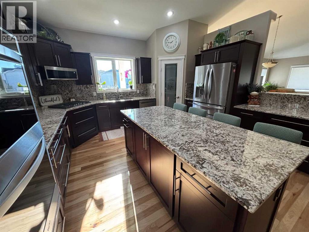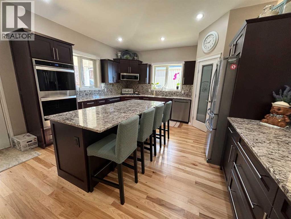 Welcome to this beautiful, one-of-a-kind property located on the south end of town, offering stunning views of the river right from your front veranda. With over 1,800 square feet of thoughtfully designed living space, this home features 5 spacious bedrooms and 3 full bathrooms — perfect for growing families or those who simply want more room to spread out. Step inside to find a bright, open-concept layout with recent renovations throughout, including brand new hickory hardwood flooring, granite countertops, and plenty of updated cabinetry including a new large island and custom built-in buffet. The kitchen is a chef’s dream with all new stainless steel appliances, featuring a gas stove top and double wall ovens. Step out onto the covered back deck or relax on the wraparound front veranda as you take in serene river views. The huge yard is ideal for people wanting to enjoy the outdoors with a large concrete patio and a fenced garden area that would be any gardeners dream with newly constructed multiple raised beds, it is ready for your green thumb. For those needing garage space, the large attached heated 2-car garage offers plenty of room. But that’s not all — there’s also a recently built 32x40 heated shop with 10' and 12' doors, perfect for your RV, boat, workshop, or other toys. This is more than a home — it’s a lifestyle. Don’t miss your chance to own this unique property with space, comfort, and views that are hard to beat. Call for your appointment to view. (id:63190)