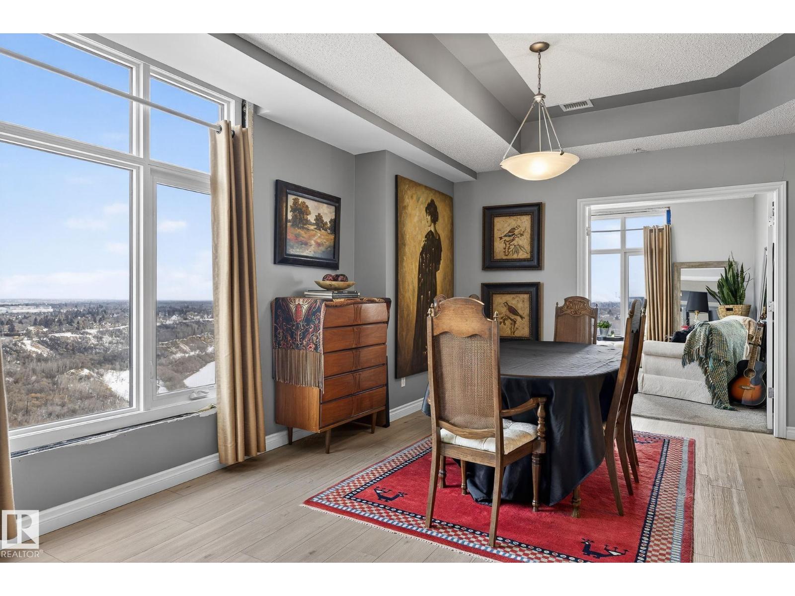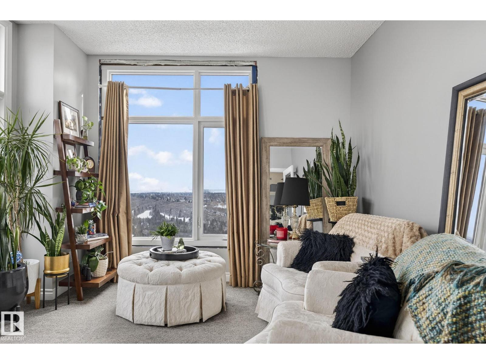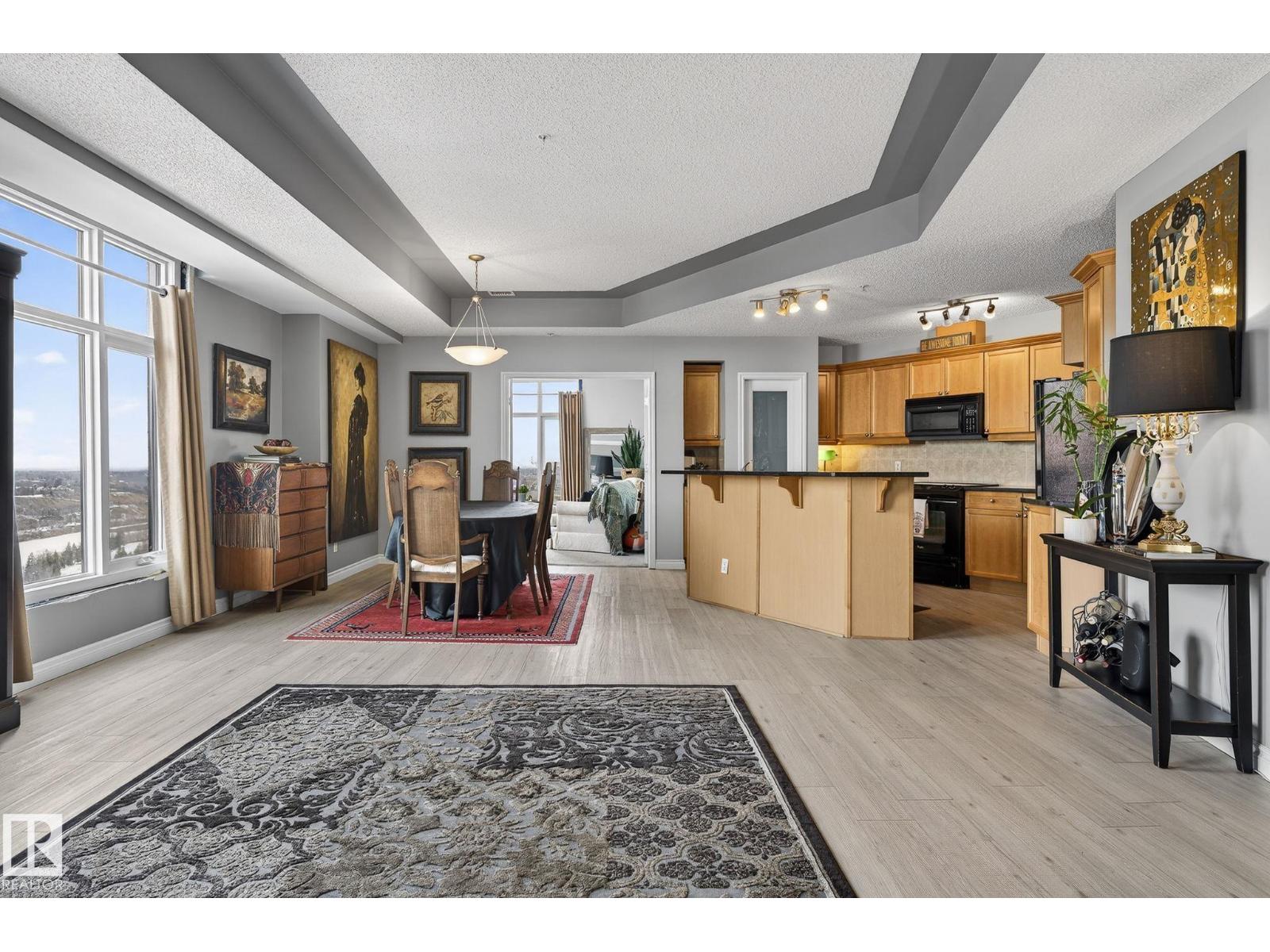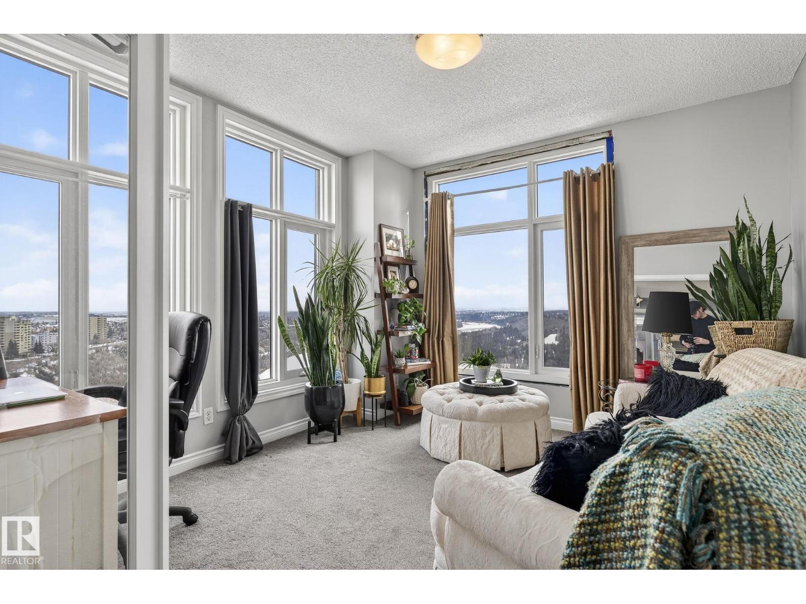 Feels like Home to me! Enjoy the Spectacular, Unobstructed river valley View of the Four seasons Everyday in this Splendid Executive 1530' 17th floor unit. One of the best layout corner unit in this timeless artistic looking gated building. Stunning entrance with gorgeous waterfall & well equipped exercise room. Across from the lush river valley trails and minutes to downtown, the Art District & all your favourite restaurants & shopping venues. Nice open plan with great ambience & captivating view everywhere! The place is sun-drenched with light pouring through the numerous floor to ceiling windows. Spacious living room has cozy gas fireplace & door to the private covered balcony. Beautiful kitchen has ample cabinets, large island & pantry. Bright & cheery dining area that opens to the fantastic office/third bedroom via a double french door. King sized master bedroom has a luxurious ensuite & a large walk-in closet. Second bedroom is across from main bath. Good size laundry/storage room. A real rarefind! (id:63190)