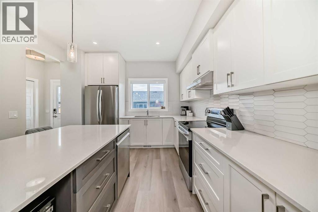 Welcome to luxury living in the highly desirable Cobblestone community of Airdrie, where modern design meets everyday comfort. This beautifully maintained air-conditioned two-storey home offers 4 bedrooms, 3.5 bathrooms, and a fully finished basement, providing exceptional space for families, entertaining, and growing households.Step inside to discover durable luxury vinyl plank flooring flowing throughout the main level, creating a warm and cohesive feel. The inviting living room is centered around a cozy fireplace, perfect for relaxing evenings or gathering with family and friends. The adjacent dining area offers the ideal setting for hosting dinners and special occasions, while a convenient main-floor powder room adds everyday functionality.At the heart of the home is the chef-inspired kitchen, featuring quartz countertops, high-end stainless steel appliances, and a large central island perfect for meal prep, casual dining, and entertaining. Just off the kitchen, step outside to your spacious deck overlooking a fully landscaped yard and double detached garage an ideal setup for summer BBQs and outdoor gatherings.Upstairs, enjoy the convenience of upper-floor laundry, along with two generously sized bedrooms, a full 4-piece bathroom, and a spacious primary retreat. The primary suite features a walk-in closet and a stylish ensuite complete with double sinks and a large walk-in shower, creating a comfortable and private space to unwind.The fully finished basement expands your living space even further with a large family room, an additional bedroom perfect for guests or a home office, and a 3-piece bathroom, making it an ideal lower-level retreat.Located in the vibrant Cobblestone community, residents enjoy close access to parks, schools, shopping, restaurants, and the brand new community pickleball courts, offering a fantastic lifestyle for active families and outdoor enthusiasts.This move-in ready home checks every box style, space, and an unbeatable locati on. Don’t miss your opportunity to call this exceptional property home. (id:63190)