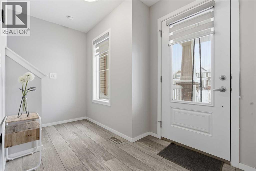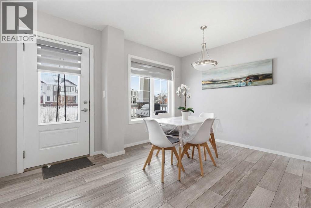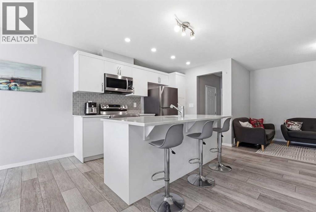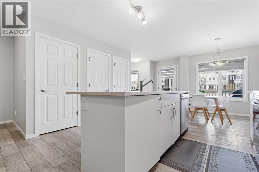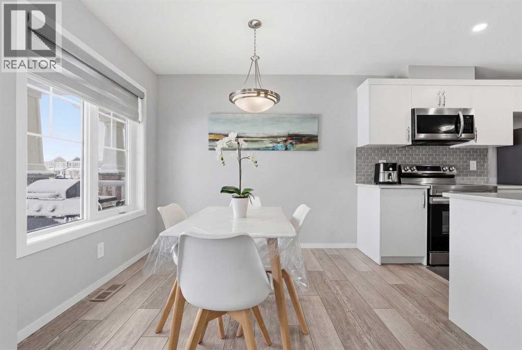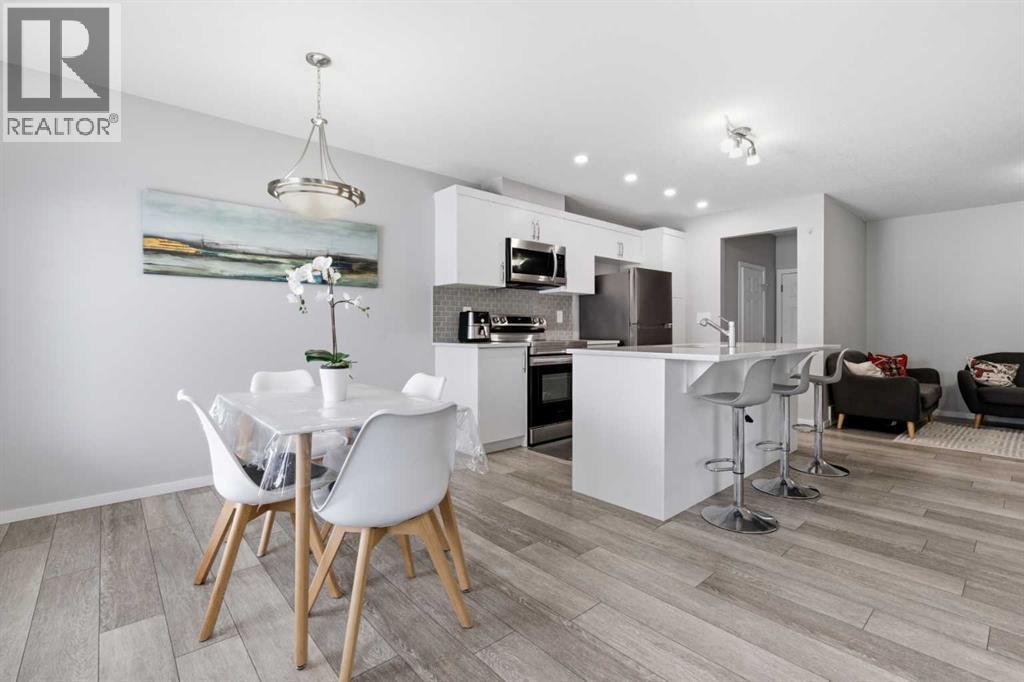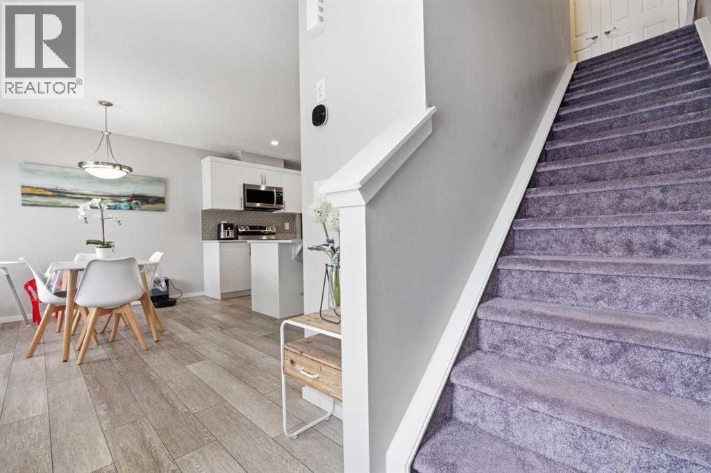 Welcome to this beautiful NO CONDO FEE, FULLY UPGRADED, DOUBLE GARAGE ATTACHED Townhouse, first time on the market and never been lived in. The charming curb appeal will capture your heart at first glance. As soon as you walk into the house, you are greeted with very bright and open concept. There is a well laid out living room adjacent with the dining room and a stunning kitchen which has high end stainless steel appliances, granite counter tops. The main floor also has a 2pc bath, a mud room and DOUBLE GARAGE ATTACHED for your cold snowy Alberta winters. Upper floor has primary bedroom with walk-in closet & ensuite 4pc bath, two very decent size bedroom with a 4pc bath, a small retiring/den area which connects to a massive balcony for all your big family BBQ summer gatherings, the balcony faces south, you're going to have plenty of sun throughout the year. Basement is unfinished and waiting for your ideas to get finished, roughed in plumbing for the washroom is done already. The washer/dryer is placed UPPER FLOOR Some of the upgrades are and not limited to, Granite counter tops in the kitchen and in the bathrooms, knock down ceilings, LVP Flooring, Stainless Steel Appliances including GAS cooking range, better quality carpets, wooden spindles on the stairs, upgraded washer and dryer. The LOCATION of this Townhouse is absolutely fantastic, it's next to the kids park, you can see kids playing from a bedroom window, close to schools, bus stops, only few minutes away from a shopping complex and various restaurants. (id:63190)