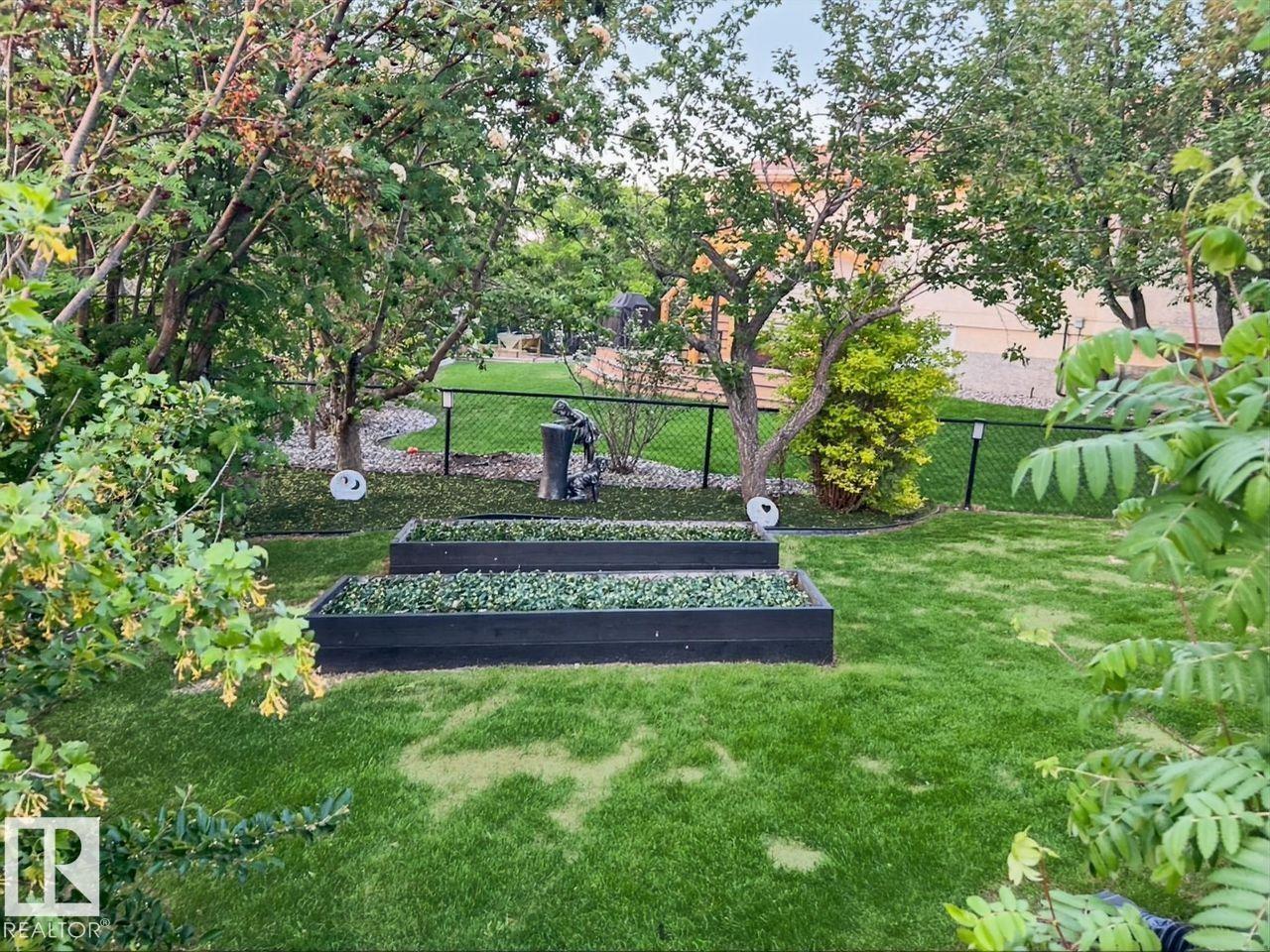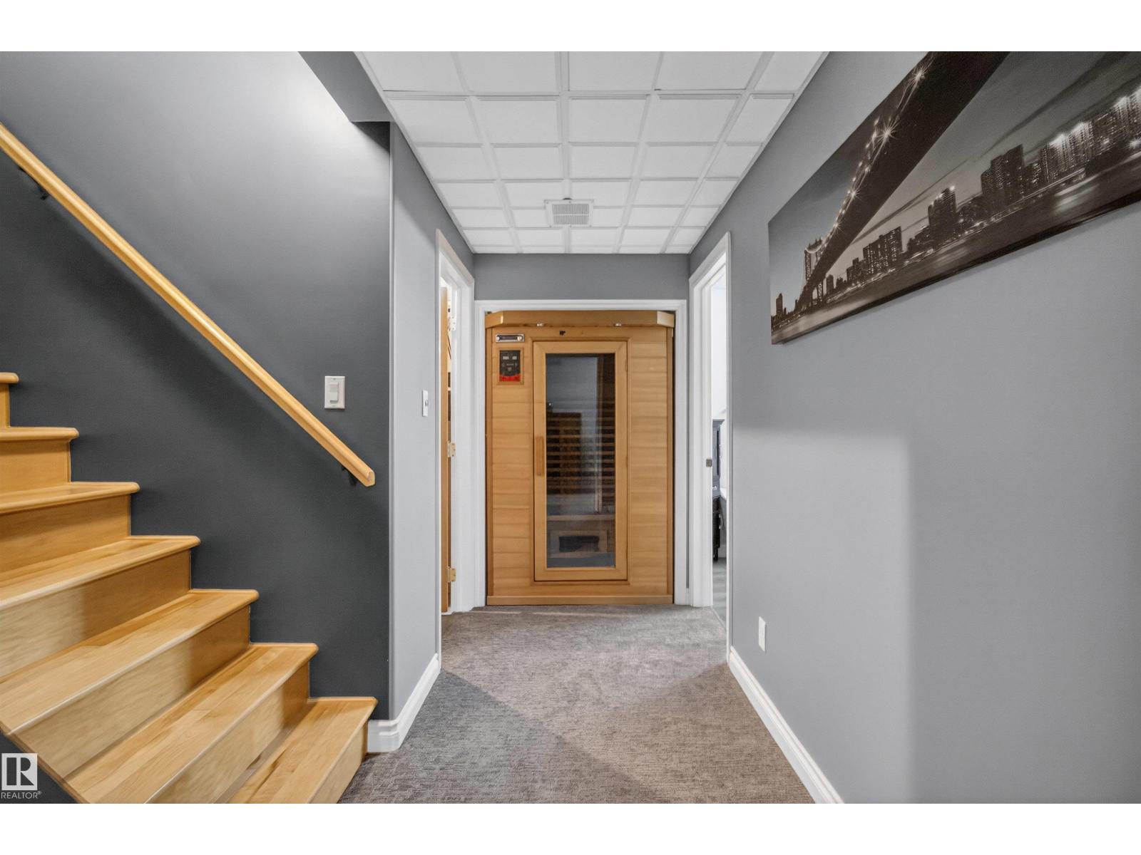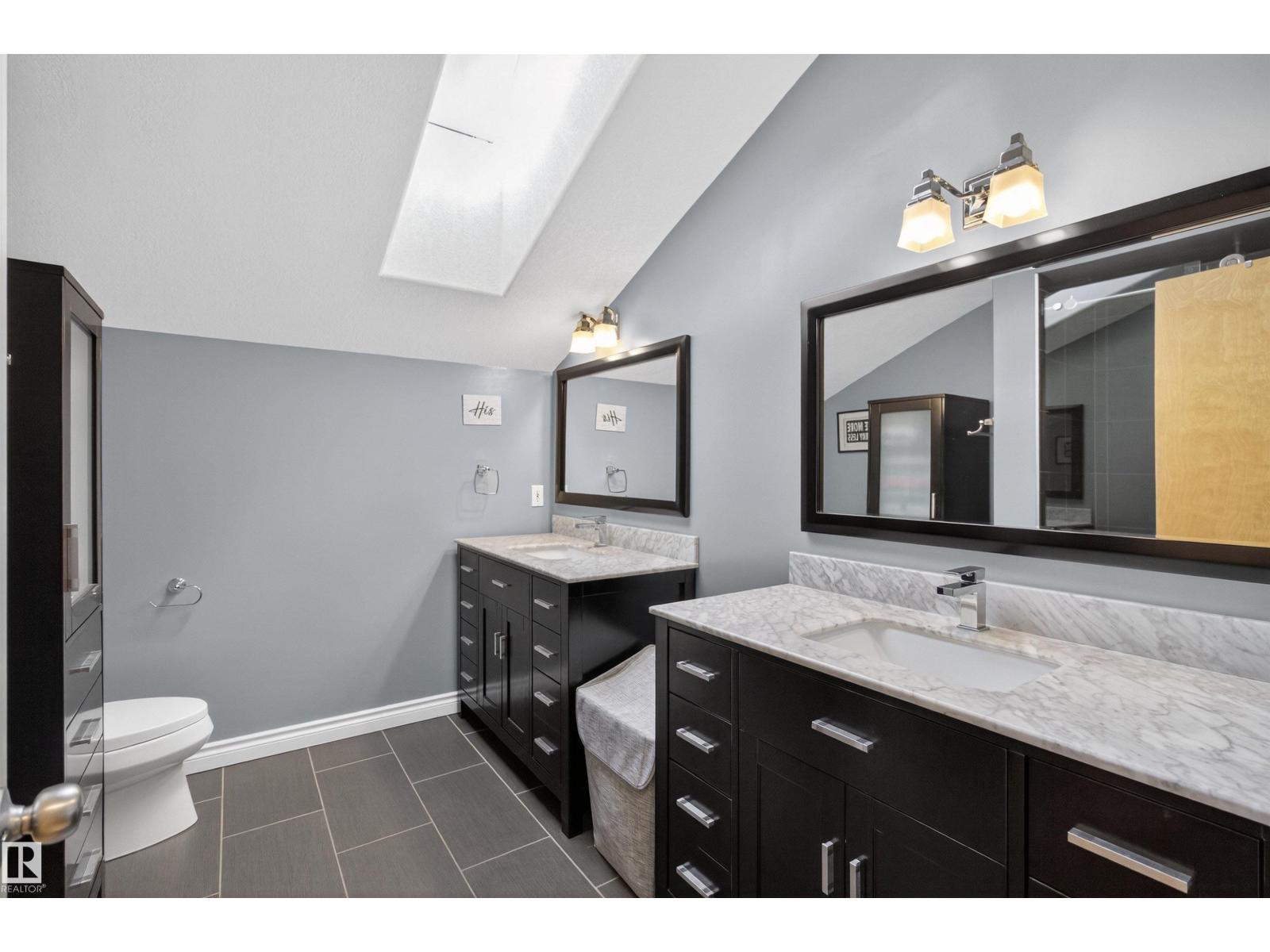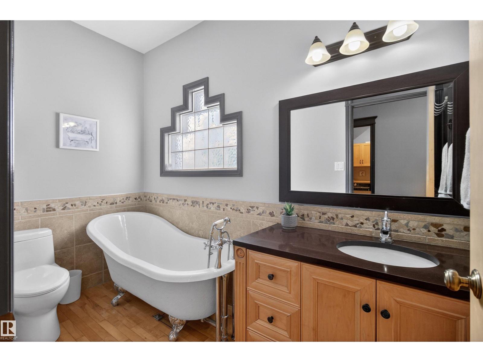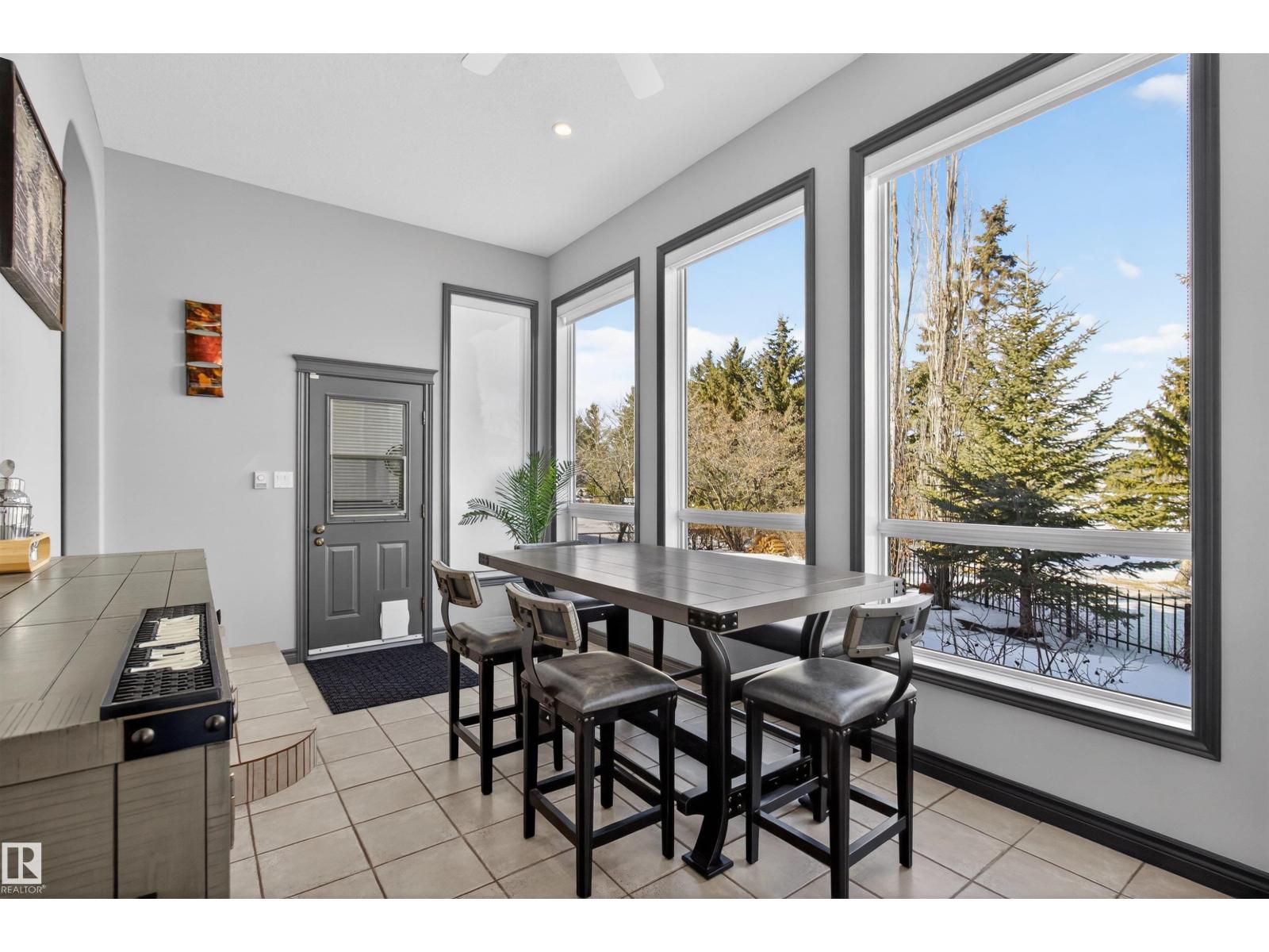 Stunning & unique executive 1.5 story on a huge pie lot backing west on the golf course! Enter the spacious foyer into an open great room boasting tall vaulted ceilings, hardwood & ceramic floors, abundant stone tile features, & stately fp surrounded by custom cabinets. Entertainer's dream with premium maple kitchen with granite counters, built-in appls, coffee bar, corner pantry & dark contrasting island. Private sunroom with heated tile floor & generous windows with amazing view of the 12th tee! Main floor laundry & full bath with tasteful claw-foot tub. Opulent owner's suite on the upper floor boasts 2nd fp, vaults, skylight & luxurious enuite with his & her vanities plus stone & tile dbl shower. F-fin bsmt has 4th bd, full bath, sauna, & huge FR with wet bar. Hi-eff furnace & cent AC. Recently prof painted, new carpet, & custom blinds. Exposed aggregate on driveway & covered patio. Serene & picturesque yard with underground sprinkler system, firepit & storage shed. Oversized garage with radiant heat. (id:63190)