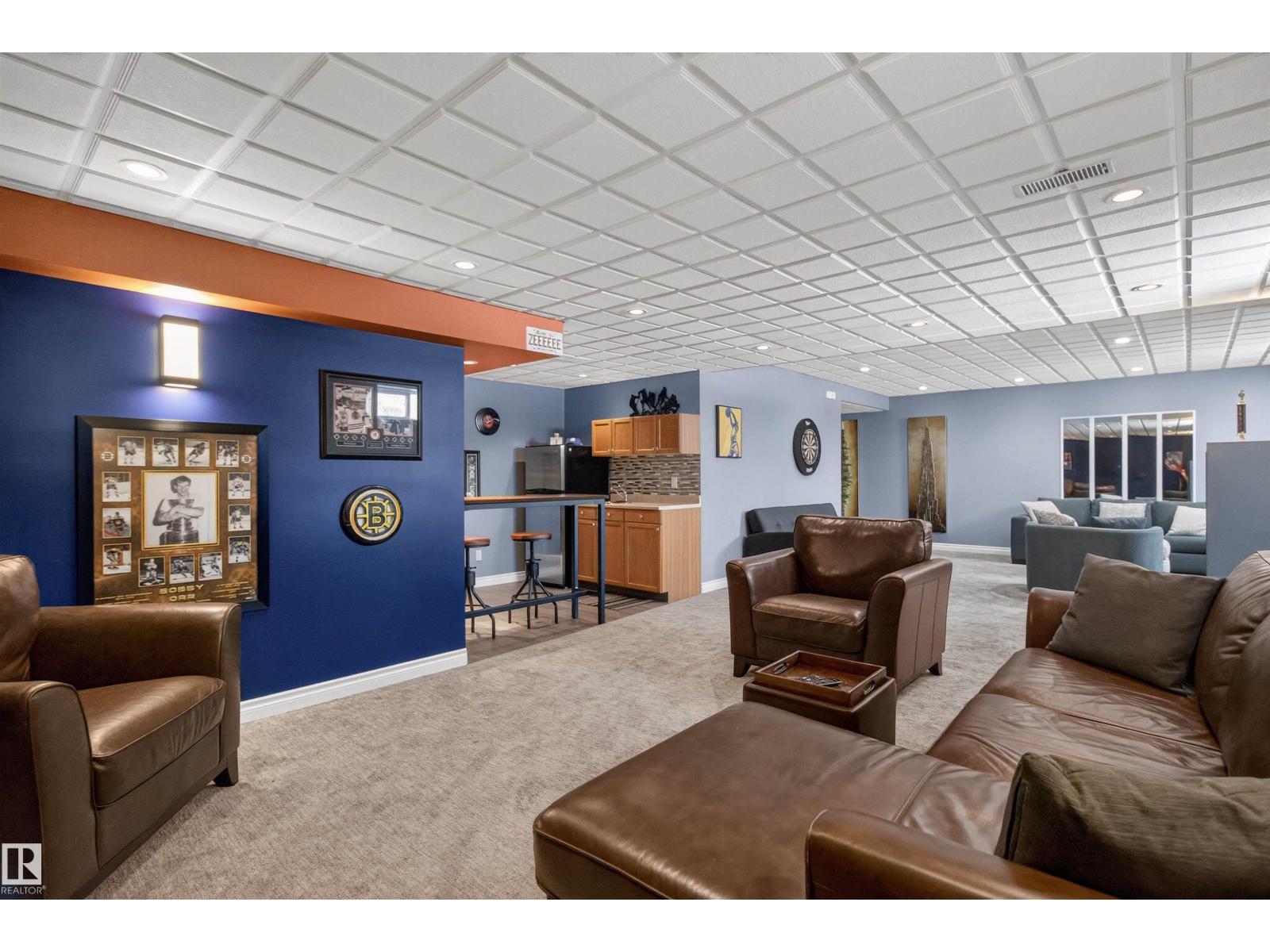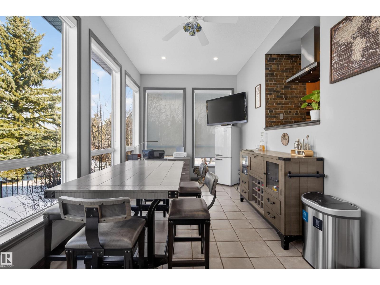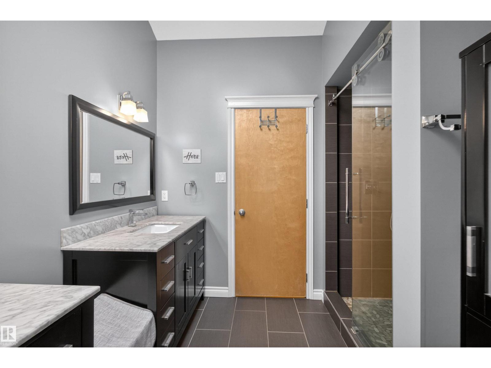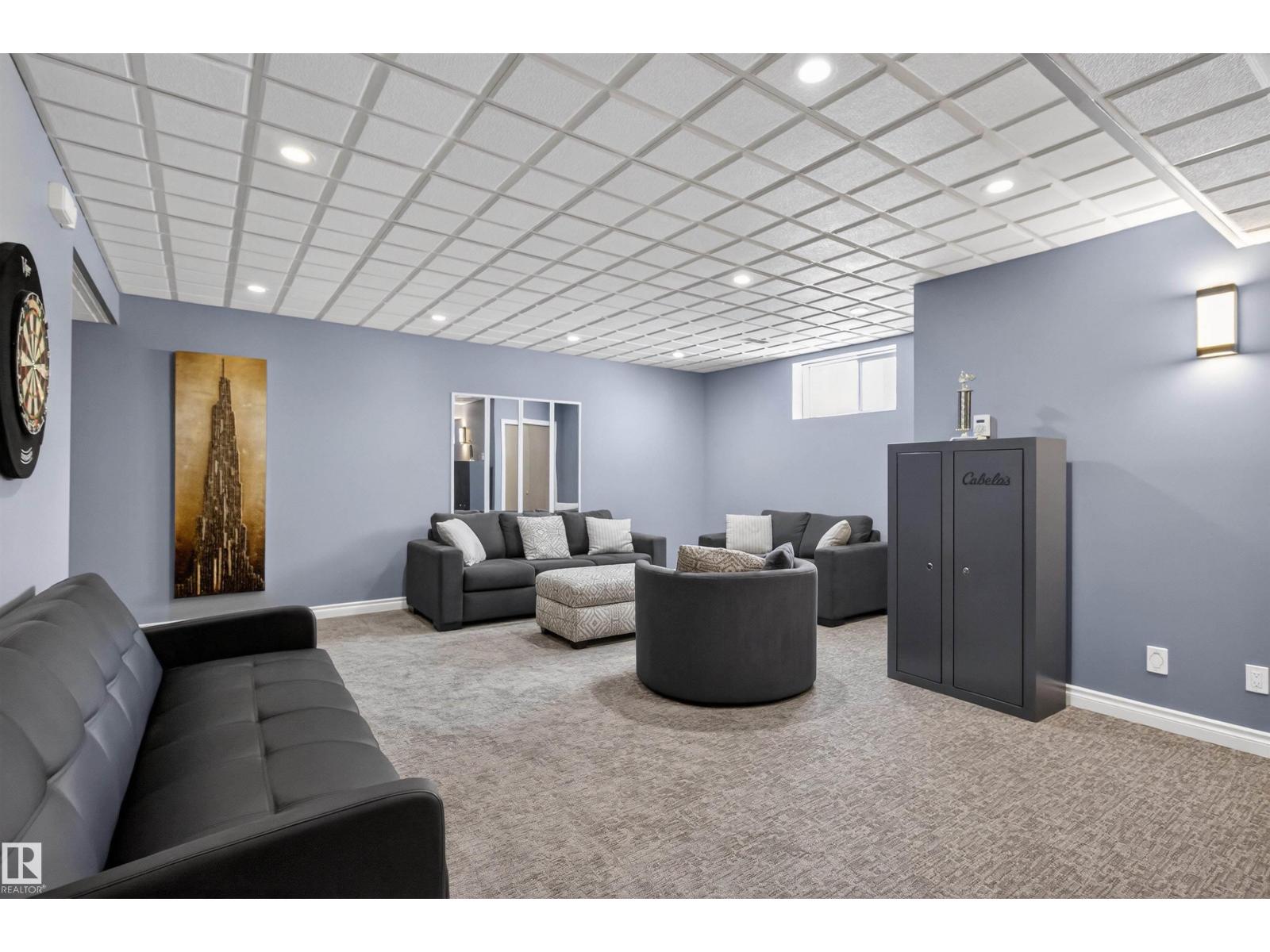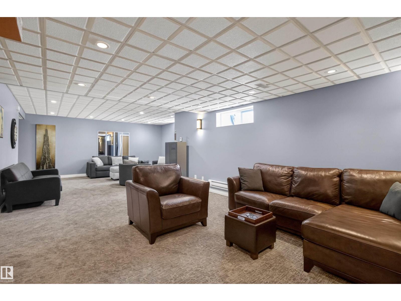 Stunning & unique executive 1.5 story on a huge pie lot backing west on the golf course! Enter the spacious foyer into an open great room boasting tall vaulted ceilings, hardwood & ceramic floors, abundant stone tile features, & stately fp surrounded by custom cabinets. Entertainer's dream with premium maple kitchen with granite counters, built-in appls, coffee bar, corner pantry & dark contrasting island. Private sunroom with heated tile floor & generous windows with amazing view of the 12th tee! Main floor laundry & full bath with tasteful claw-foot tub. Opulent owner's suite on the upper floor boasts 2nd fp, vaults, skylight & luxurious enuite with his & her vanities plus stone & tile dbl shower. F-fin bsmt has 4th bd, full bath, sauna, & huge FR with wet bar. Hi-eff furnace & cent AC. Recently prof painted, new carpet, & custom blinds. Exposed aggregate on driveway & covered patio. Serene & picturesque yard with underground sprinkler system, firepit & storage shed. Oversized garage with radiant heat. (id:63190)