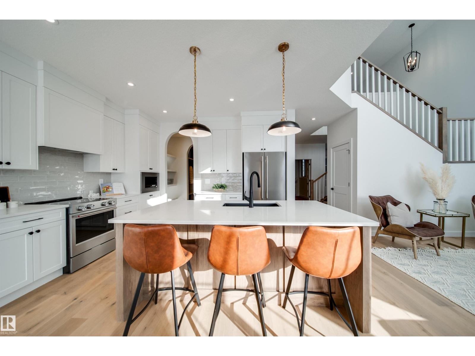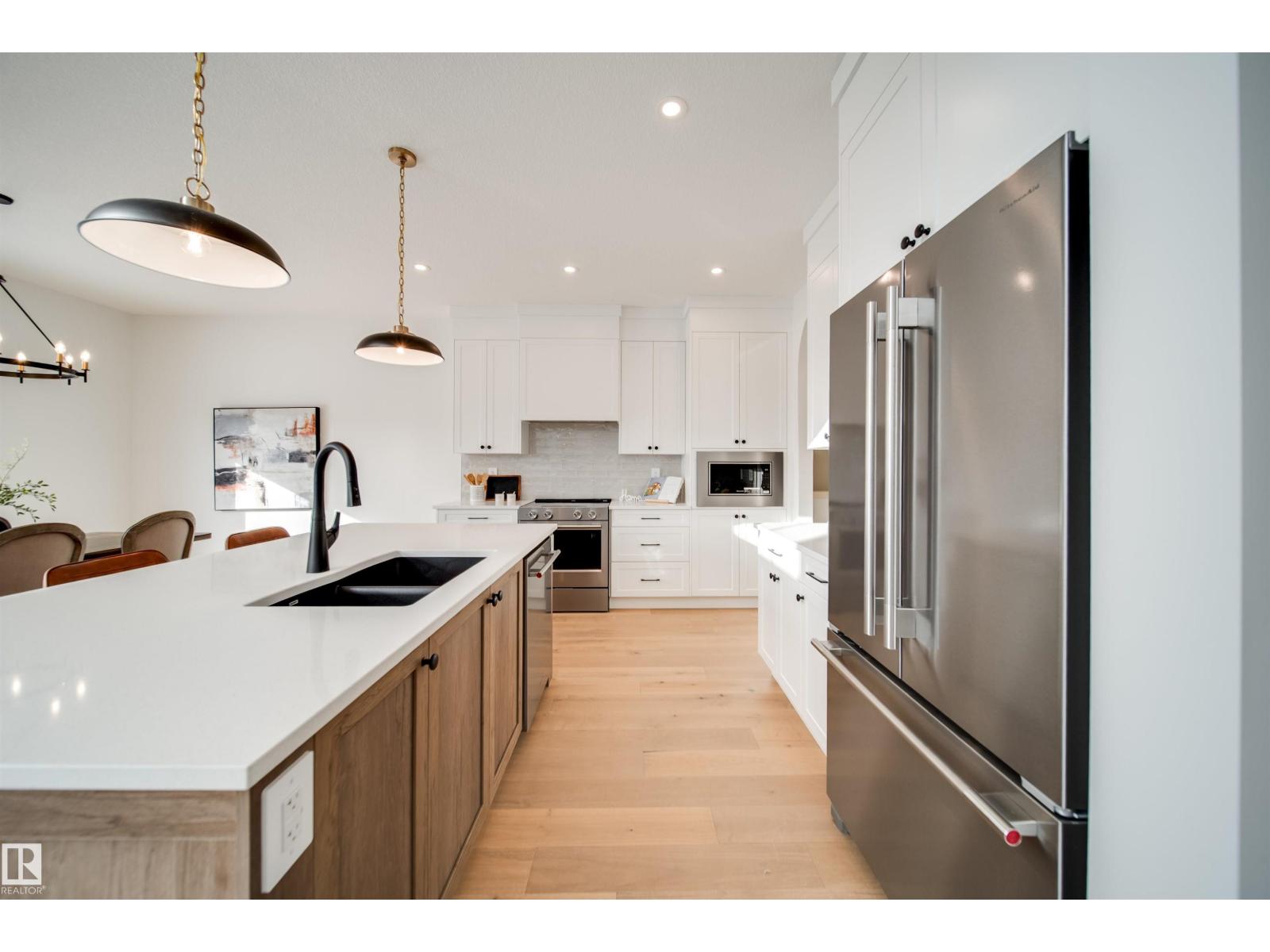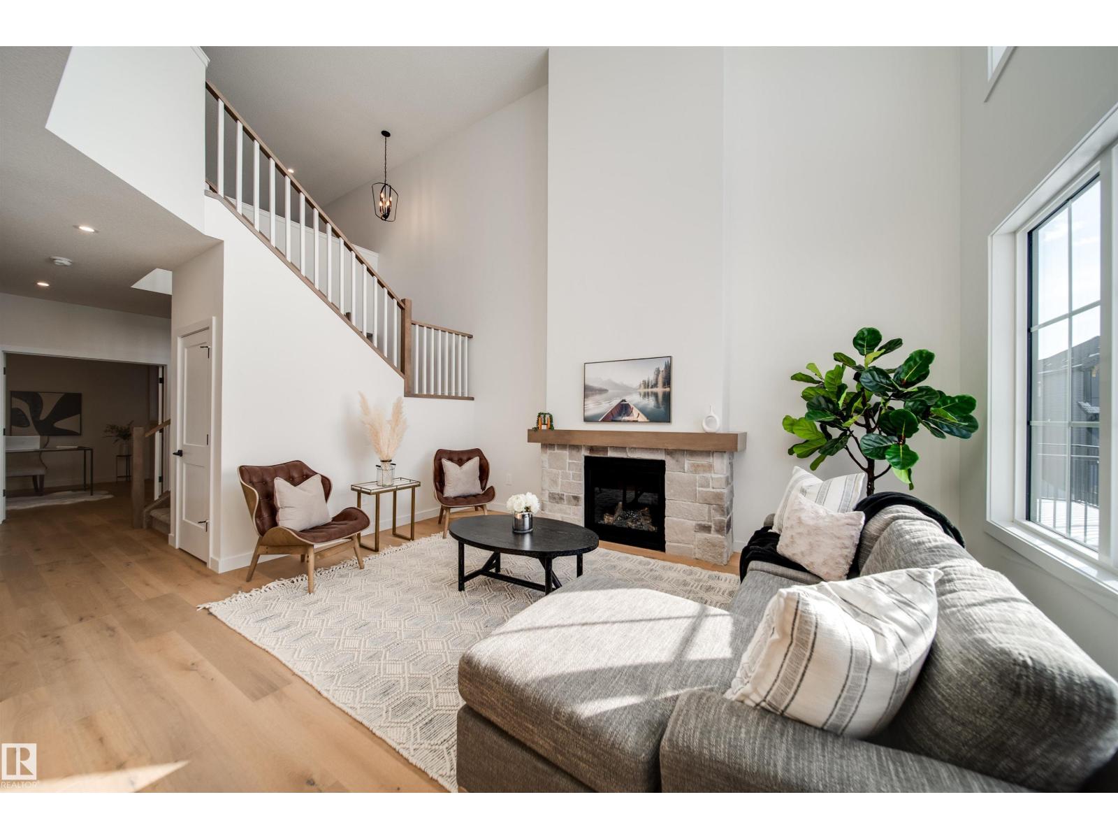 Welcome to the OBSIDIAN by award winning builder Justin Gray Homes! This WEST backing WALKOUT home in the exclusive, FRENCH COUNTRY color palette, professionally curated by CM Interior Designs is sure to impress! With just under 2500sqft of living space, the Obsidian is the perfect home for those with growing families. The main floor presents a sprawling open concept living space, featuring custom HARDWOOD floors, GAS FIREPLACE, private DEN w/frosted doors, chef inspired kitchen w/arched walkthrough pantry and a 2pc powder room w/ wainscotting. The large, triple pane windows provide a ton of NATURAL LIGHT in almost every room of this home. Upstairs, you'll find plush carpet throughout your large BONUS room and all 3 bedrooms. The breathtaking primary suite w/tray ceilings offers a sleek 5piece ensuite alongside a spacious walk-in closet that flows directly into the spacious laundry room for your convenience. Situated on a 28' pocket, POND BACKING lot in St. Albert's 2025 best new community. Welcome home! (id:63190)